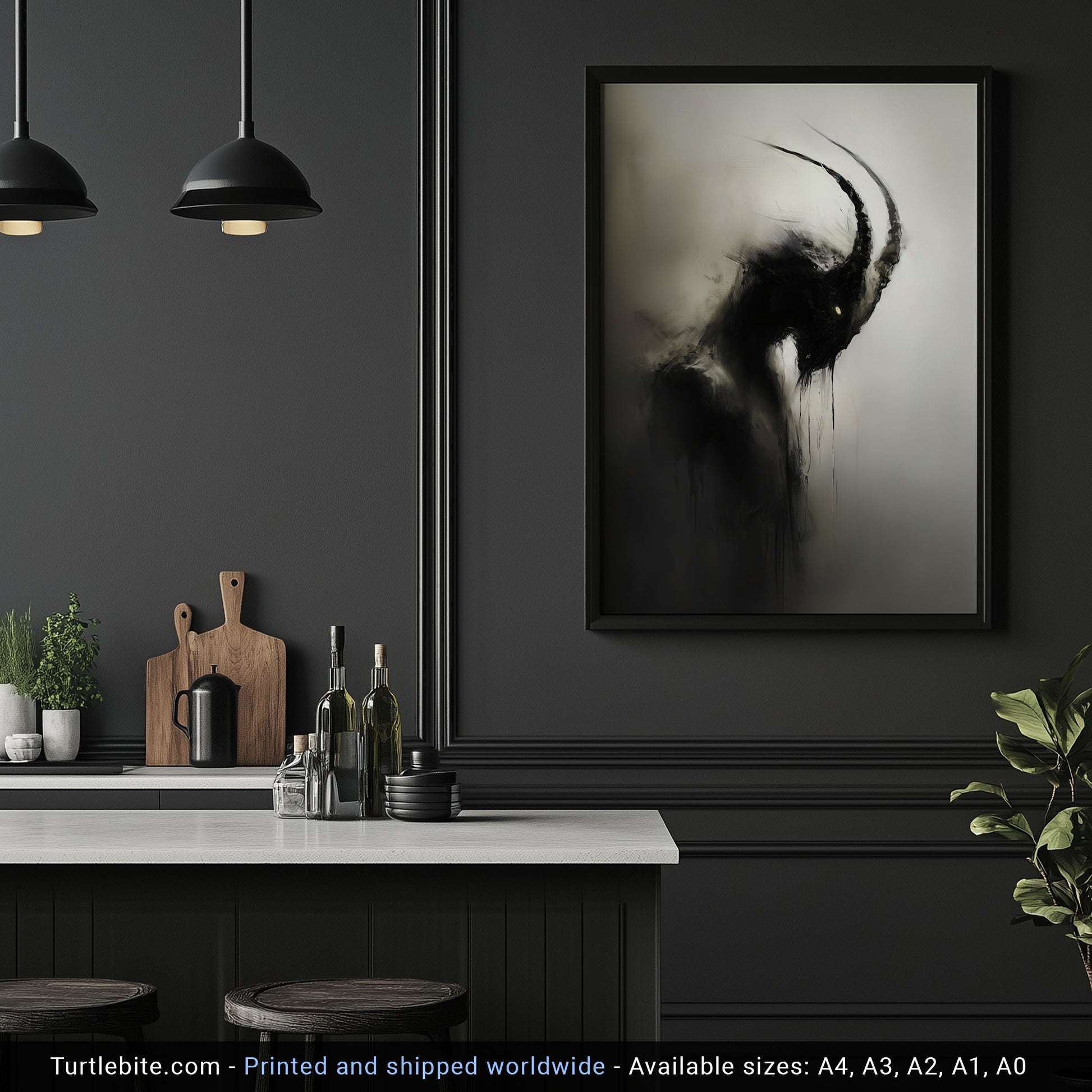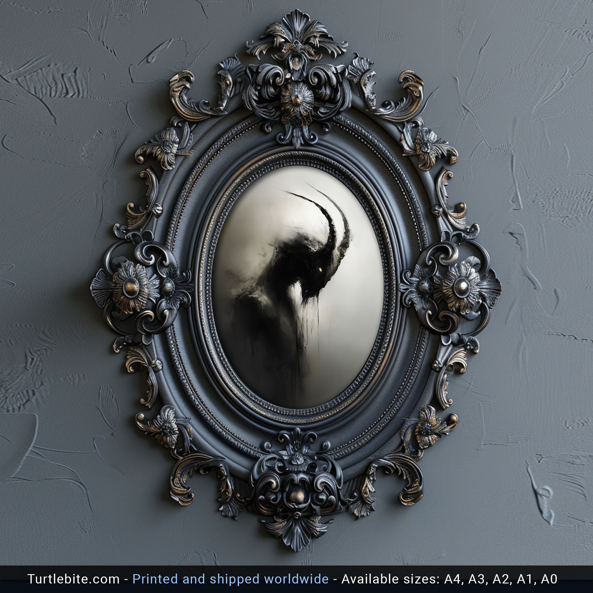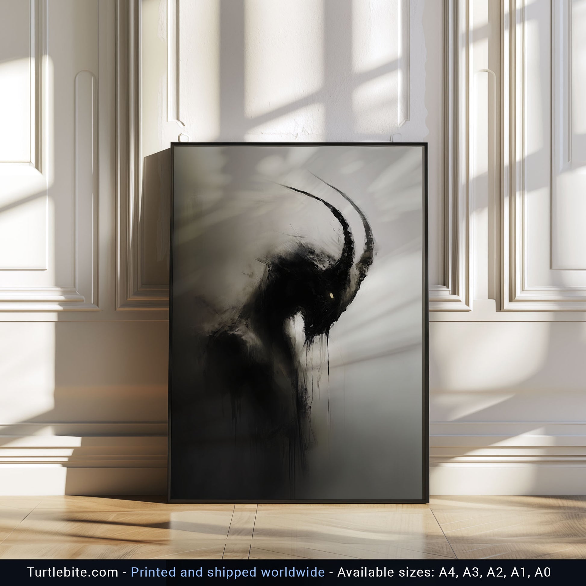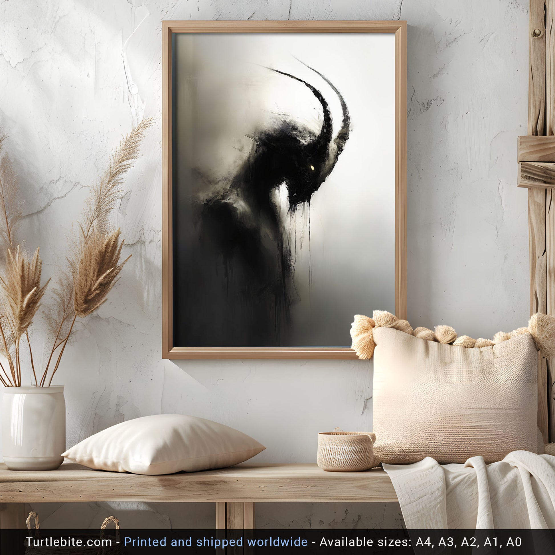 Enhance your space with this haunting dark capricorn creature painting poster. This creepy mysterious wall art is perfect for lovers of all things spooky and gothic. Add a touch of whimsigoth charm to your decor with this unique eerie print. Elevate your walls with this gothic wall art painting today!