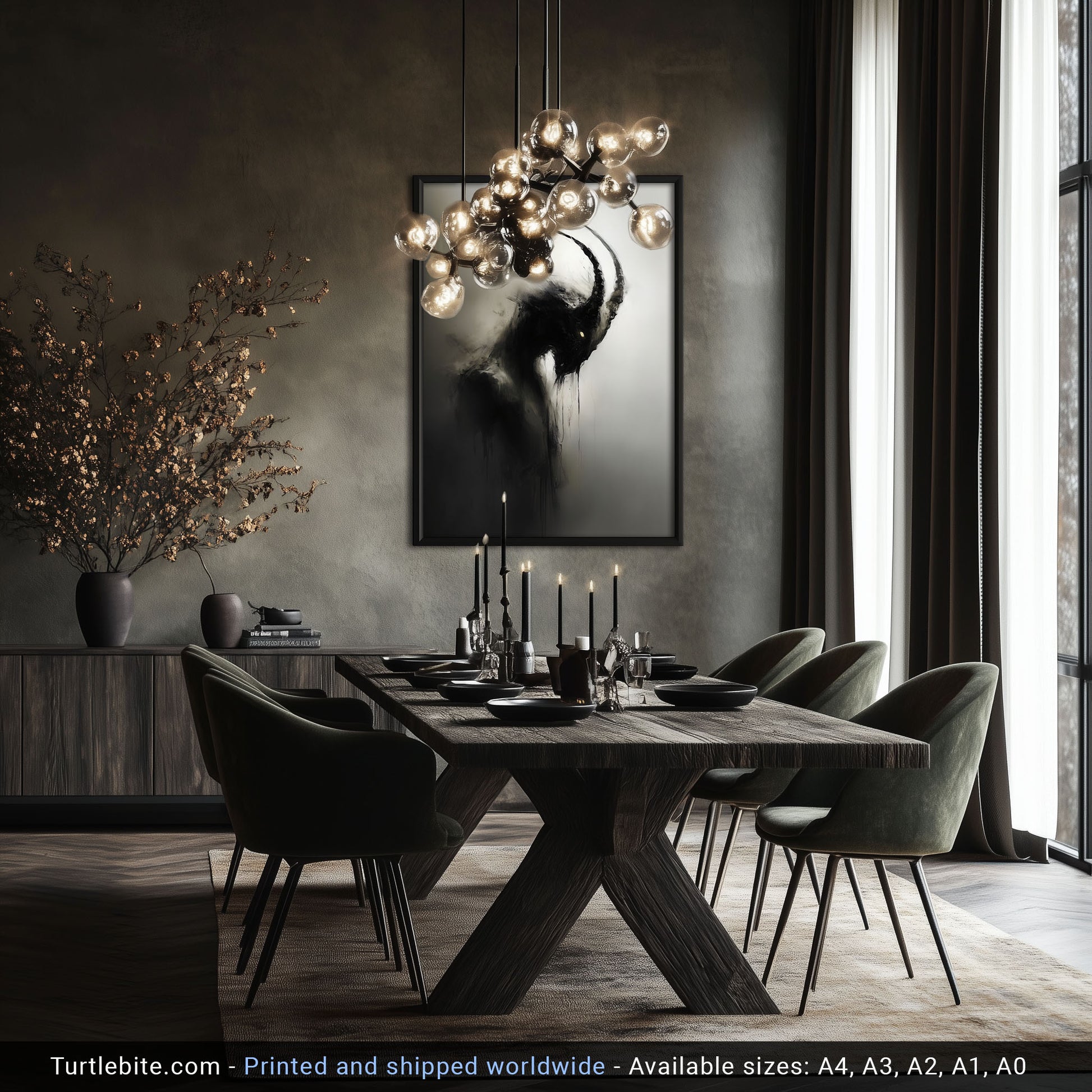 Please note: posters are supplied unframed, the pictures on this website show examples of possible framing. Prints may exhibit slight variation from what you see on your screen due to differences in calibration, brightness, and ambient lighting. Mockups serve only as illustrations and may not perfectly represent the final artwork.