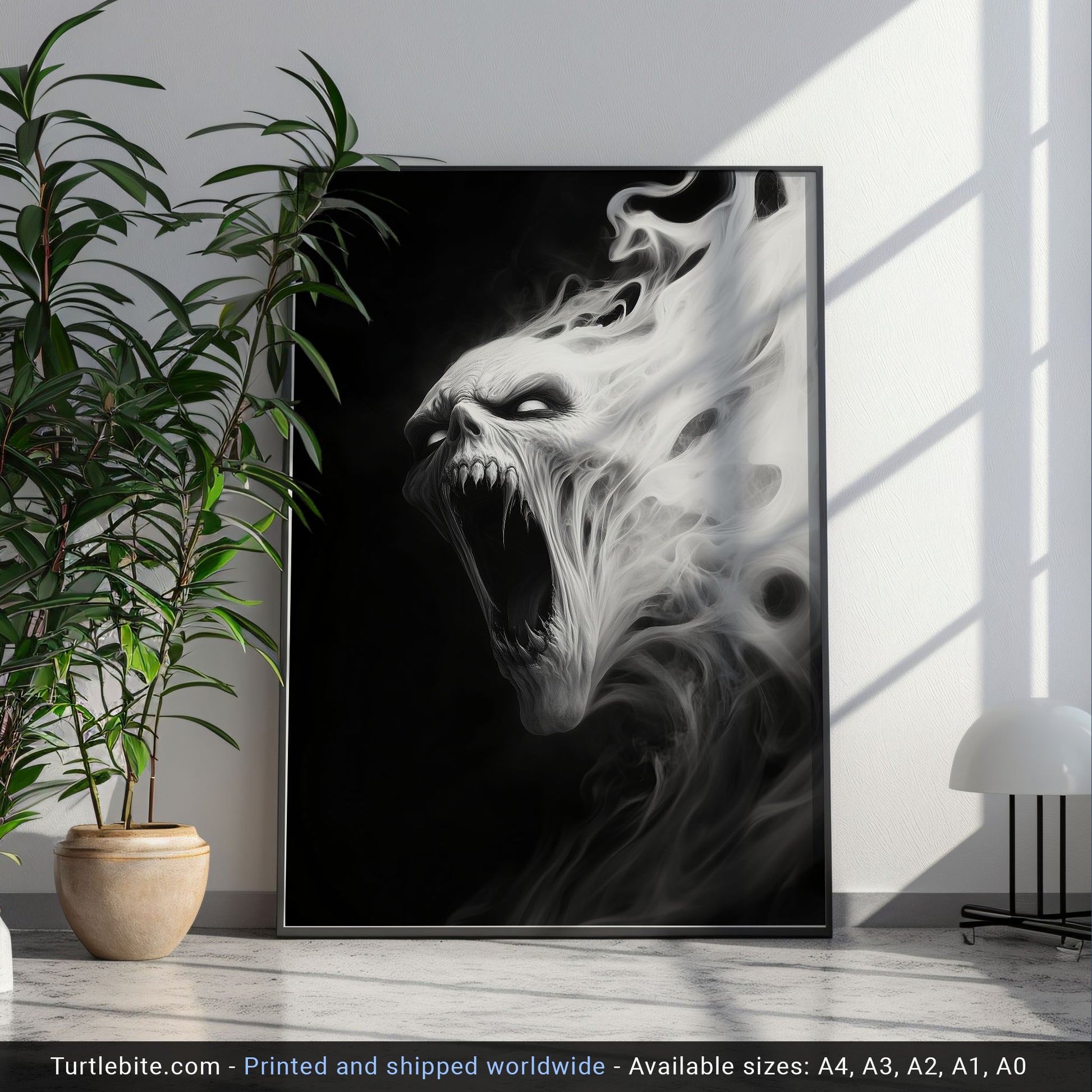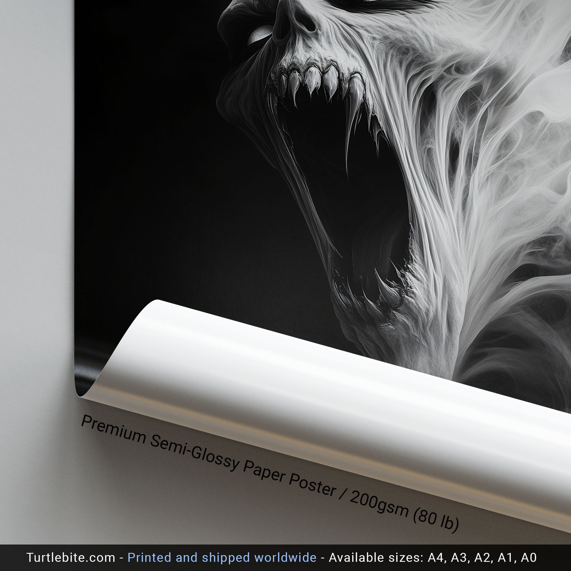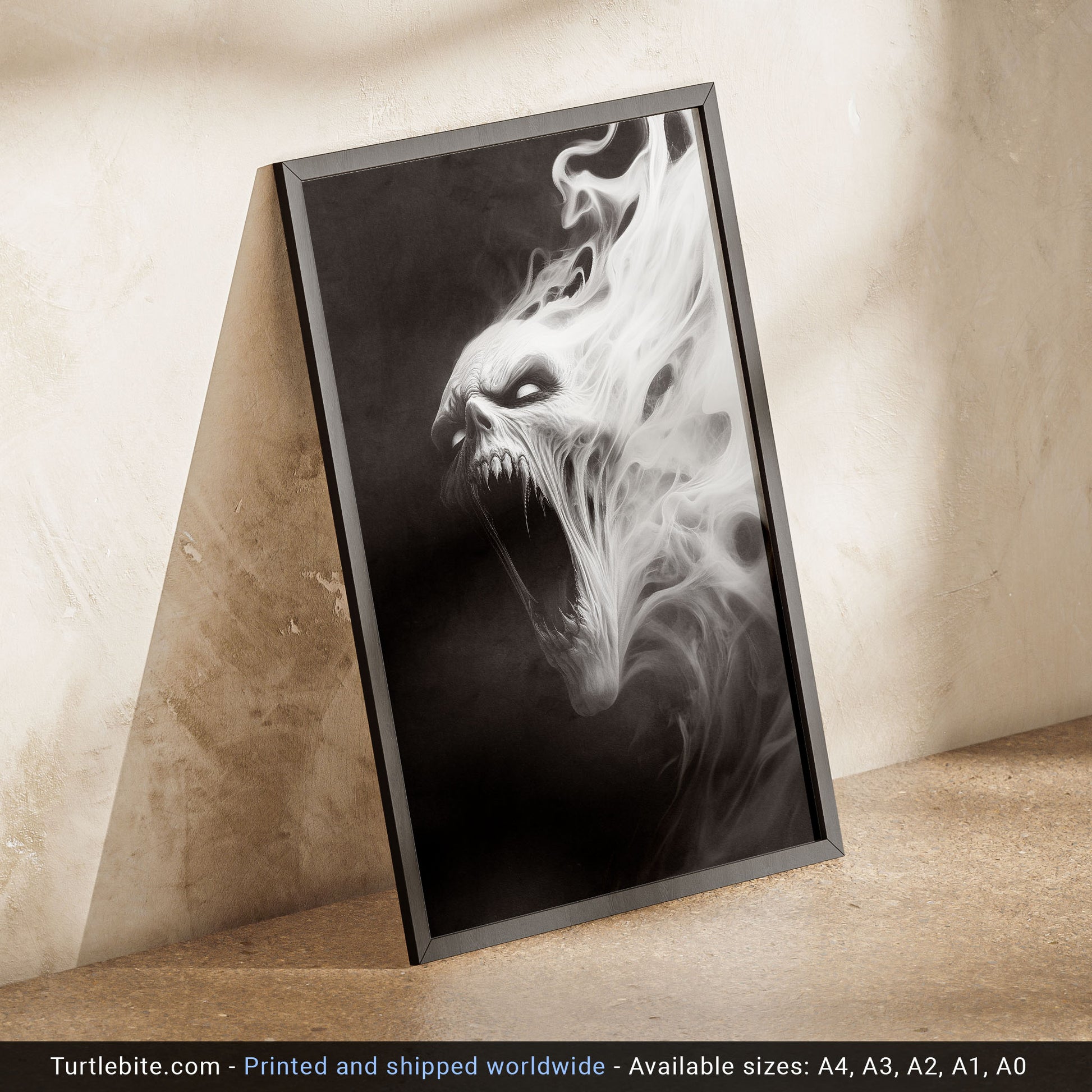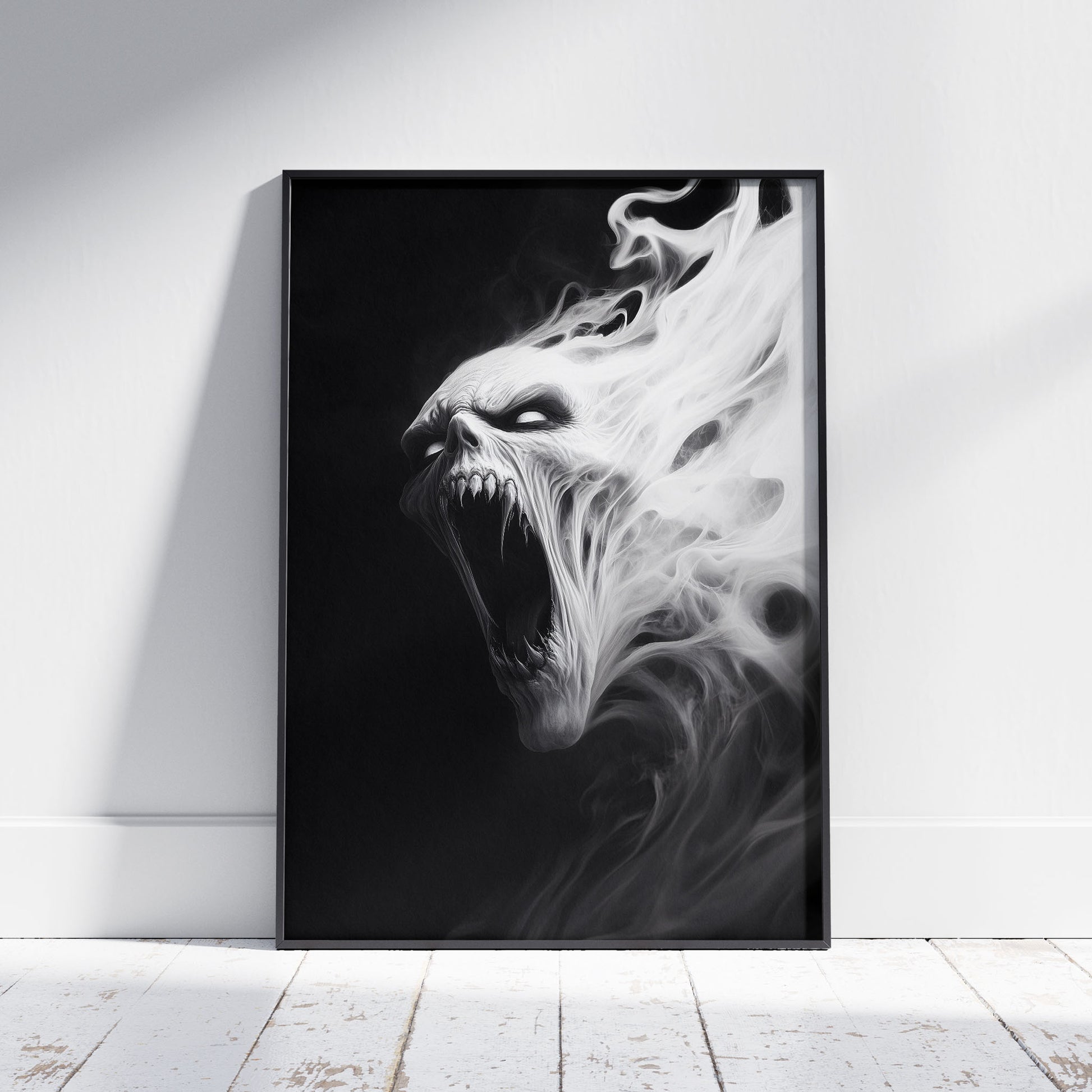 Black and White Poster of a Ghost, Scary Pictures, Horror Artwork, Mysterious Creepy Creature, Gothic Picture