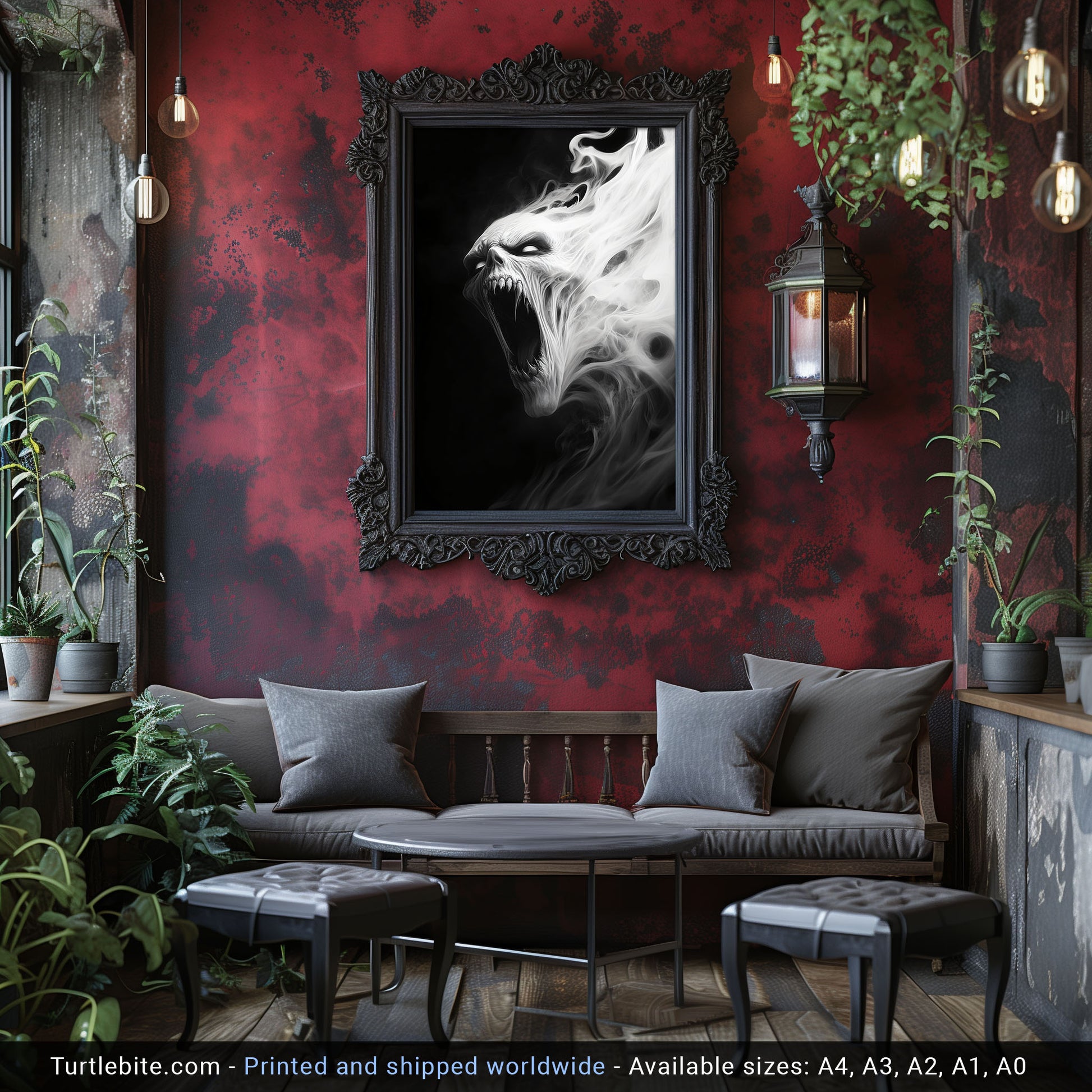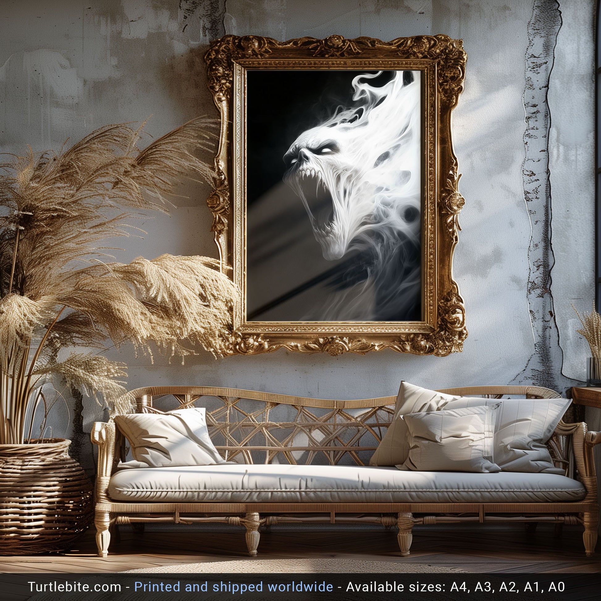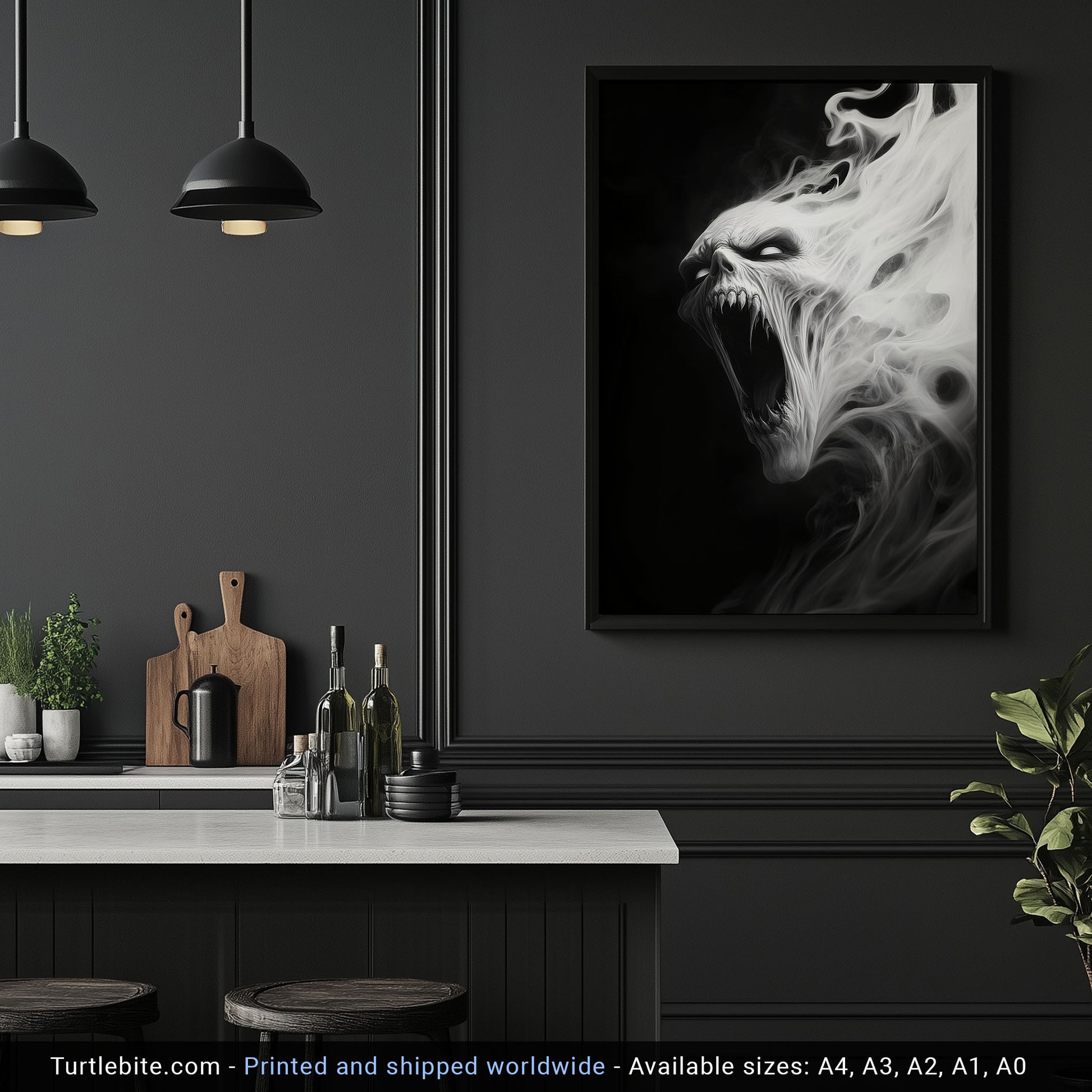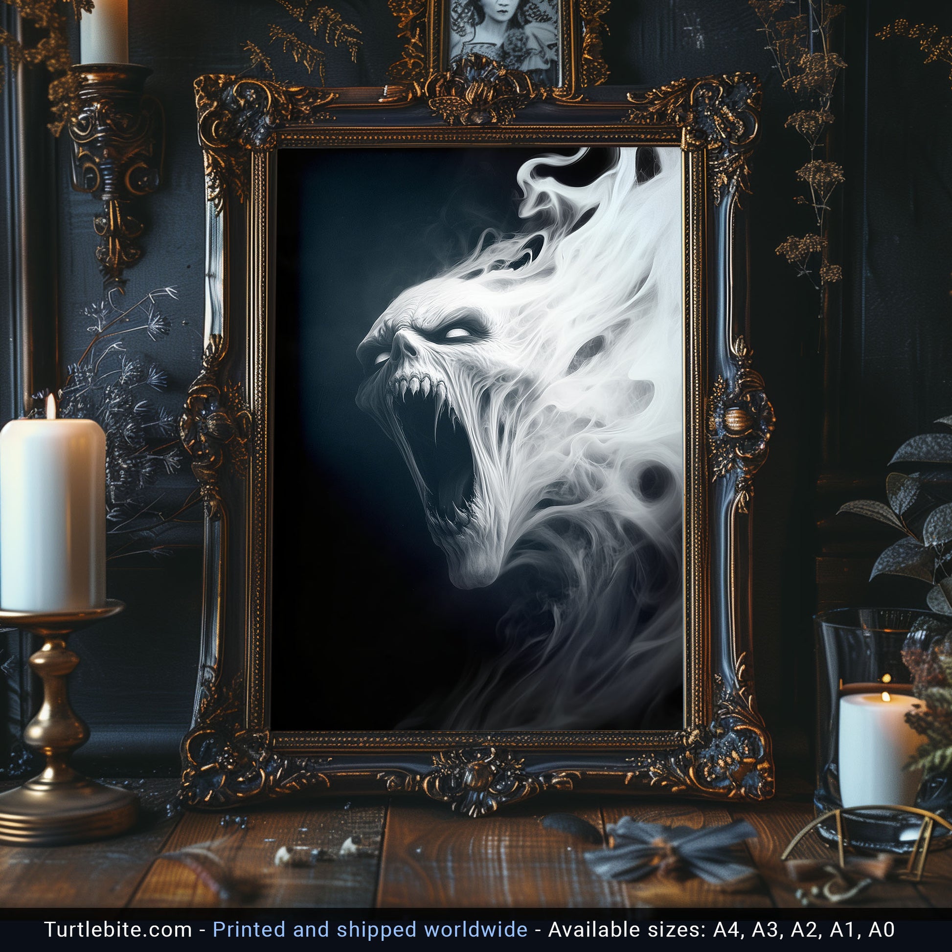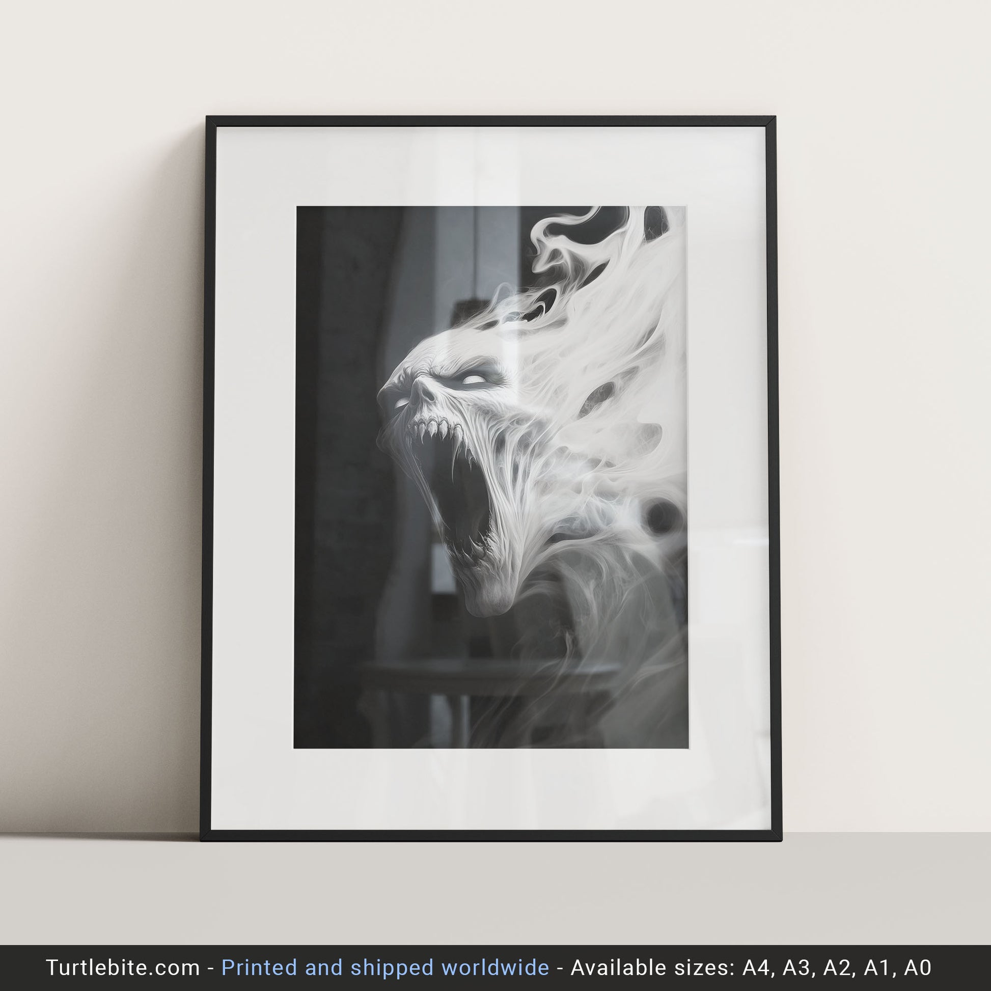 Black and White Poster of a Ghost, Scary Pictures, Horror Artwork, Mysterious Creepy Creature, Gothic Picture