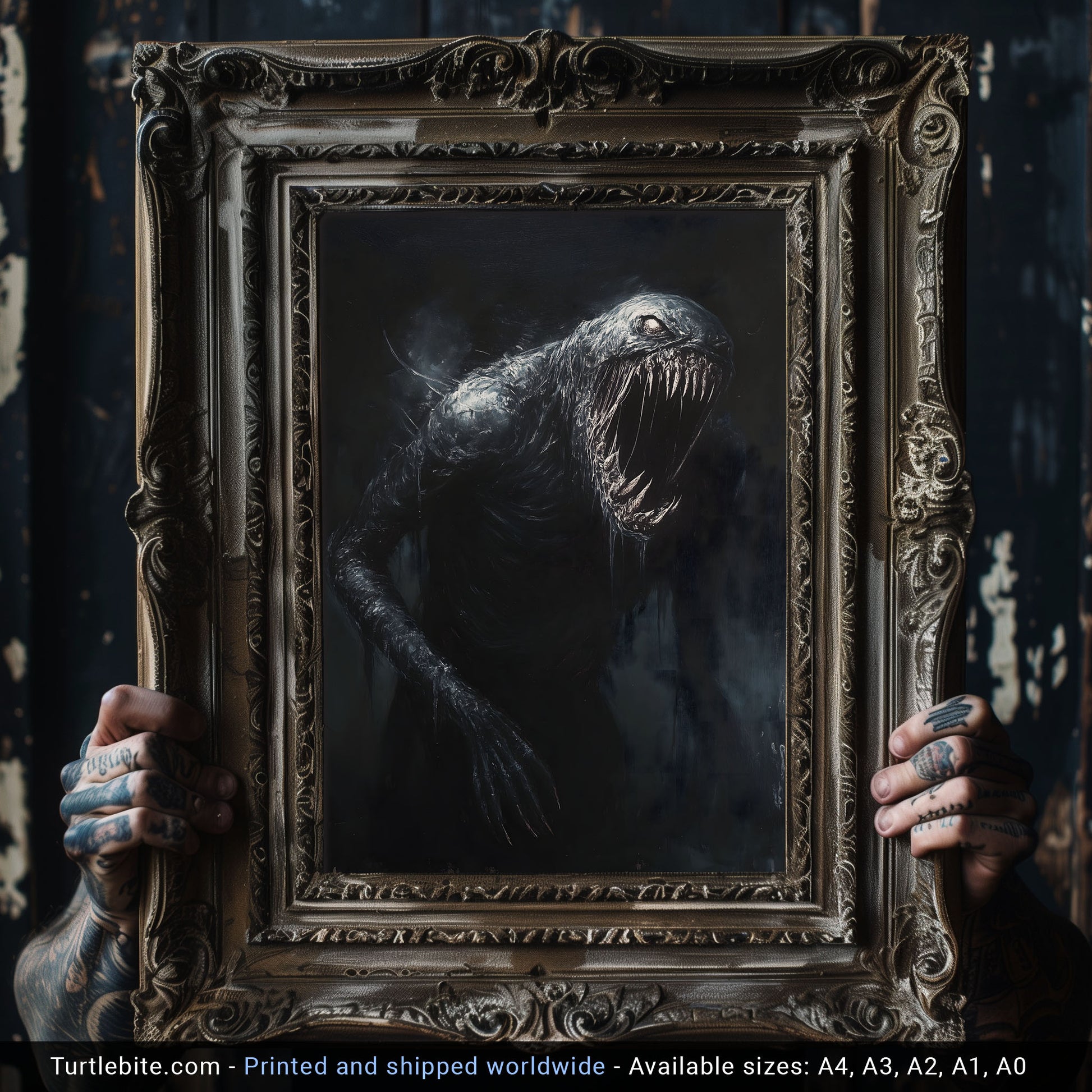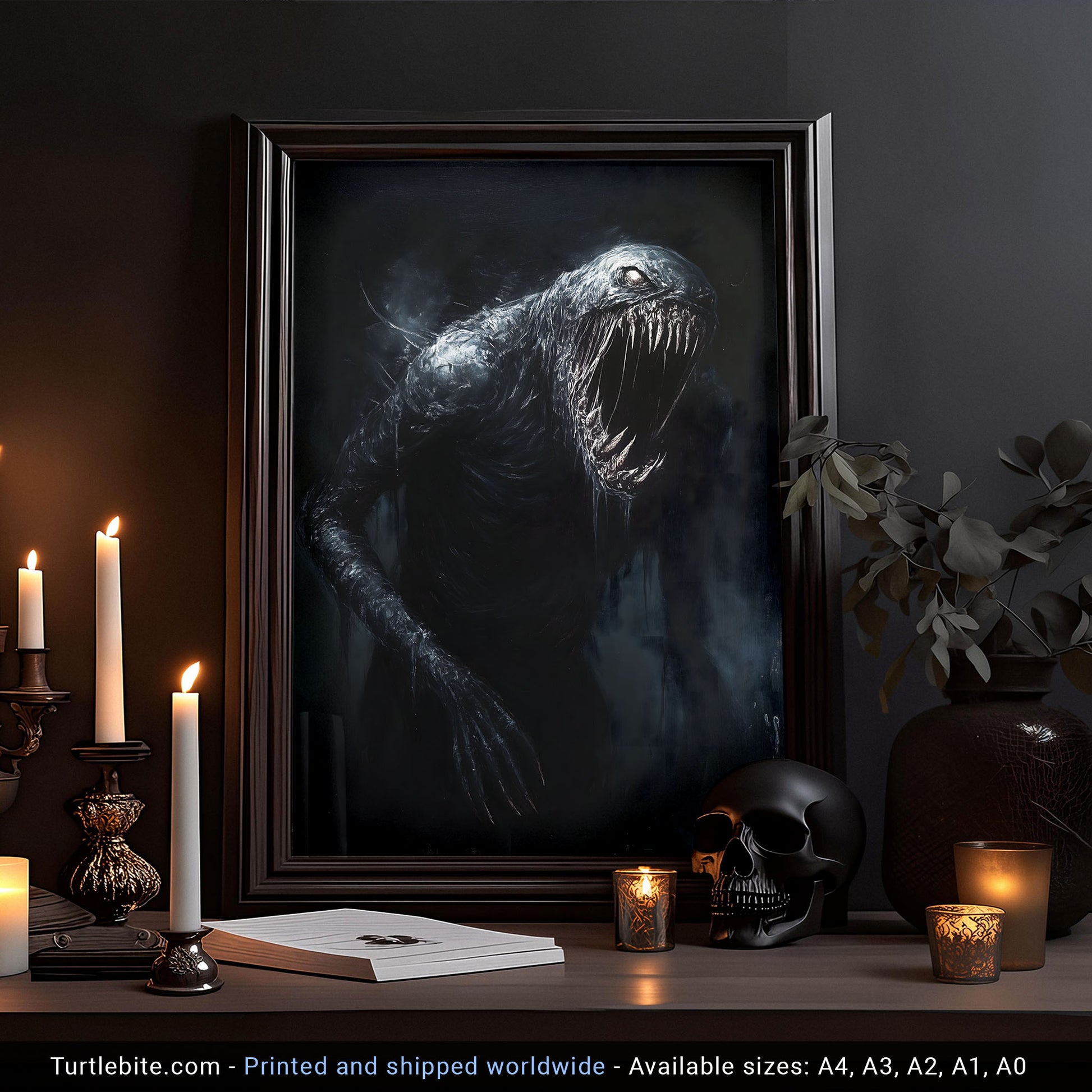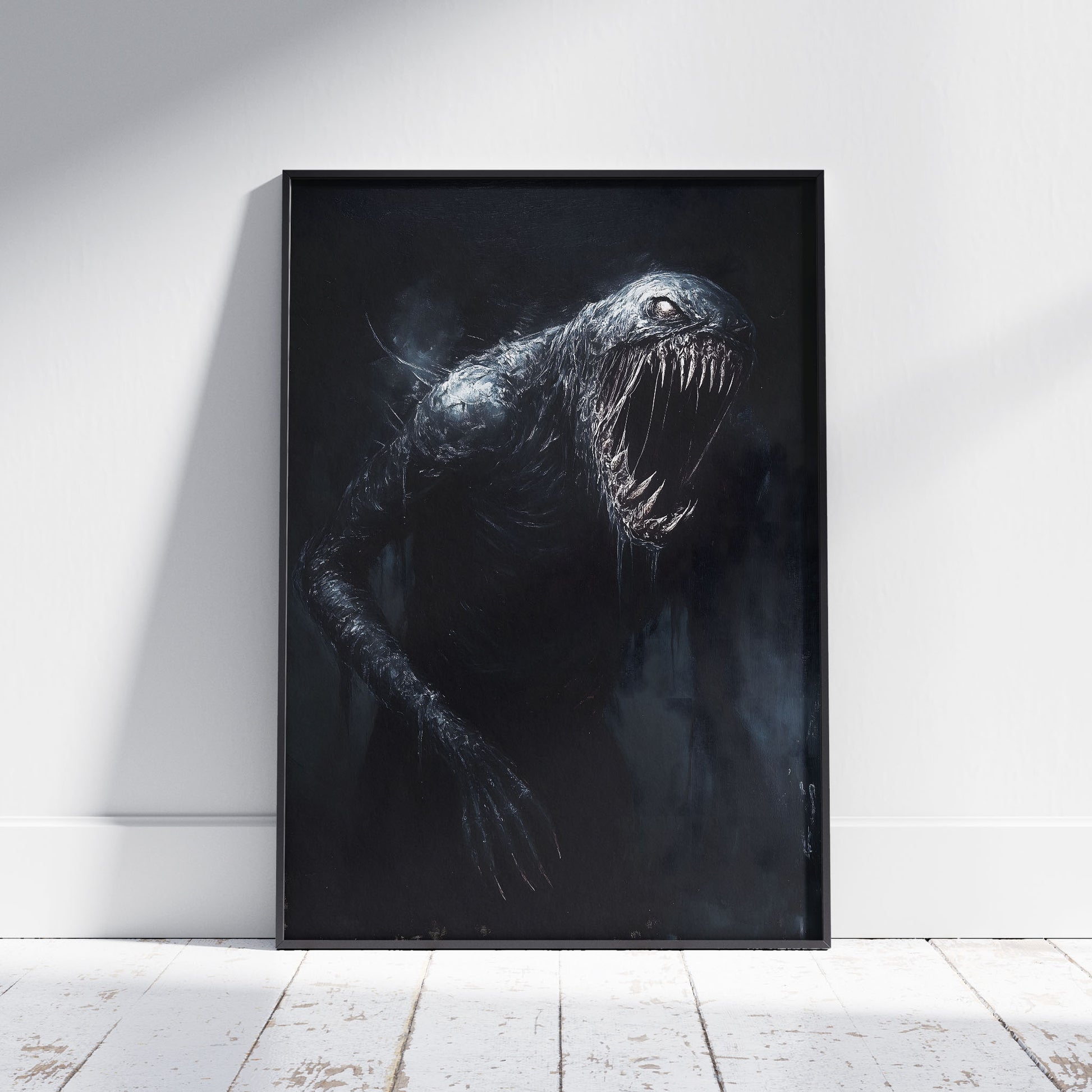 Immerse yourself in the eerie allure of our Dark Ghoul Creature Oil Painting Poster. This menacing and bizarre design showcases a terrifying monster bearing its teeth, making it a striking addition to your gothic home decor. Perfect for adding an edge to your living space, this print captures the essence of darkness and intrigue, while sparking conversation among guests. Ideal for fans of the macabre, this artwork effortlessly elevates any room. Bring your walls to life with this hauntingly beautiful piece today!