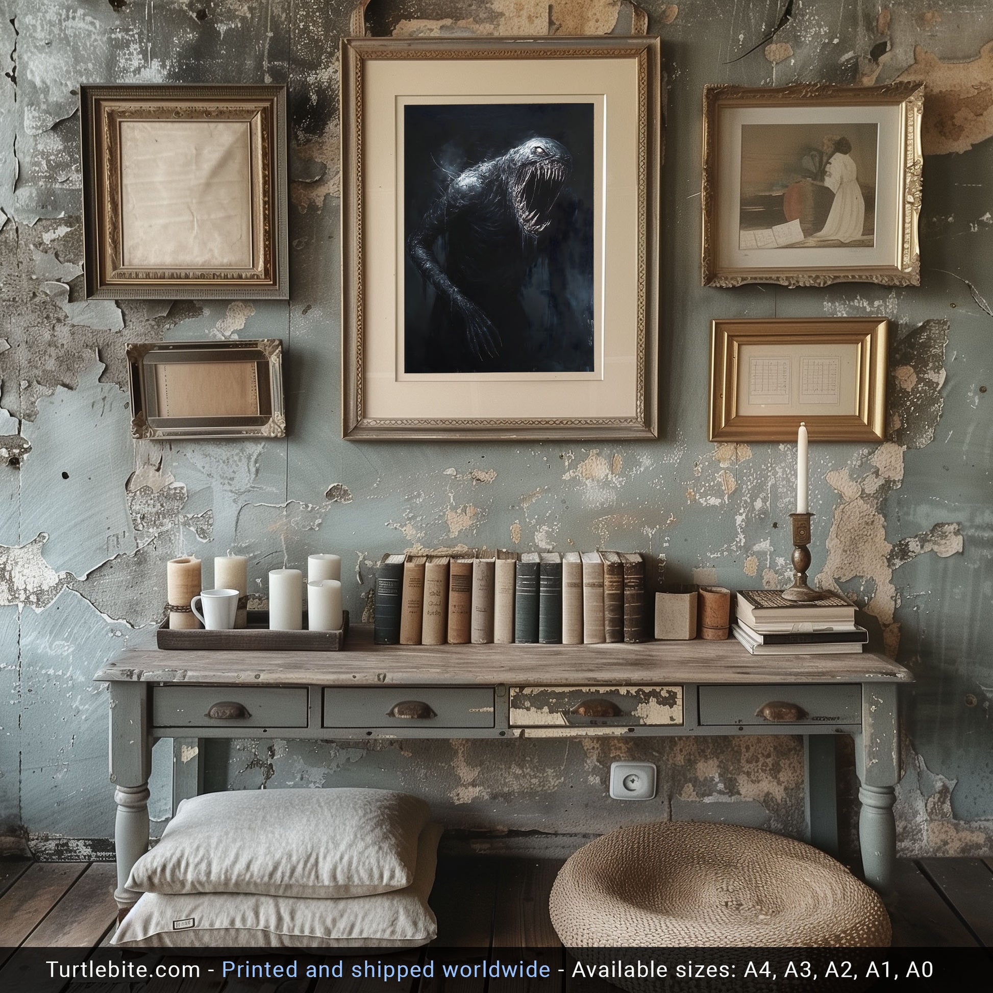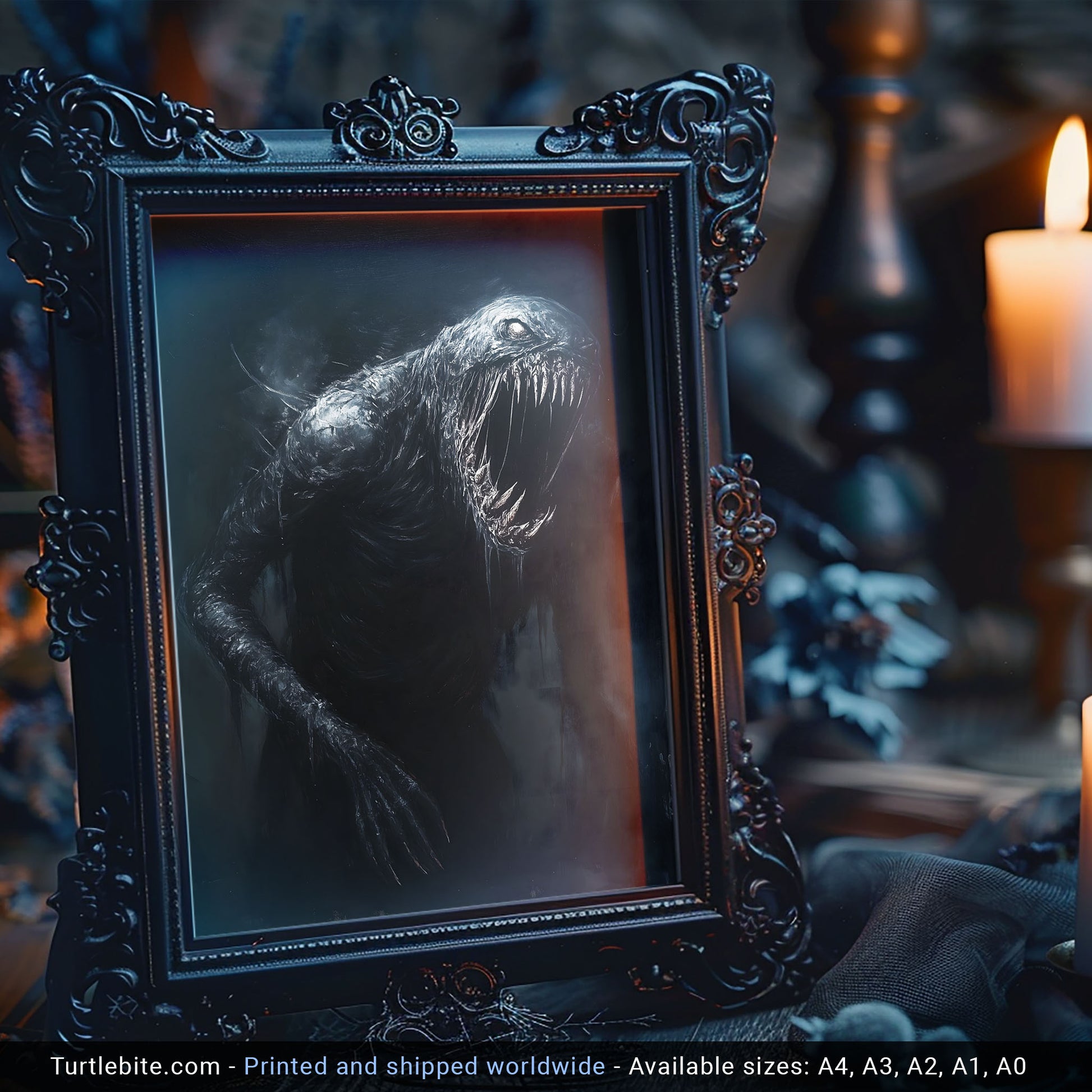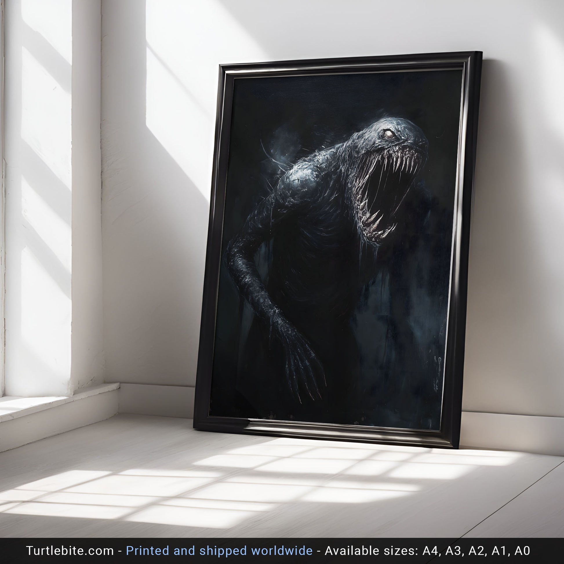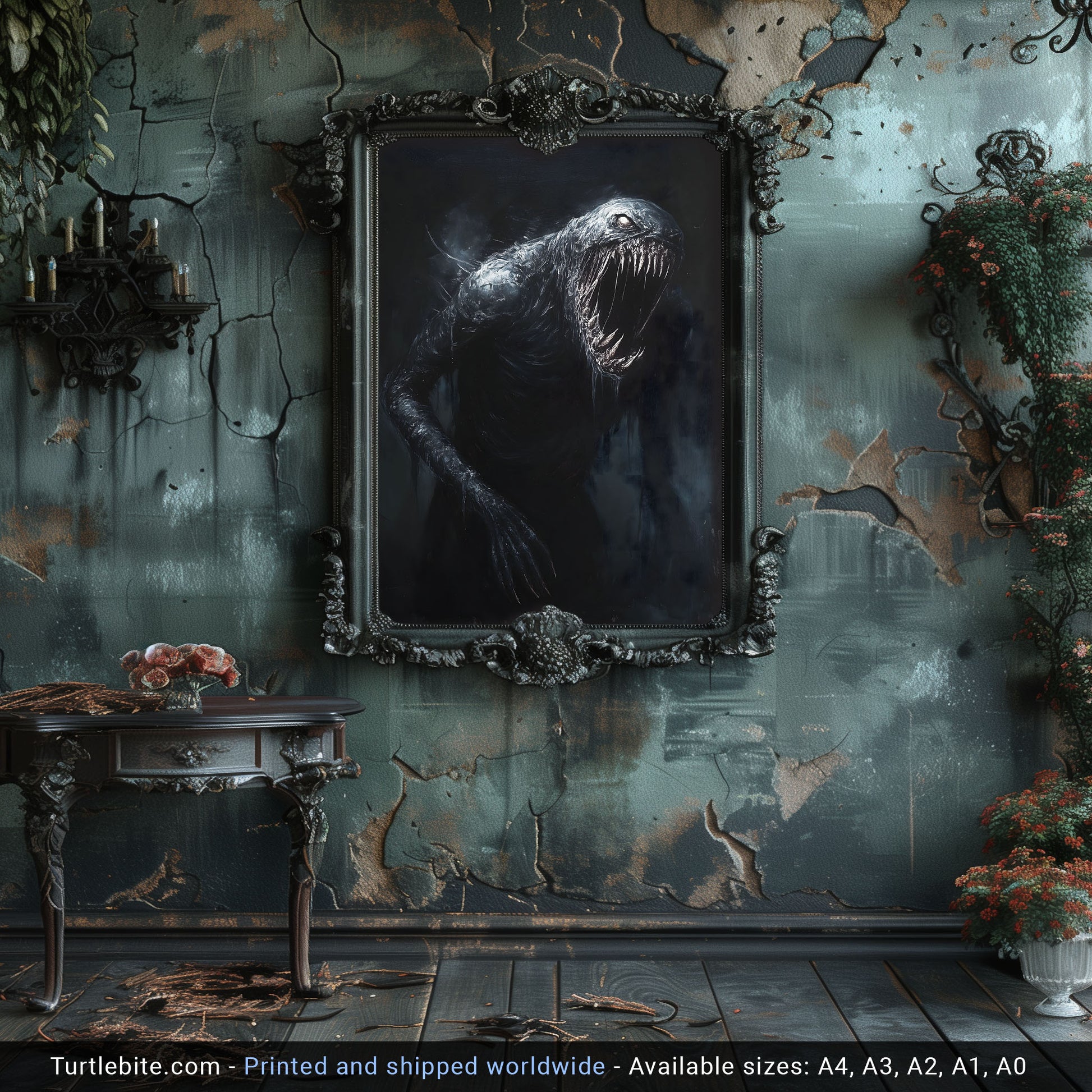Immerse yourself in the eerie allure of our Dark Ghoul Creature Oil Painting Poster. This menacing and bizarre design showcases a terrifying monster bearing its teeth, making it a striking addition to your gothic home decor. Perfect for adding an edge to your living space, this print captures the essence of darkness and intrigue, while sparking conversation among guests. Ideal for fans of the macabre, this artwork effortlessly elevates any room. Bring your walls to life with this hauntingly beautiful piece today!