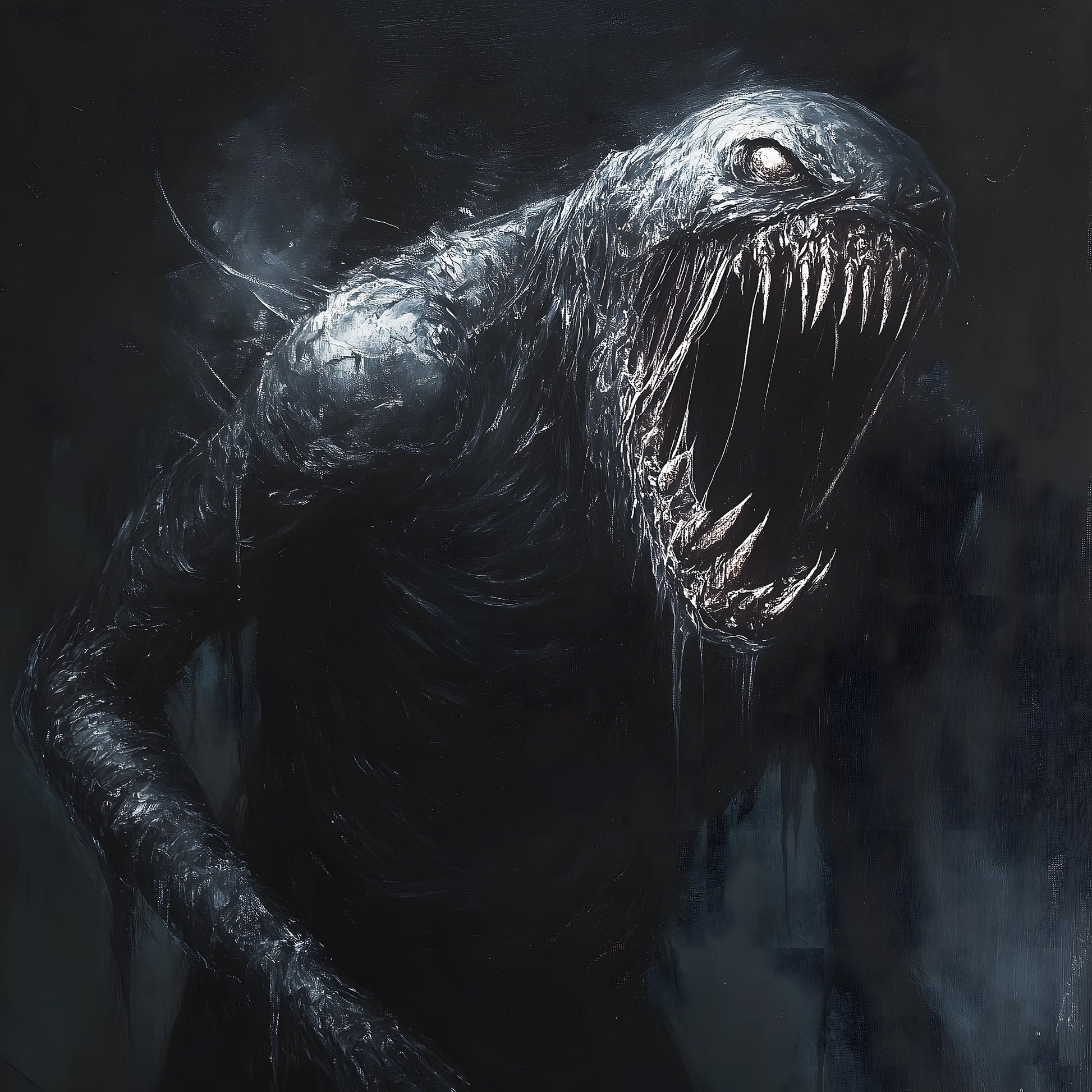 Chilling Teeth-Baring Ghoul Oil Painting Poster for Creepy Decor - Bizarre Dark Monster Artwork Print