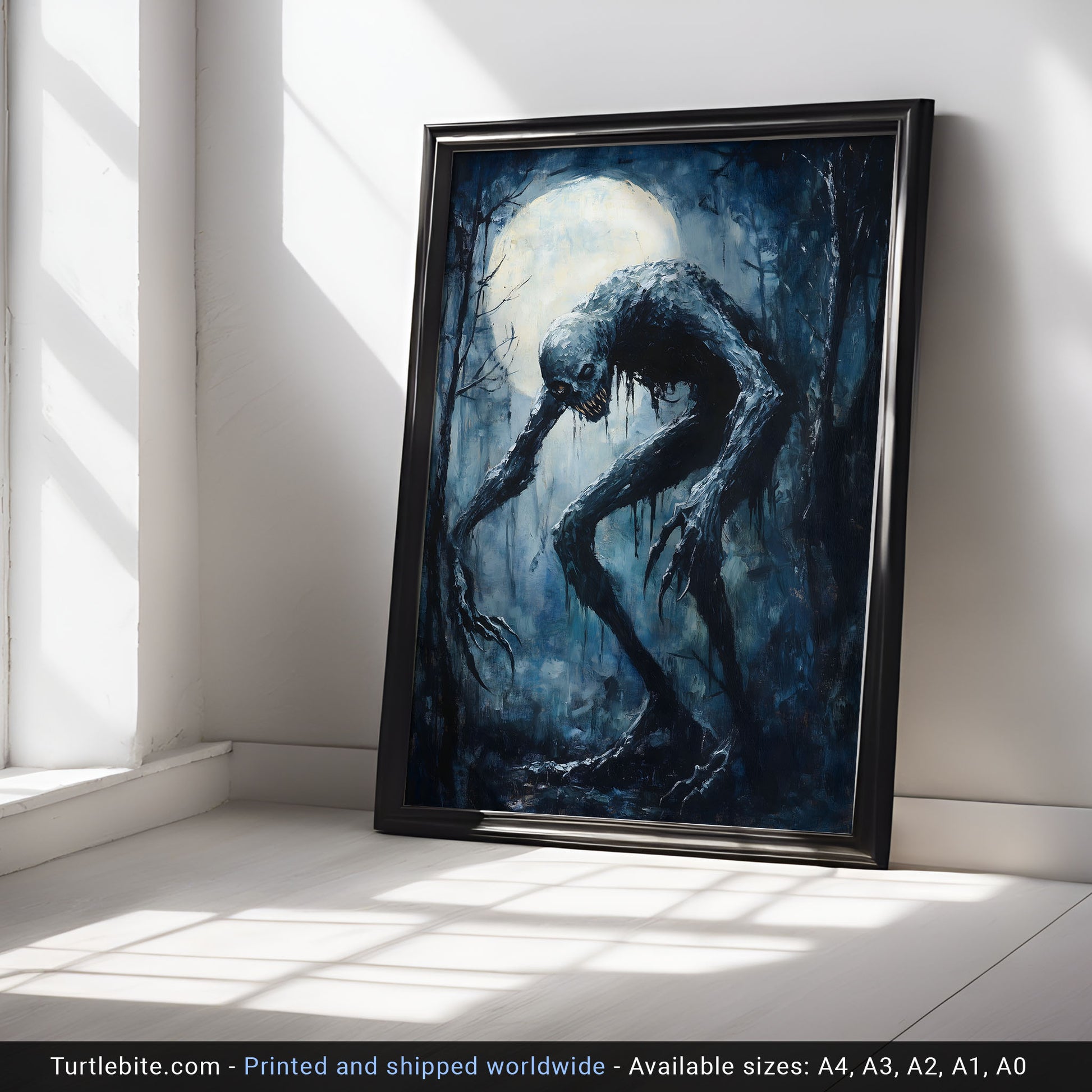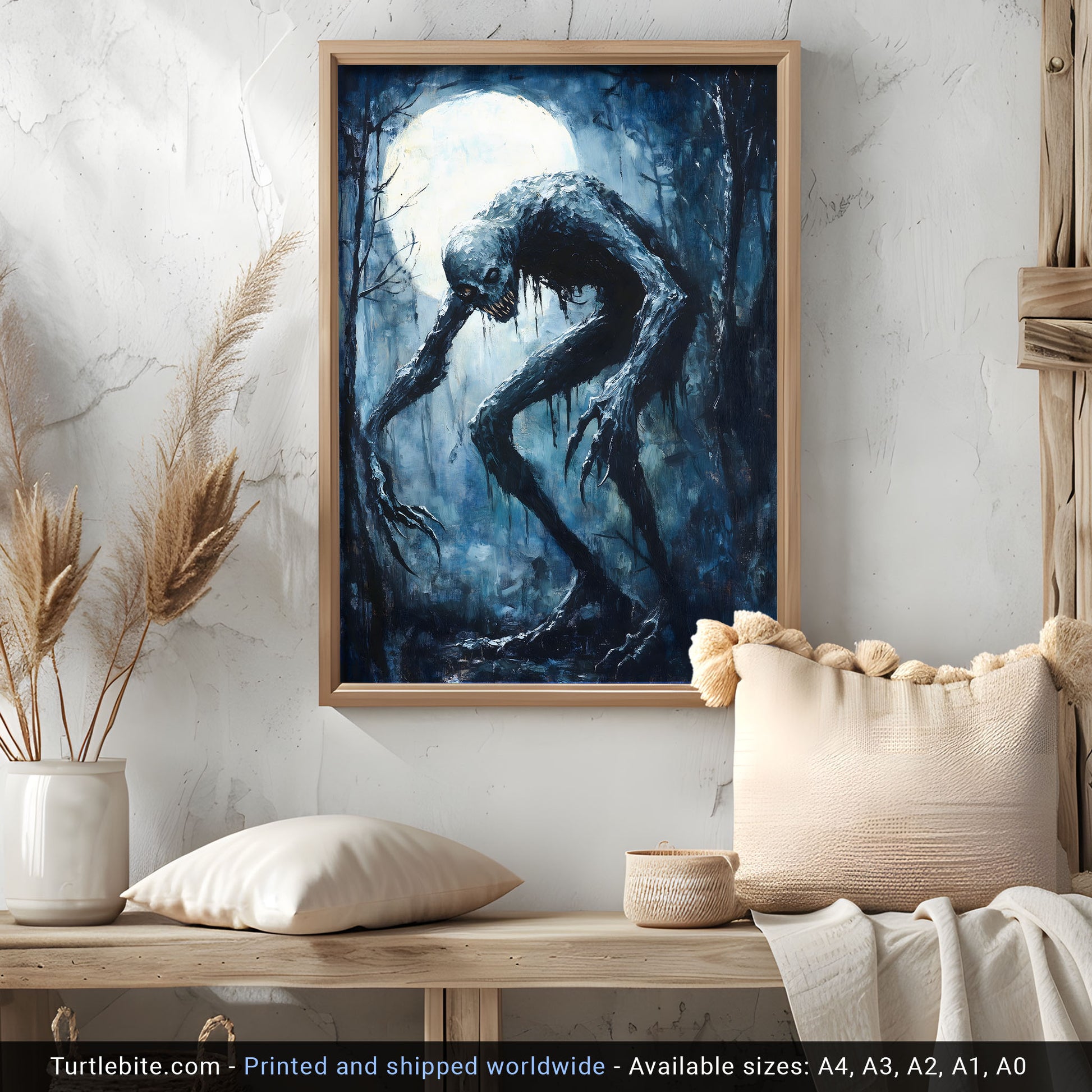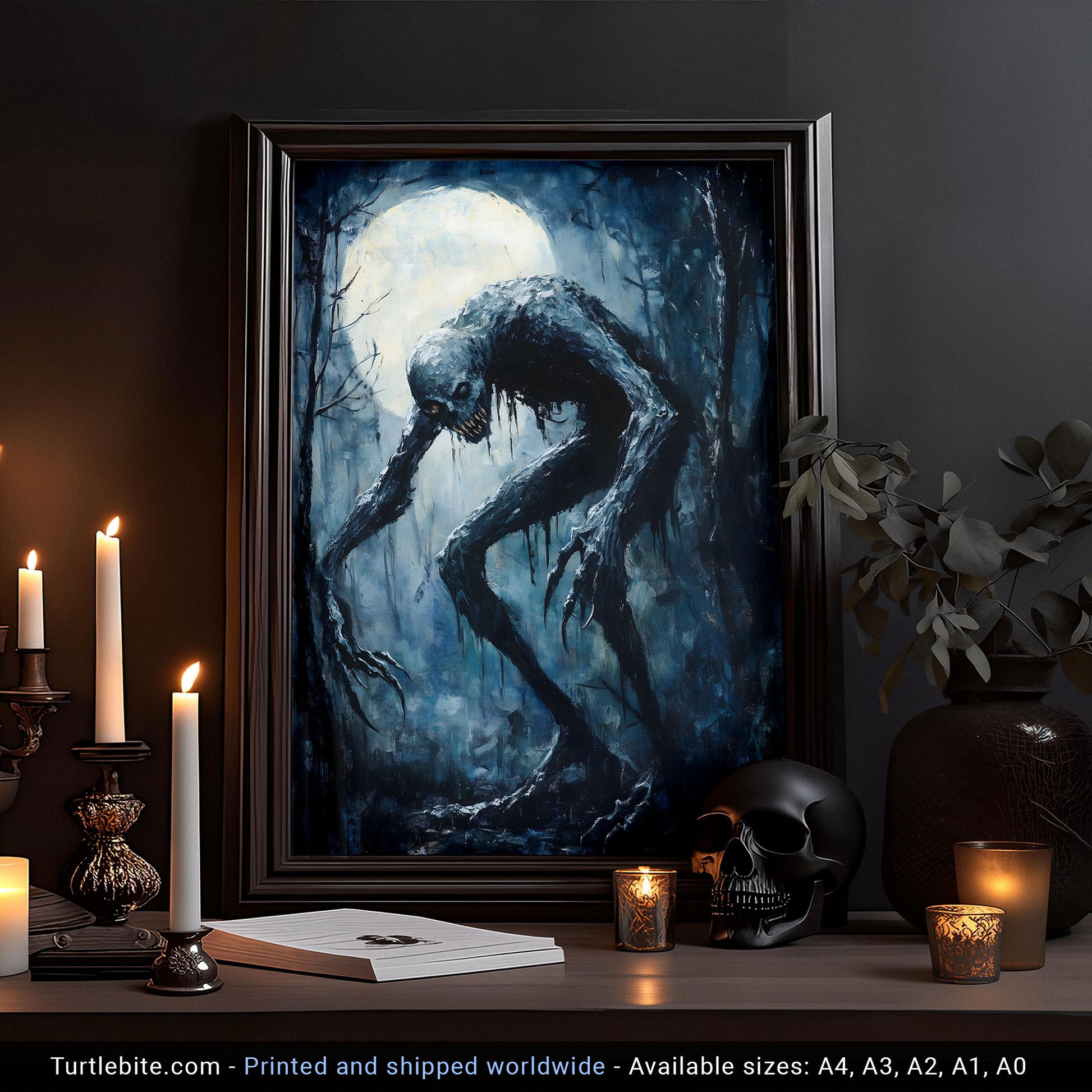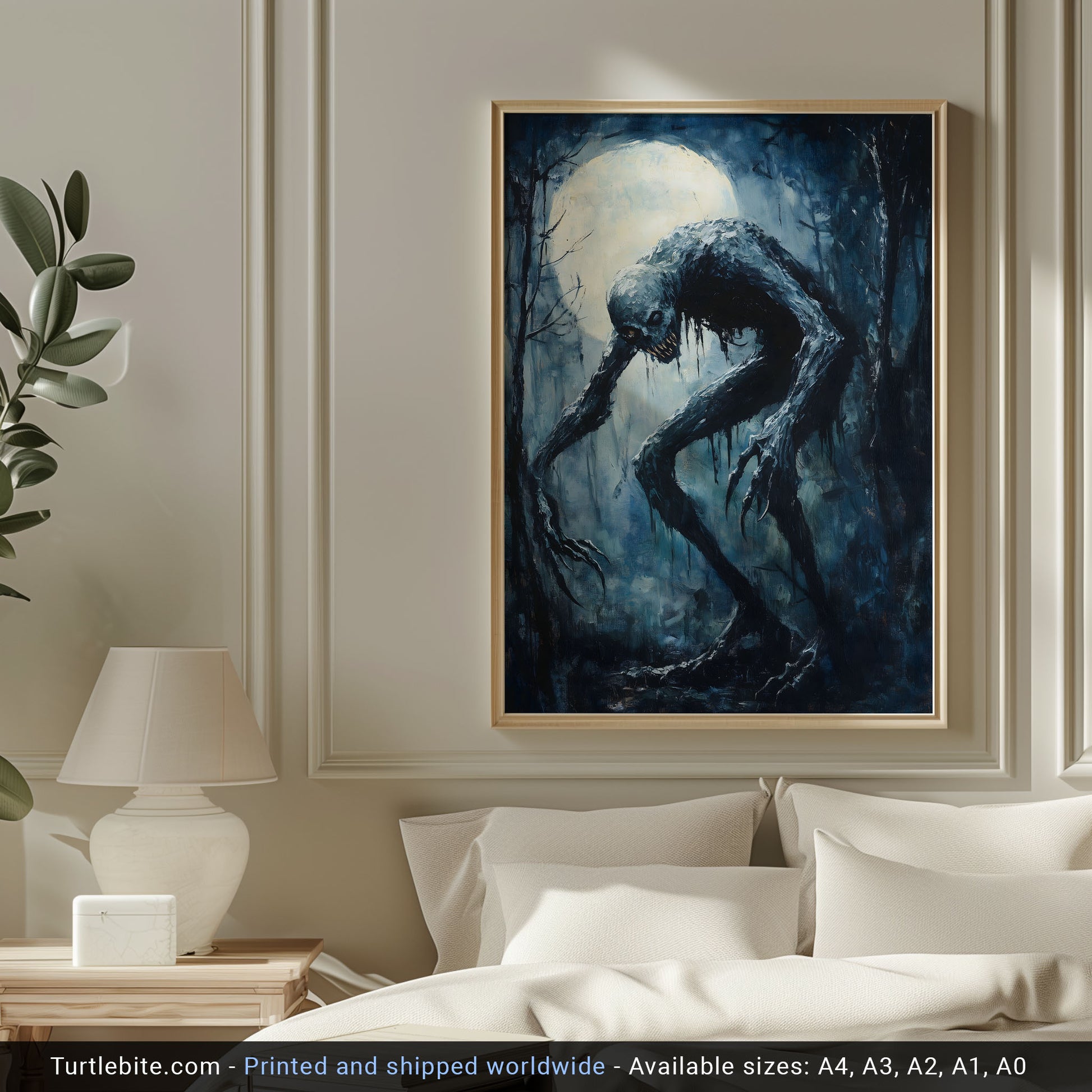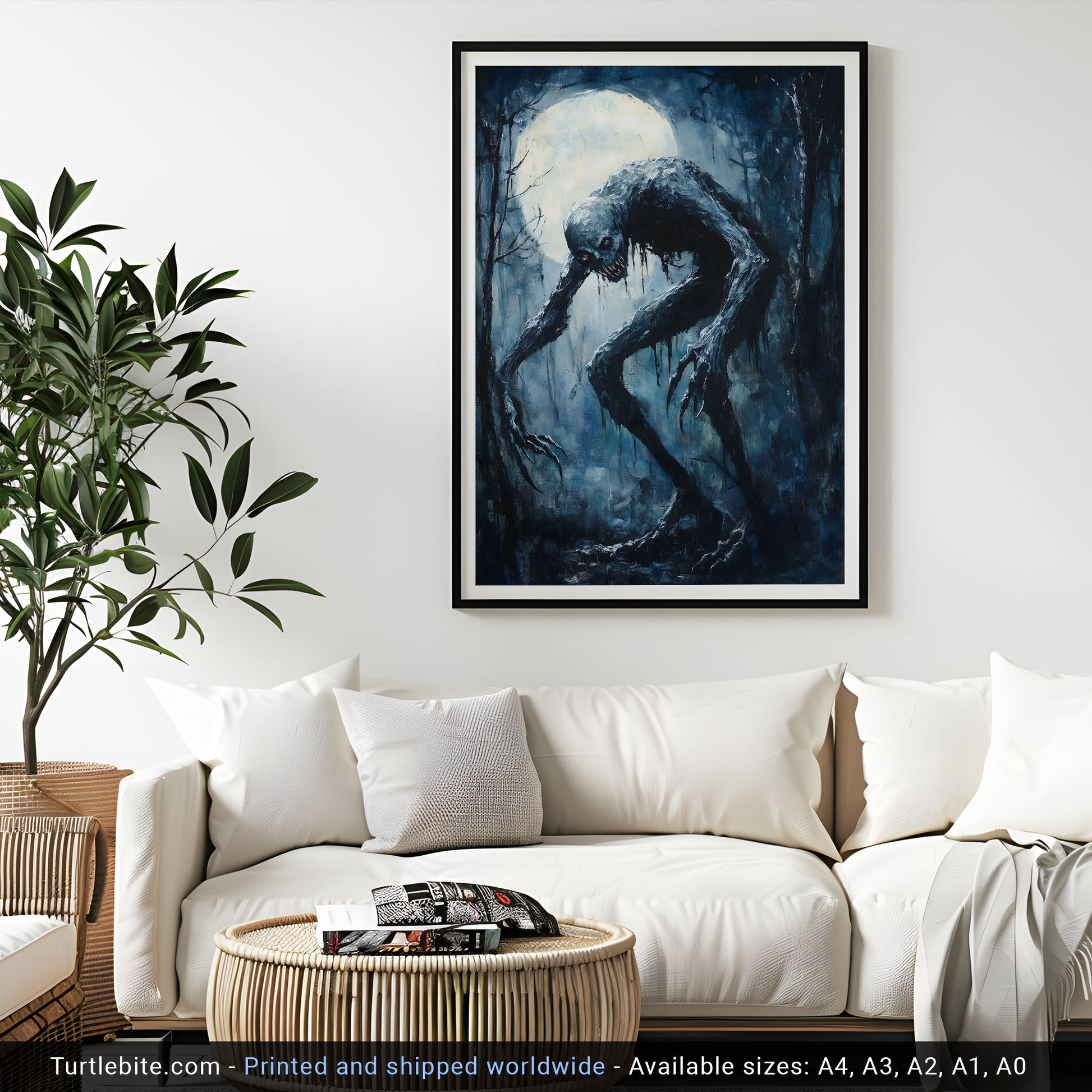 Creepy Humpbacked Monster in the Moonlight Poster Print | Whimsical Art Print | Mysterious Painting
