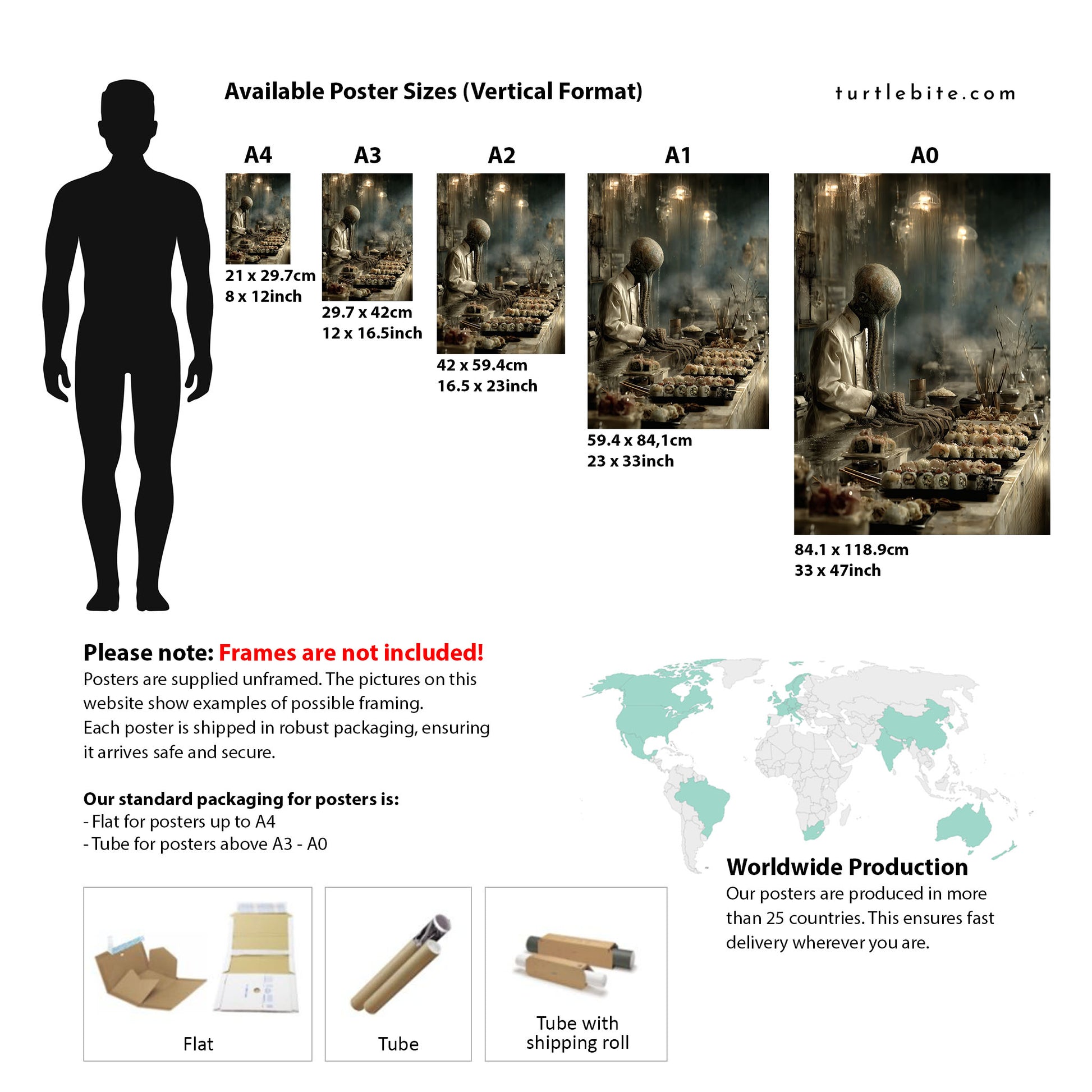 Please note: posters are supplied unframed, the pictures on this website show examples of possible framing. Prints may exhibit slight variation from what you see on your screen due to differences in calibration, brightness, and ambient lighting. Mockups serve only as illustrations and may not perfectly represent the final artwork.
