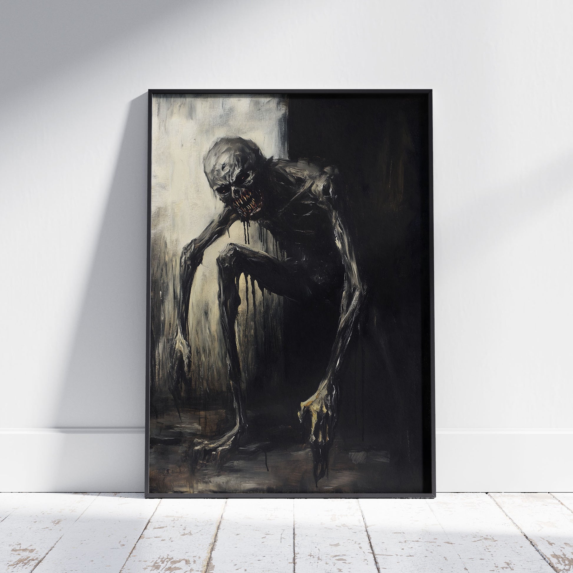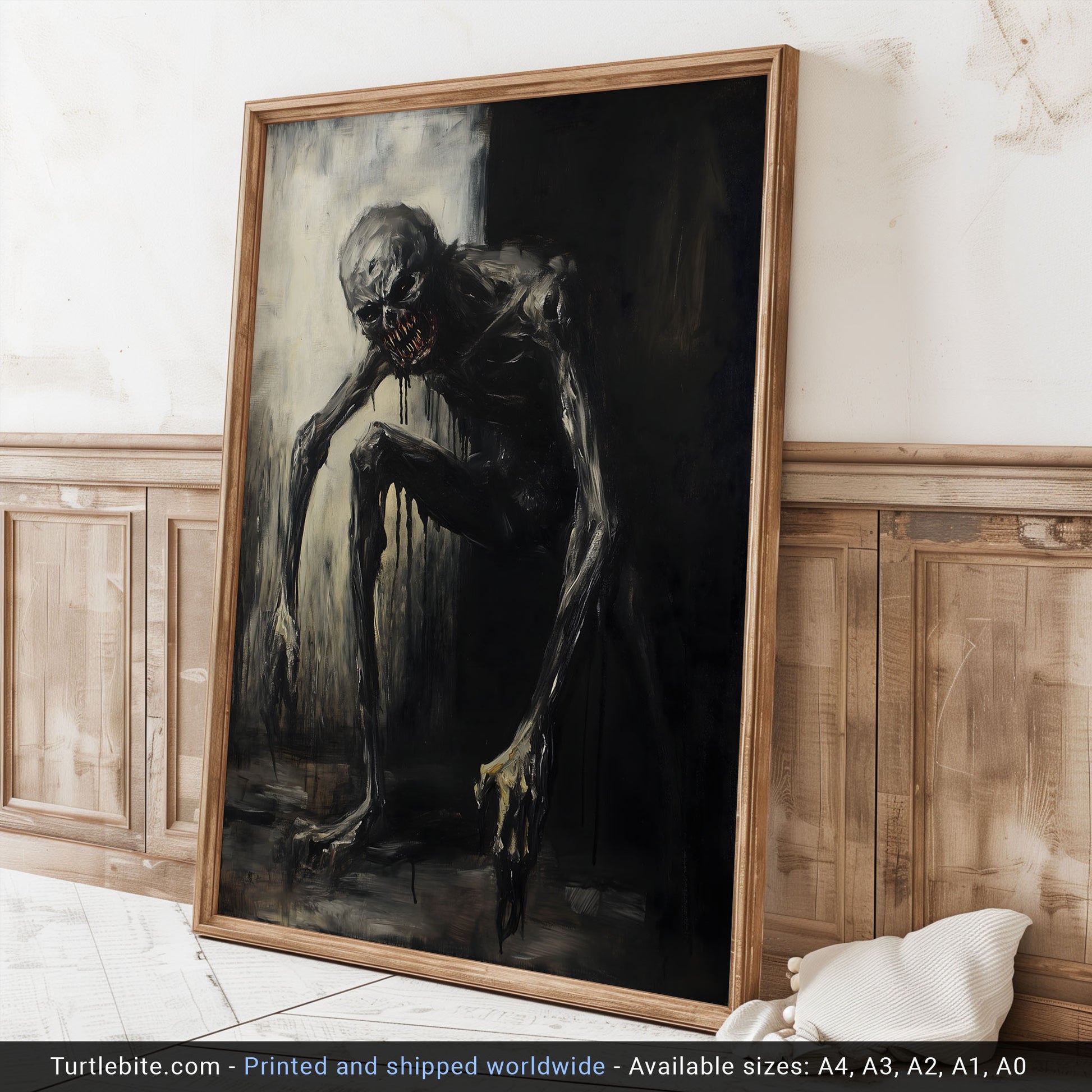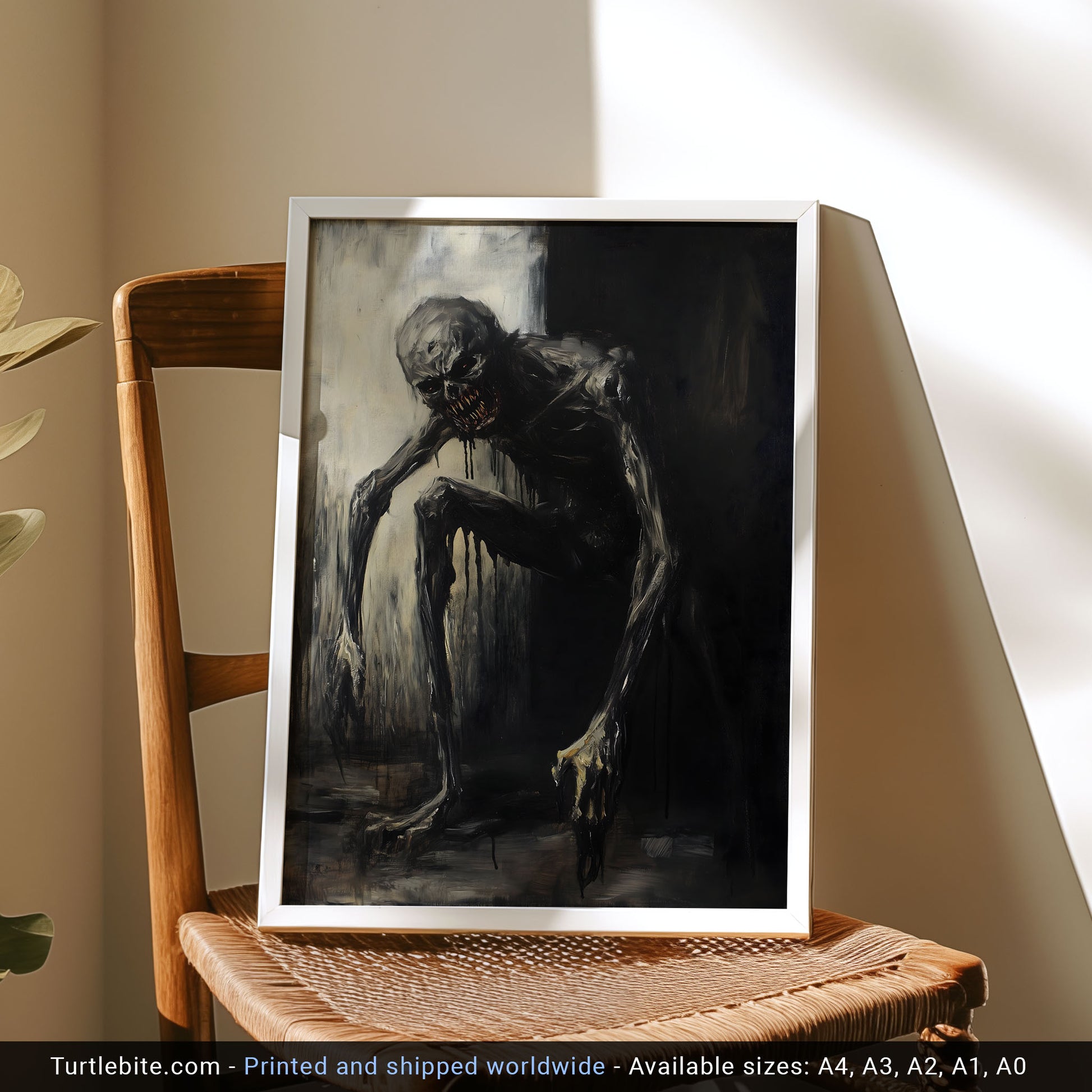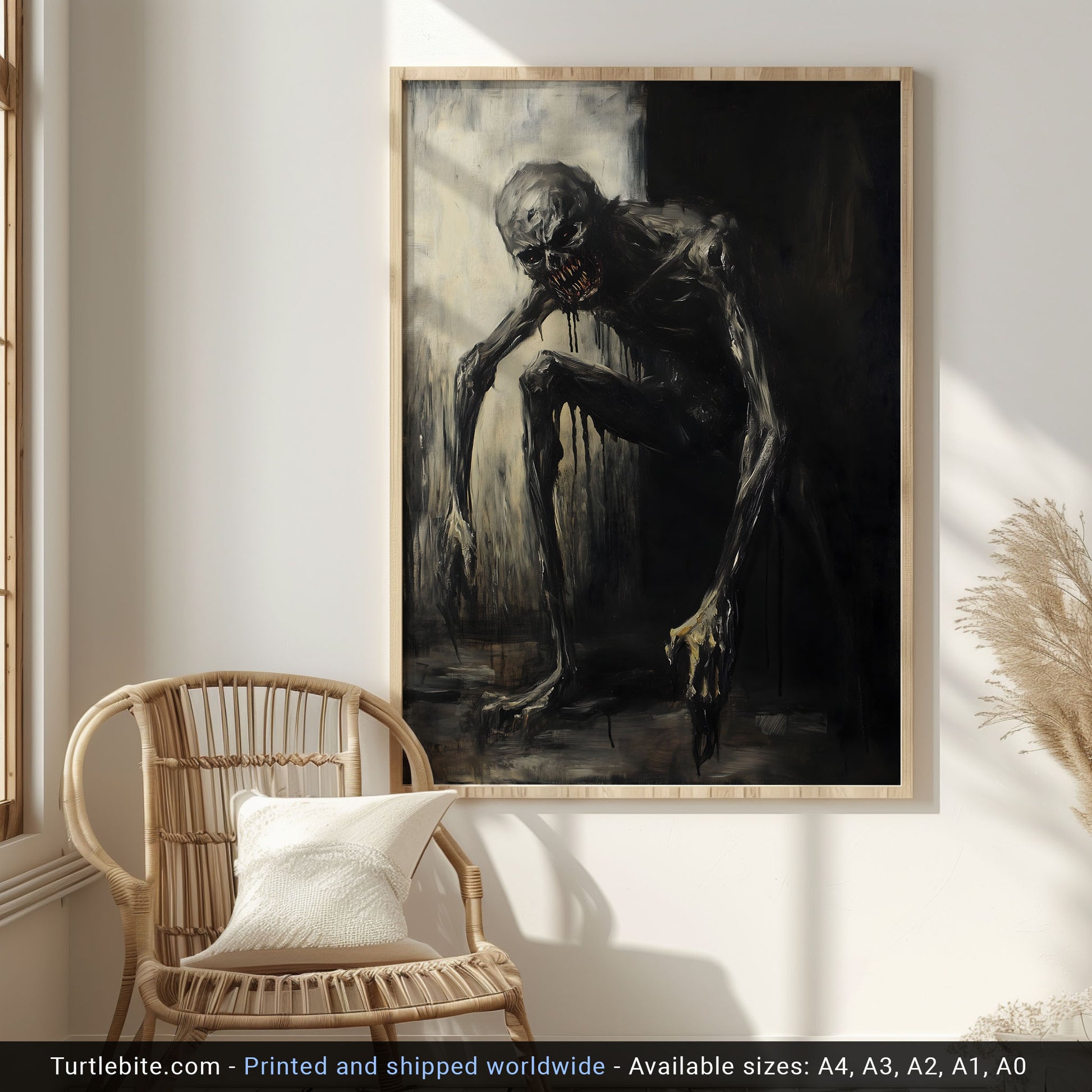 Dark Eerie Gritty Oil Painting of a Scary Creature Poster | Dark Scary Wall Art Painting Print