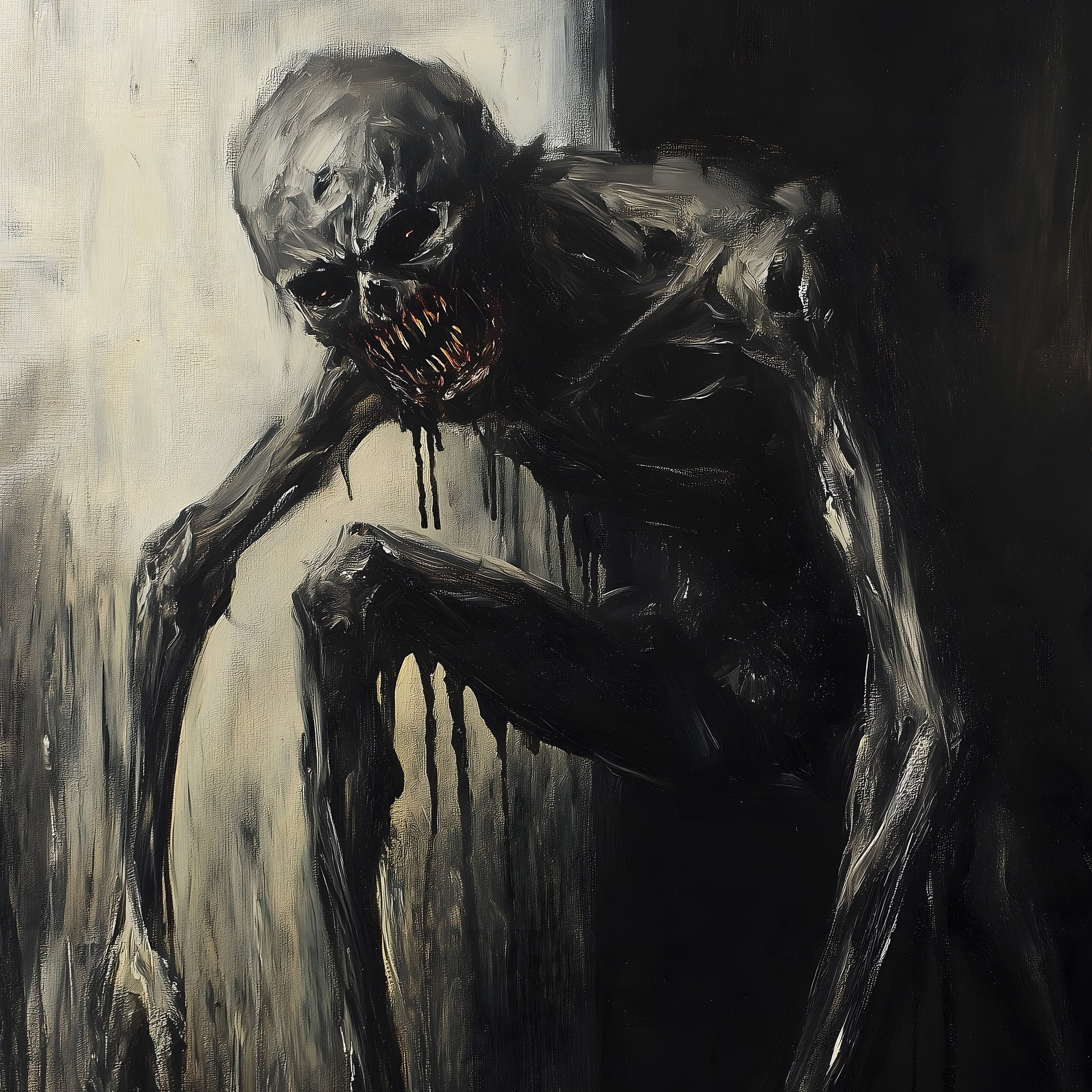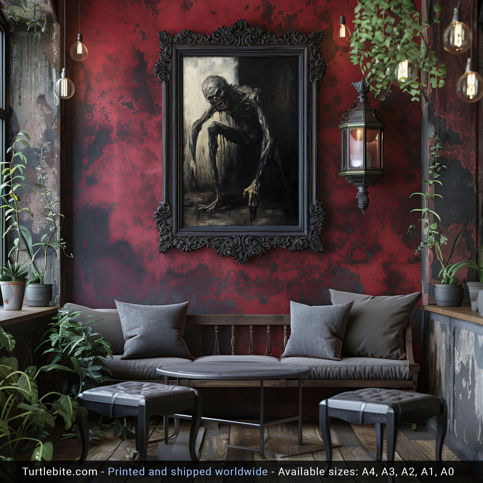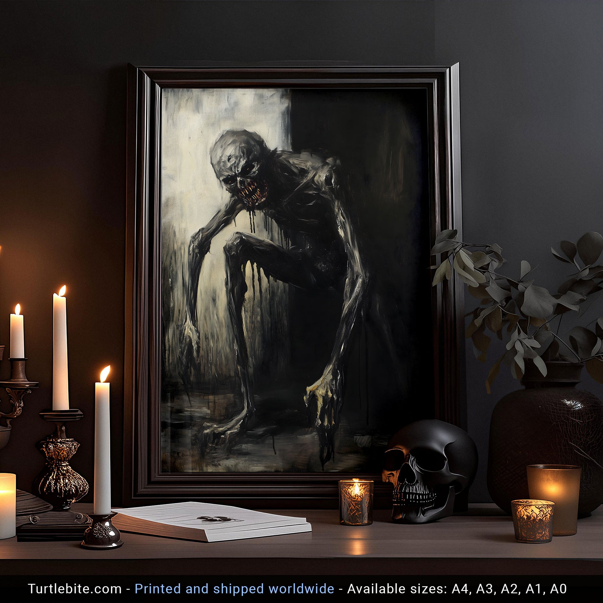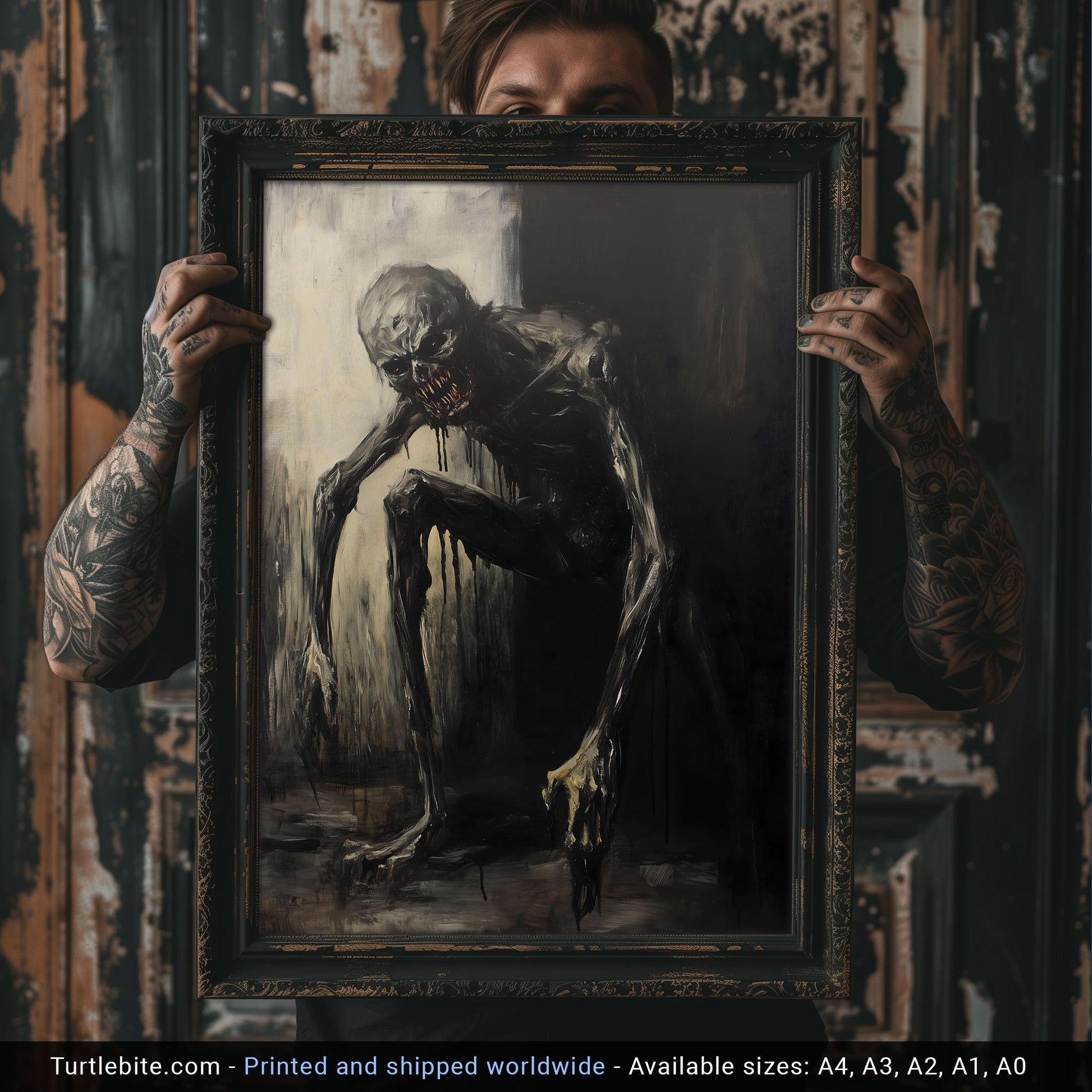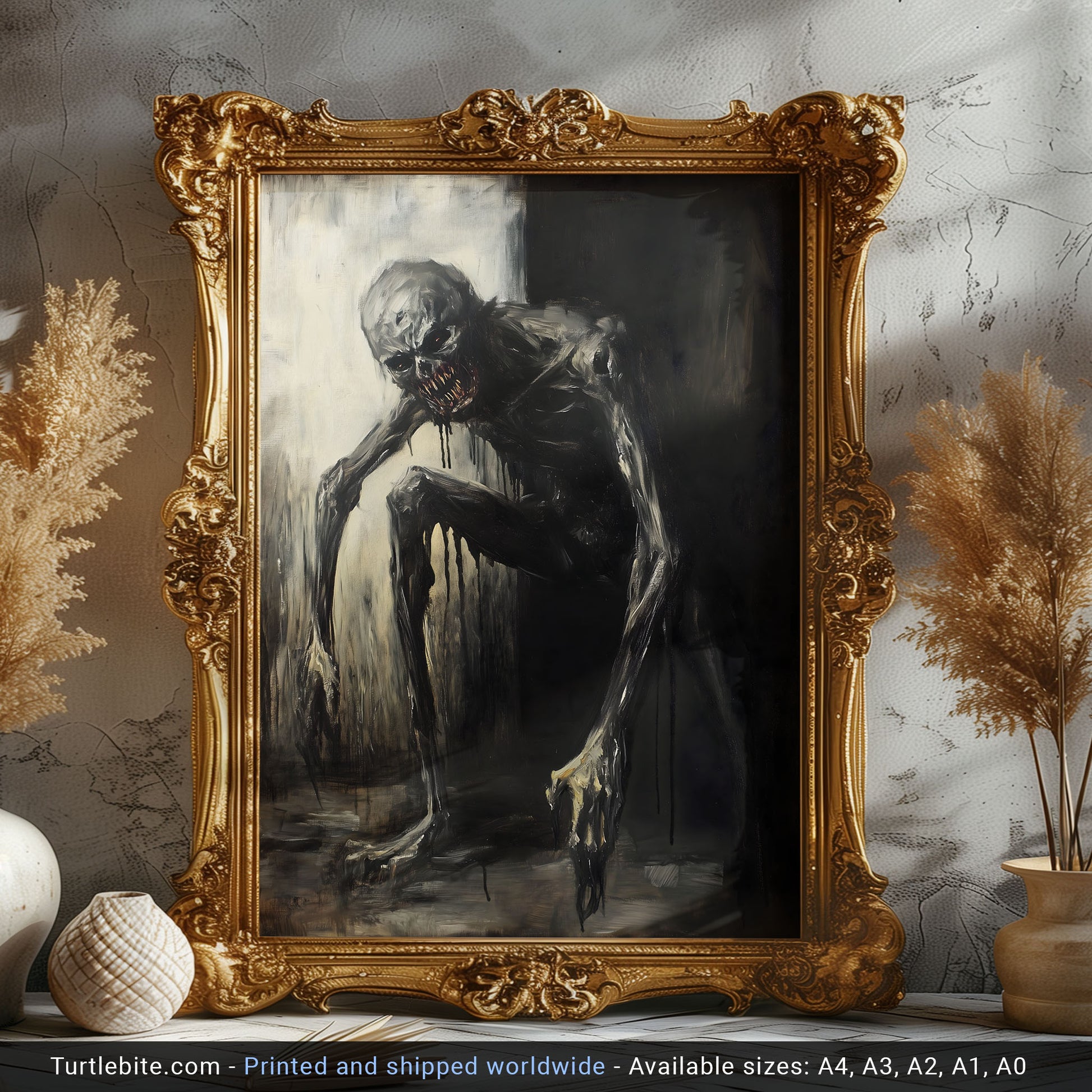 Dark Eerie Gritty Oil Painting of a Scary Creature Poster | Dark Scary Wall Art Painting Print