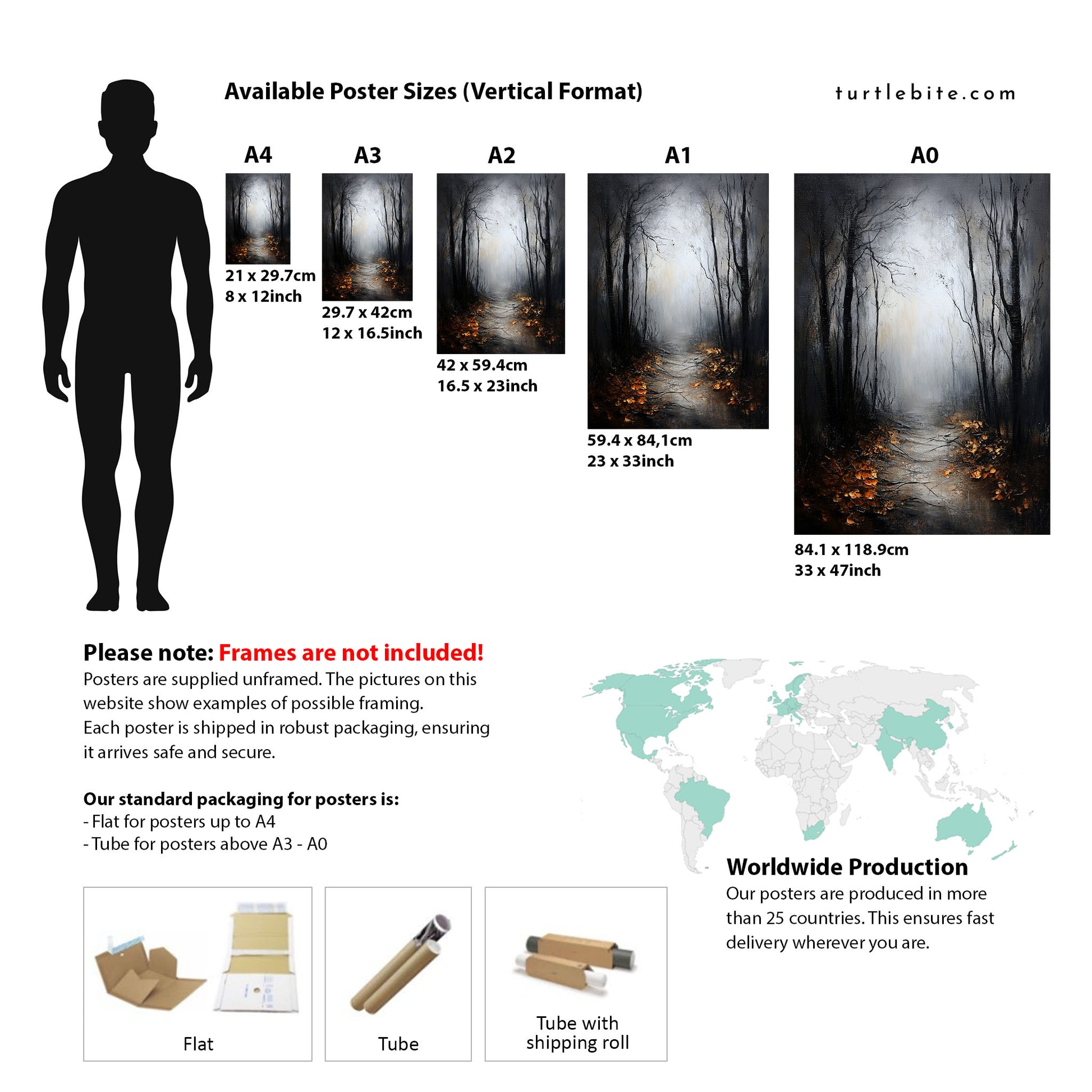 With a paper weight of 200 gsm/ 80 lb, it is perfect for long-lasting prints that are stunning to look at in all their vibrant glory. We use FSC-certified paper or equivalent certifications depending on regional availability. It’s better for the people and the planet. Each poster is shipped in robust packaging, ensuring it arrives safe and secure. Paper sizes may vary slightly by region. For the US and Canada, the measurement is in inches, while for the rest of the world, it is in centimeters. This product is carefully made especially for you as soon as you place an order, which is why it takes us a bit longer to deliver it to you.
