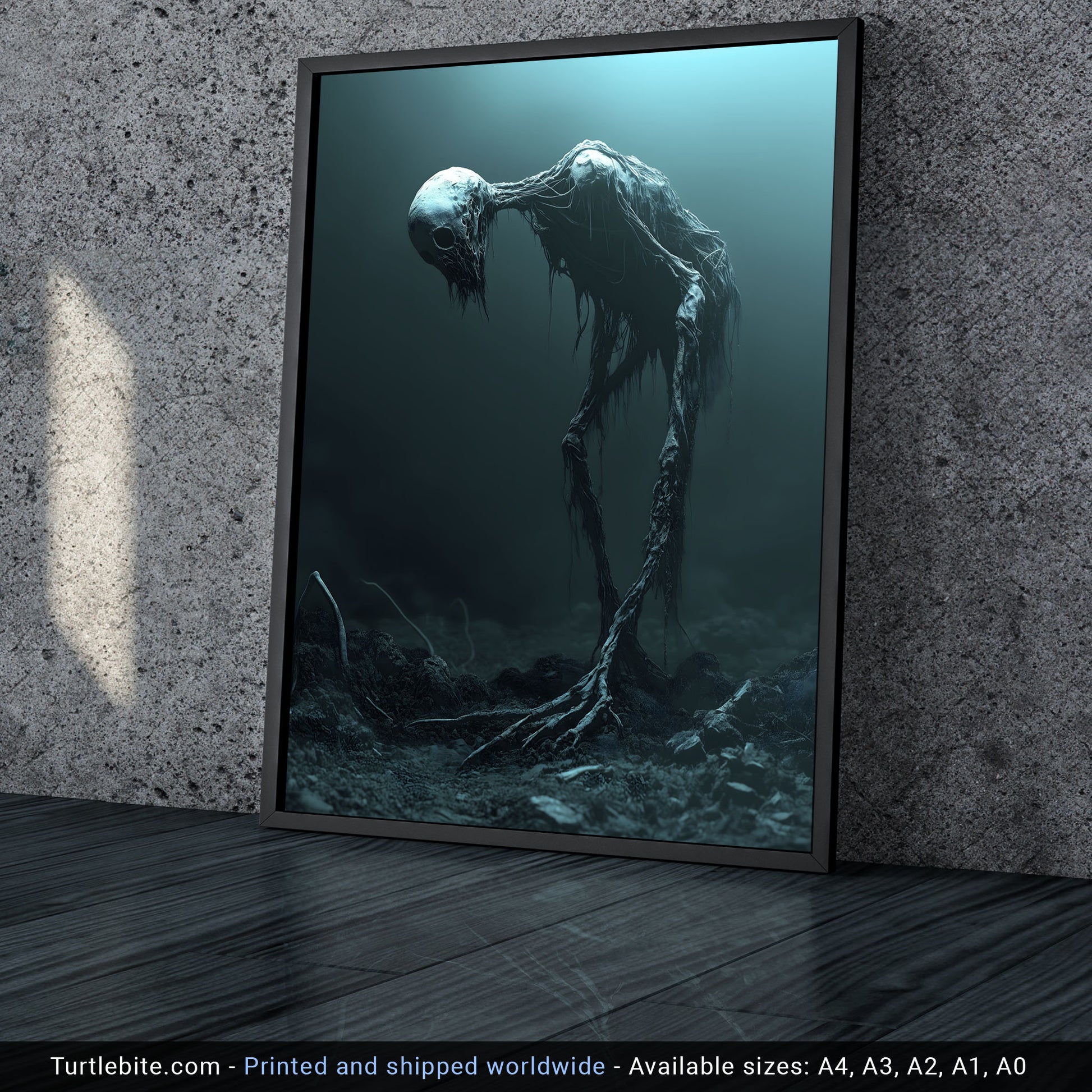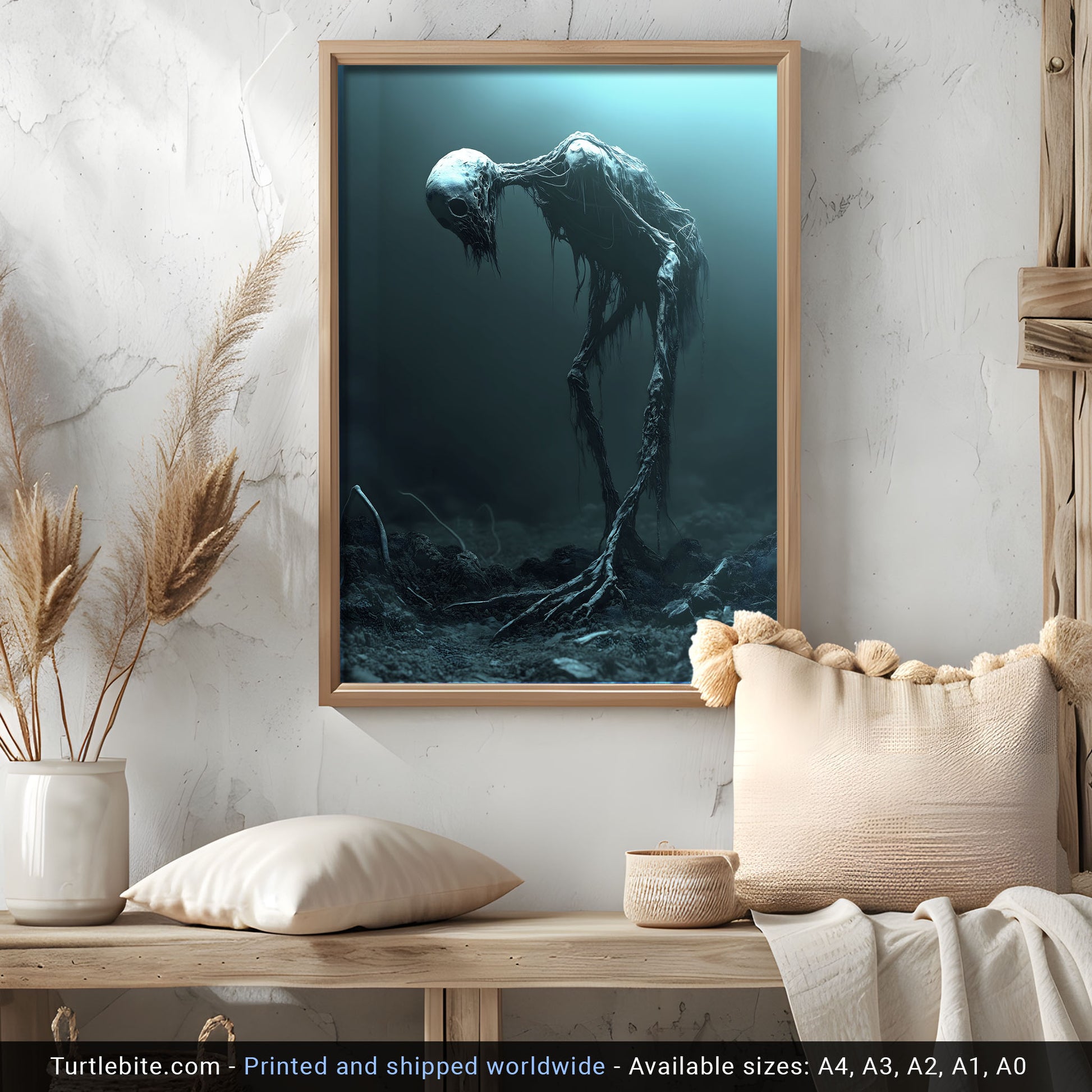 Deep Sea Skeleton Creature Dark Art Poster Print | Haunted Art Horror