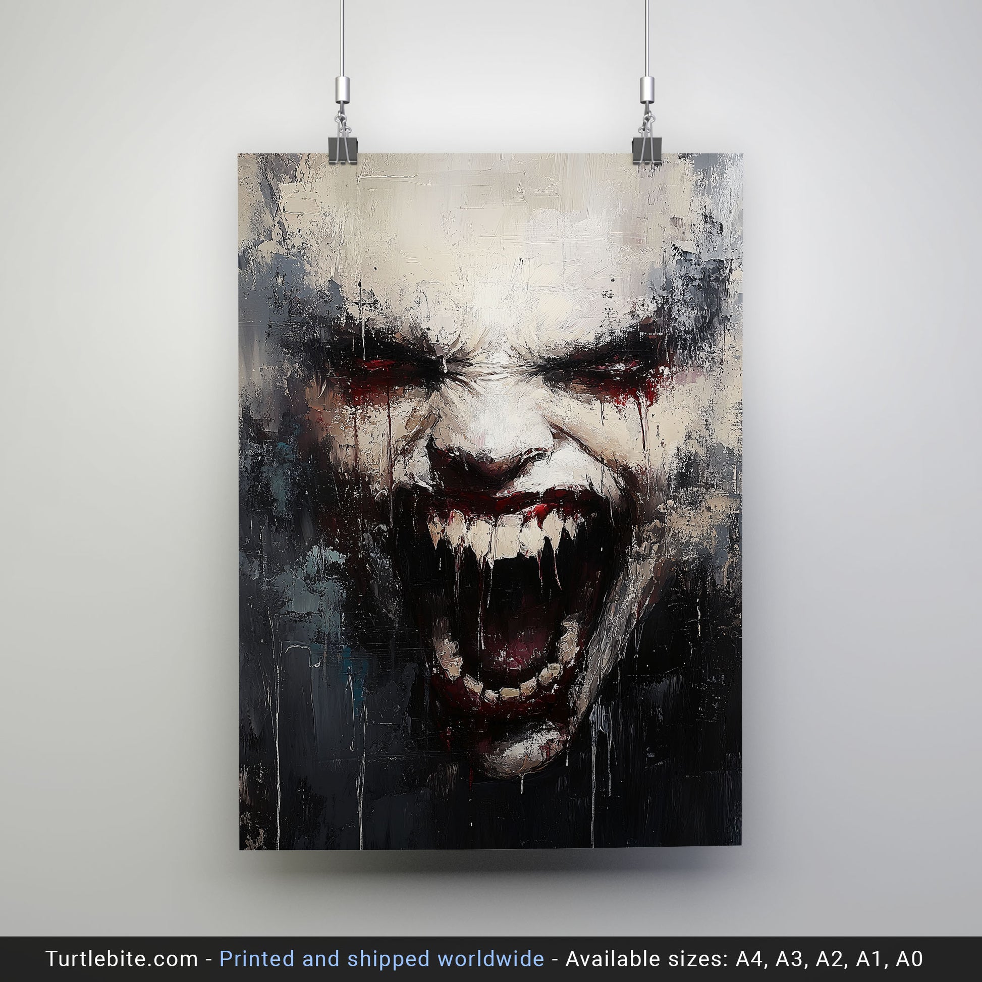 Devilish Grimace Poster Print, Diabolical Face Painting, Scary Pictures, Horror Artwork, Gothic Wall Art, Creepy Stuff
