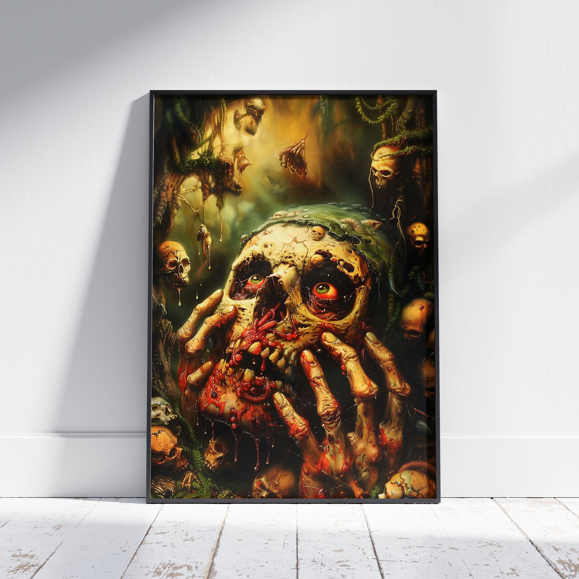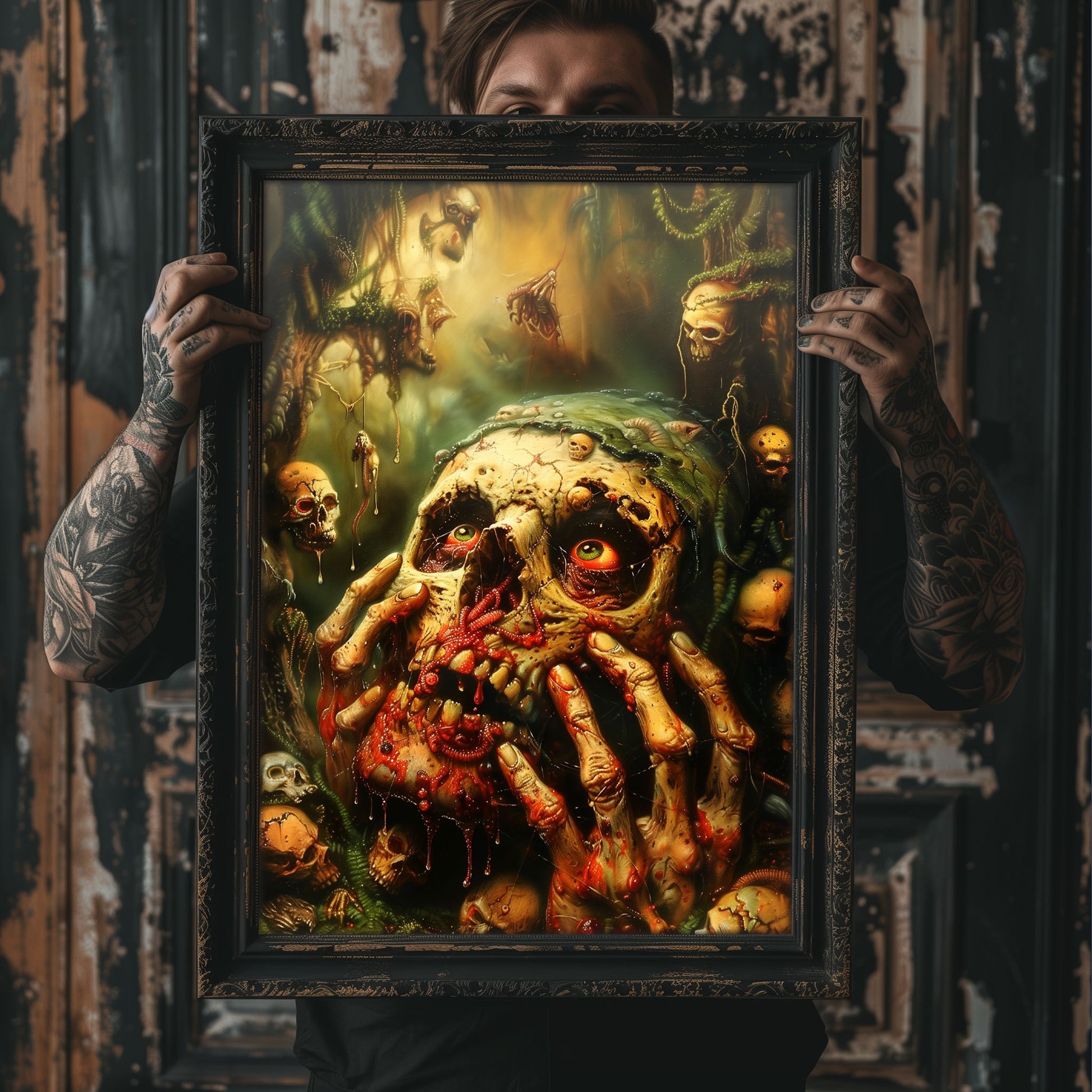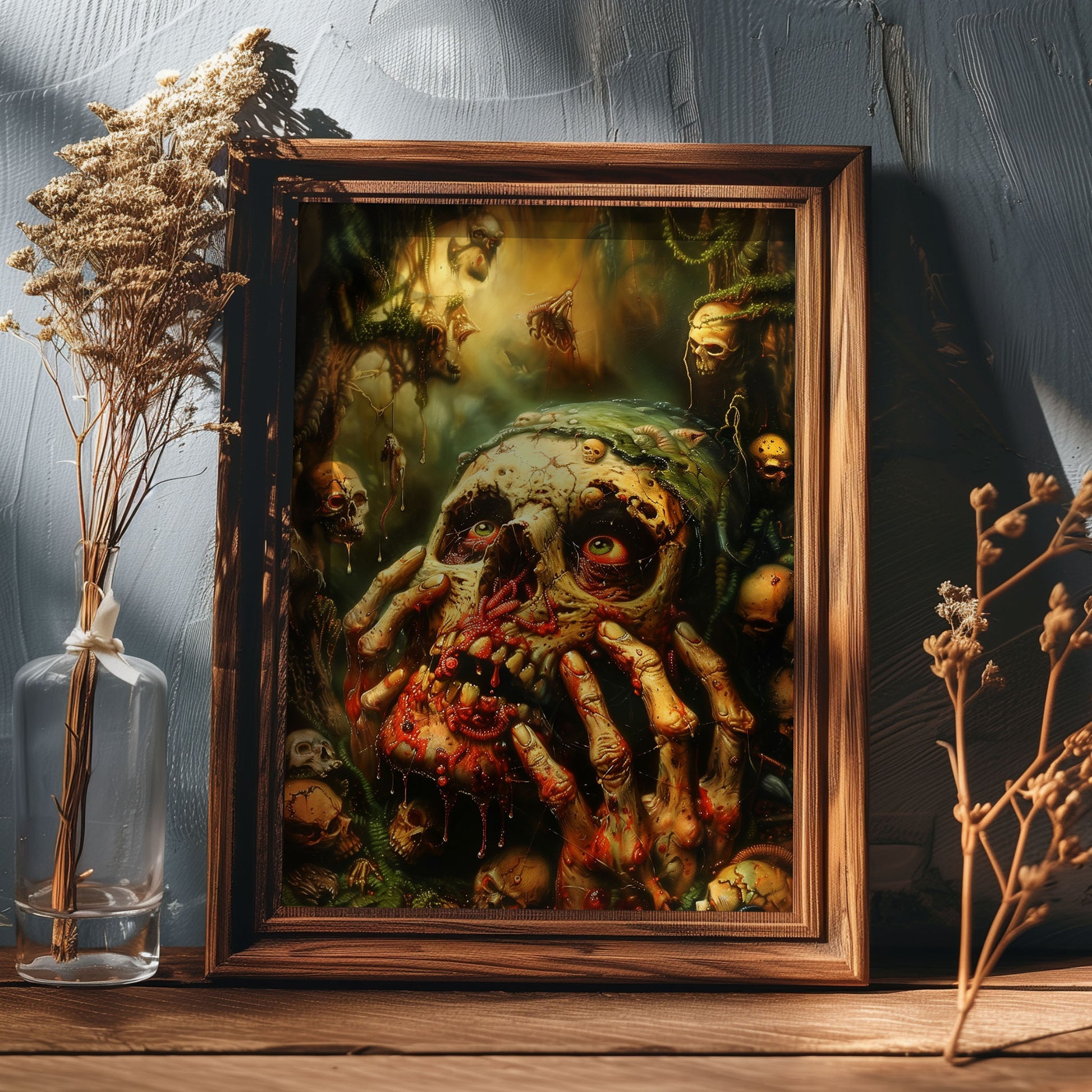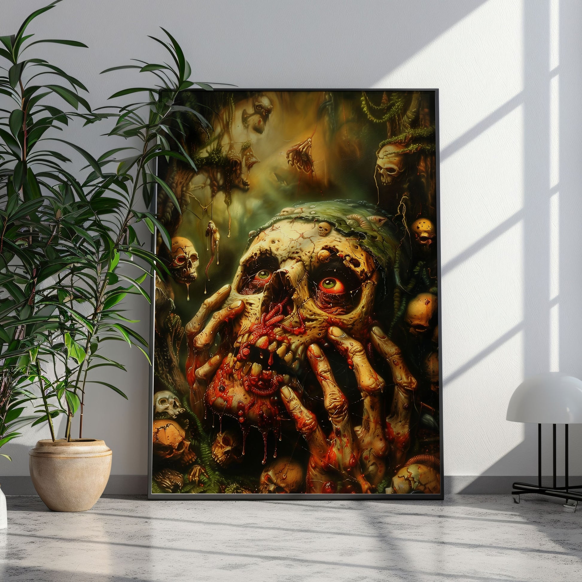 Eerie Weirdcore Grave Zombie Poster - Haunting Macabre Decor for Gothic Home