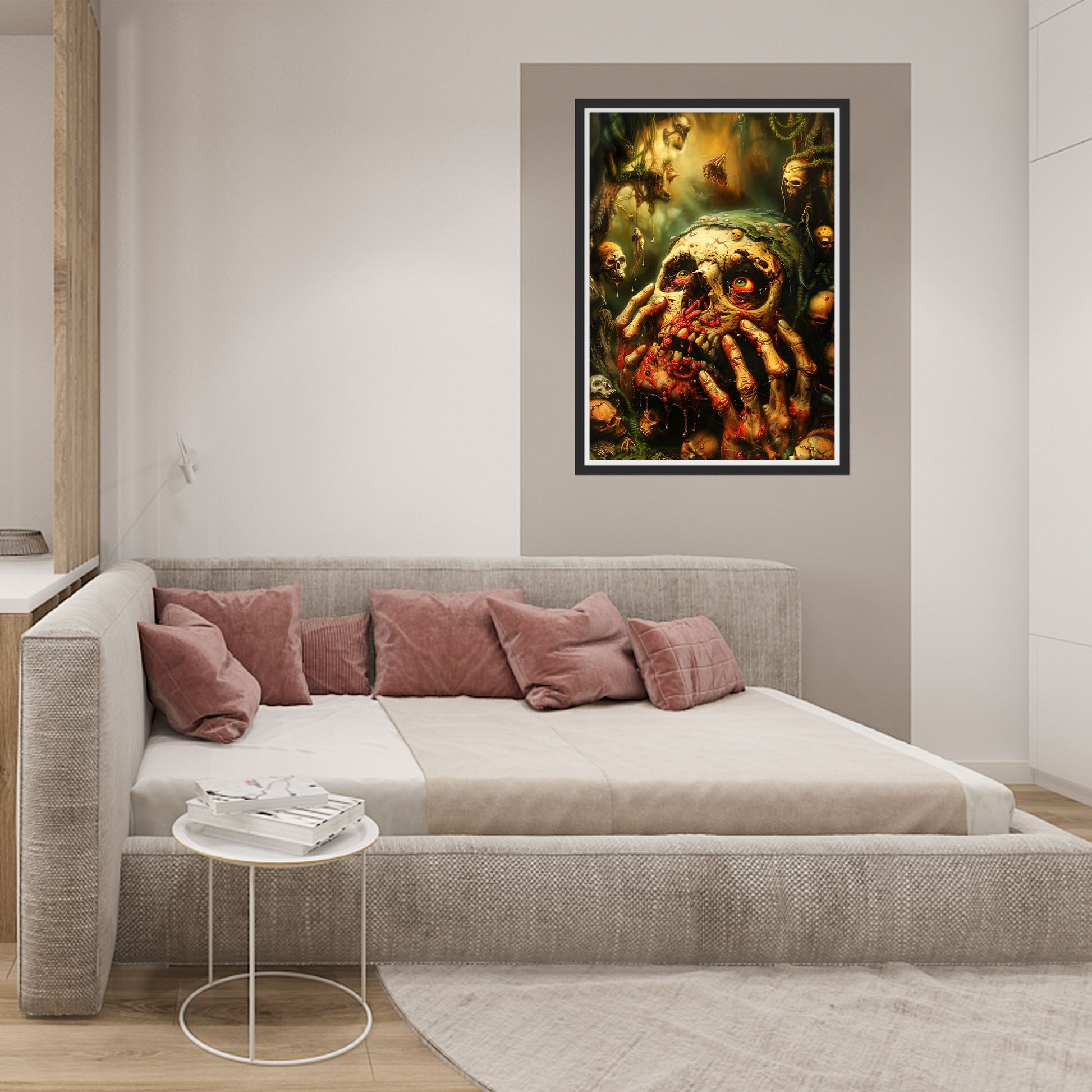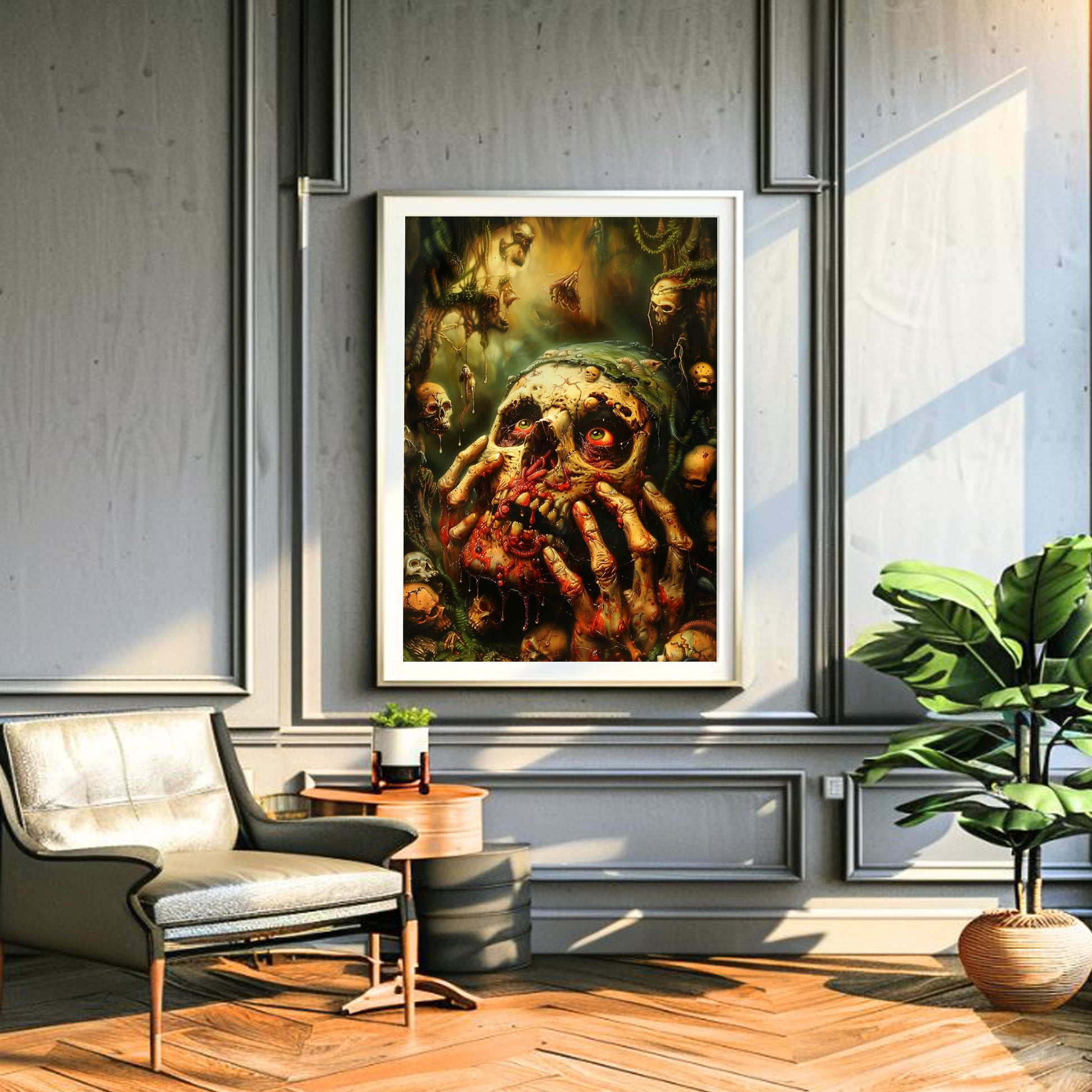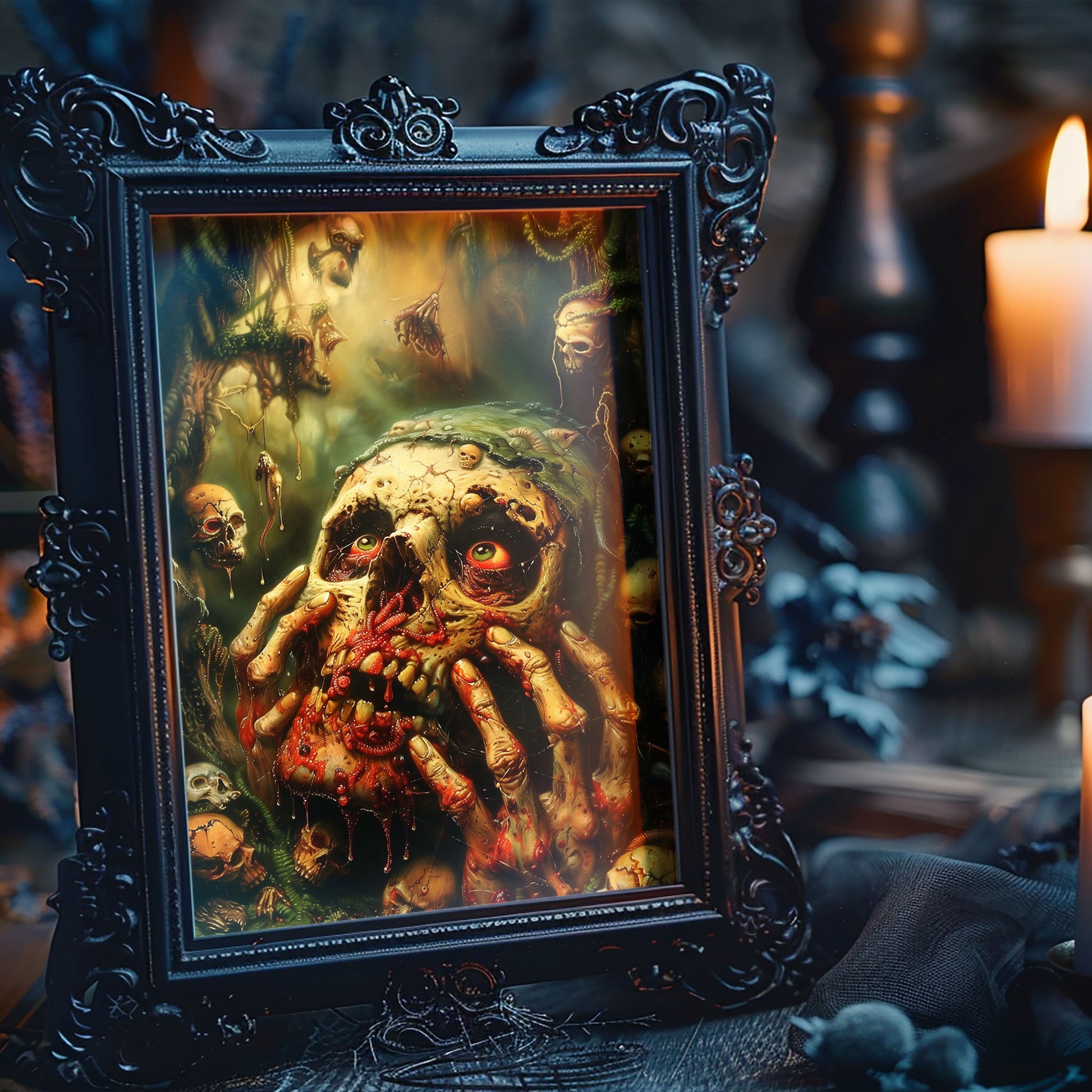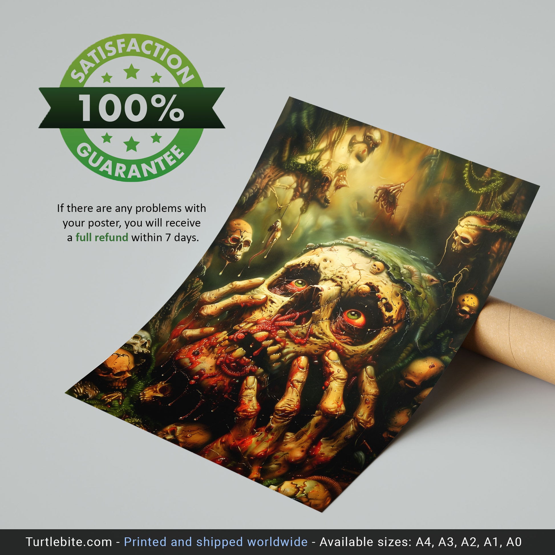 Eerie Weirdcore Grave Zombie Poster - Haunting Macabre Decor for Gothic Home