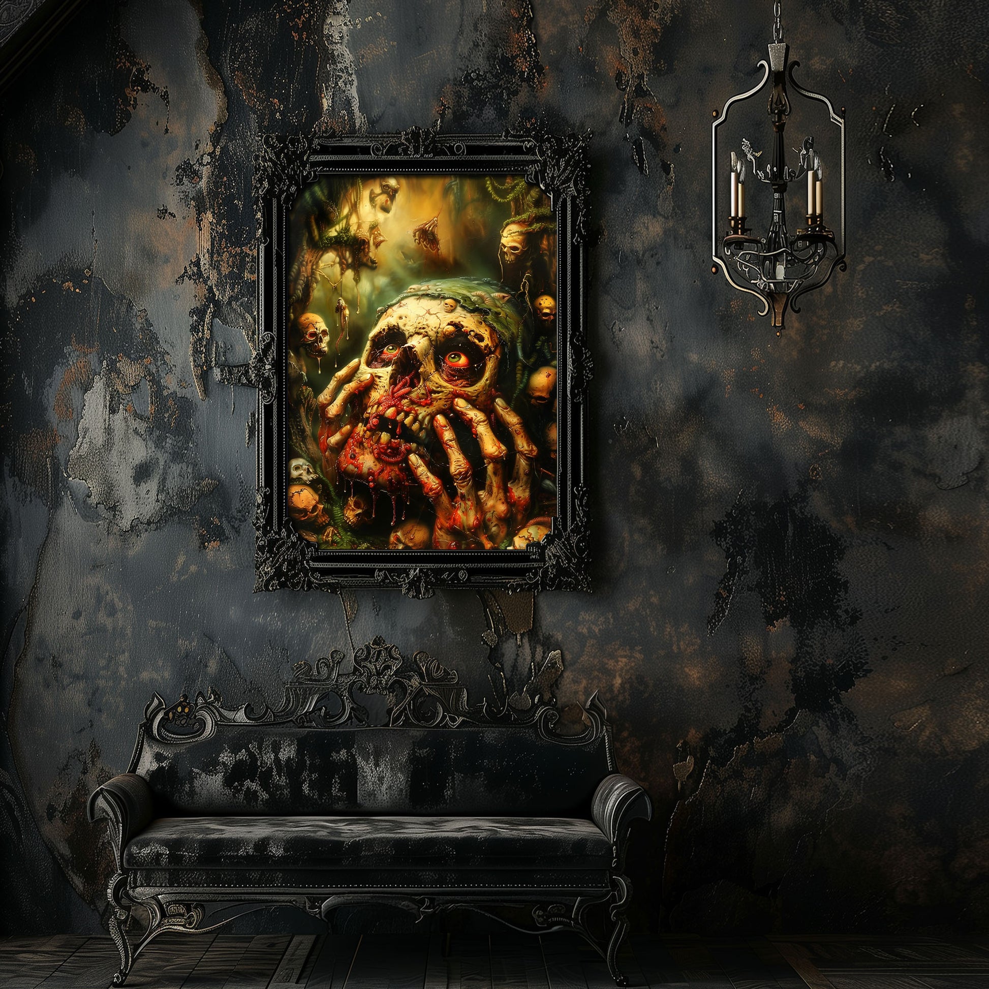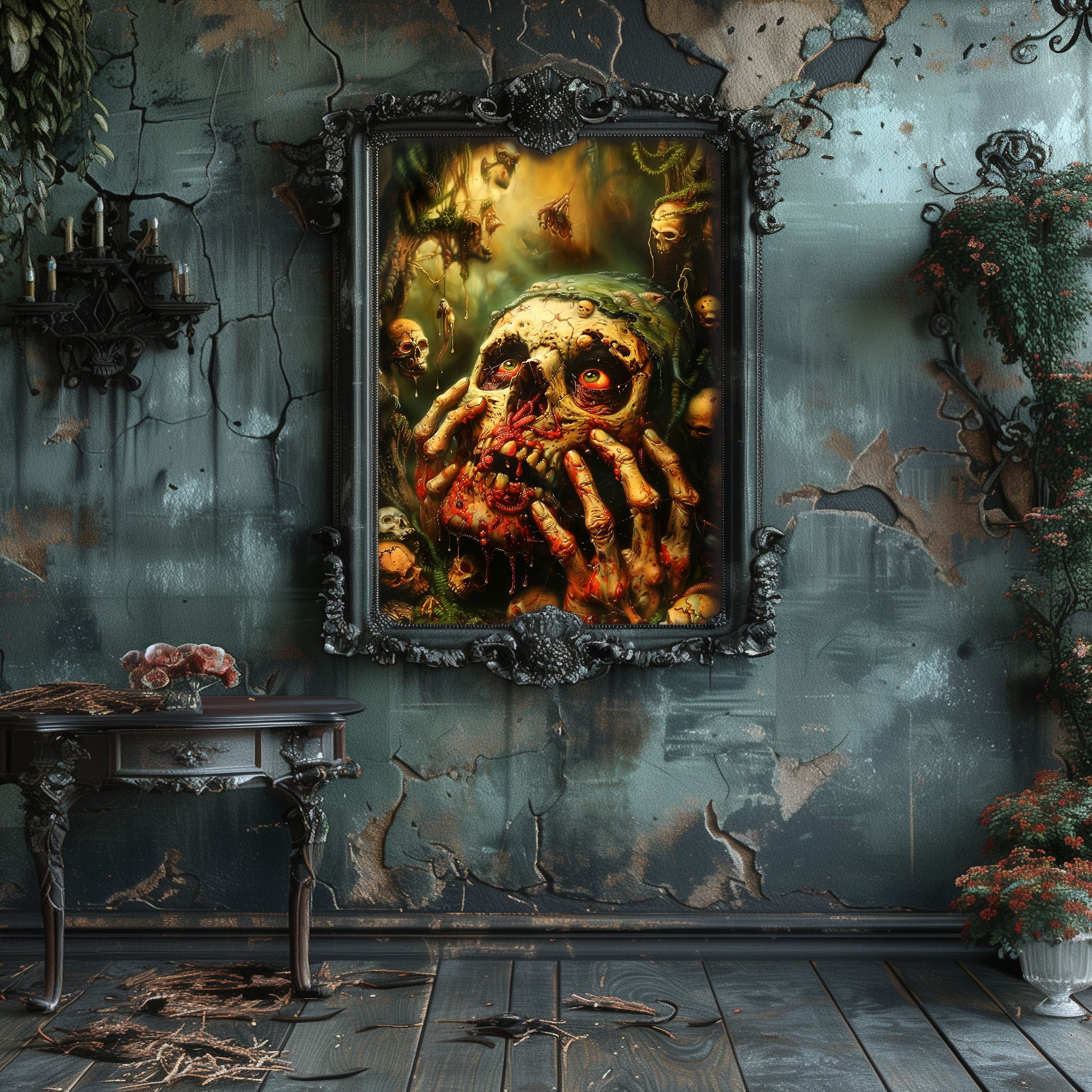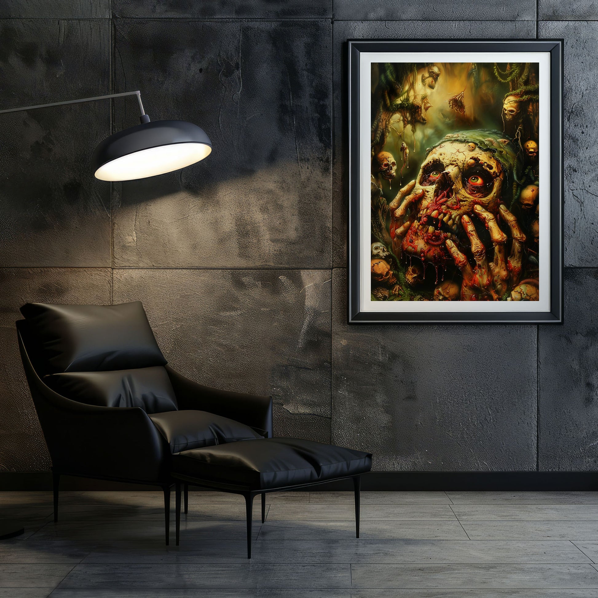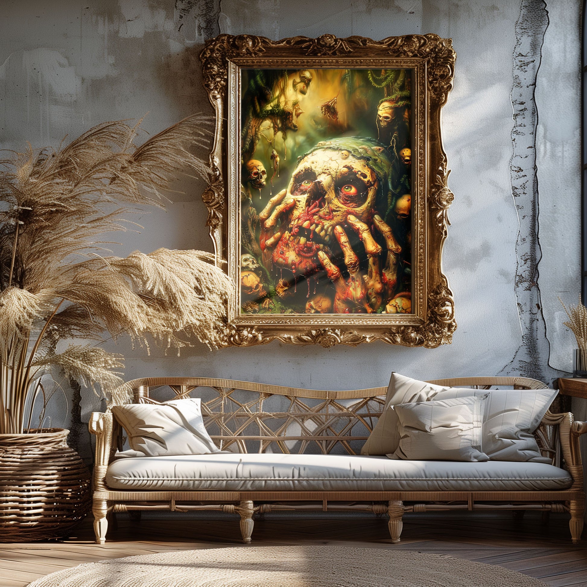 Eerie Weirdcore Grave Zombie Poster - Haunting Macabre Decor for Gothic Home
