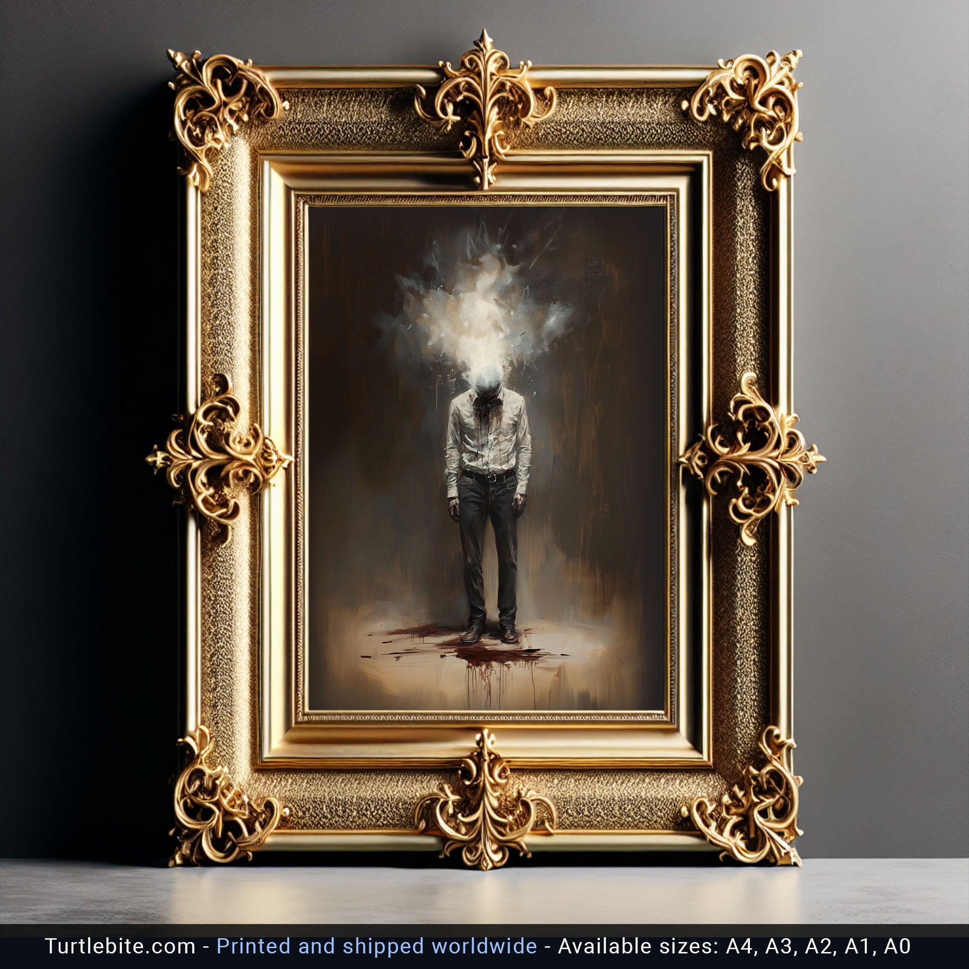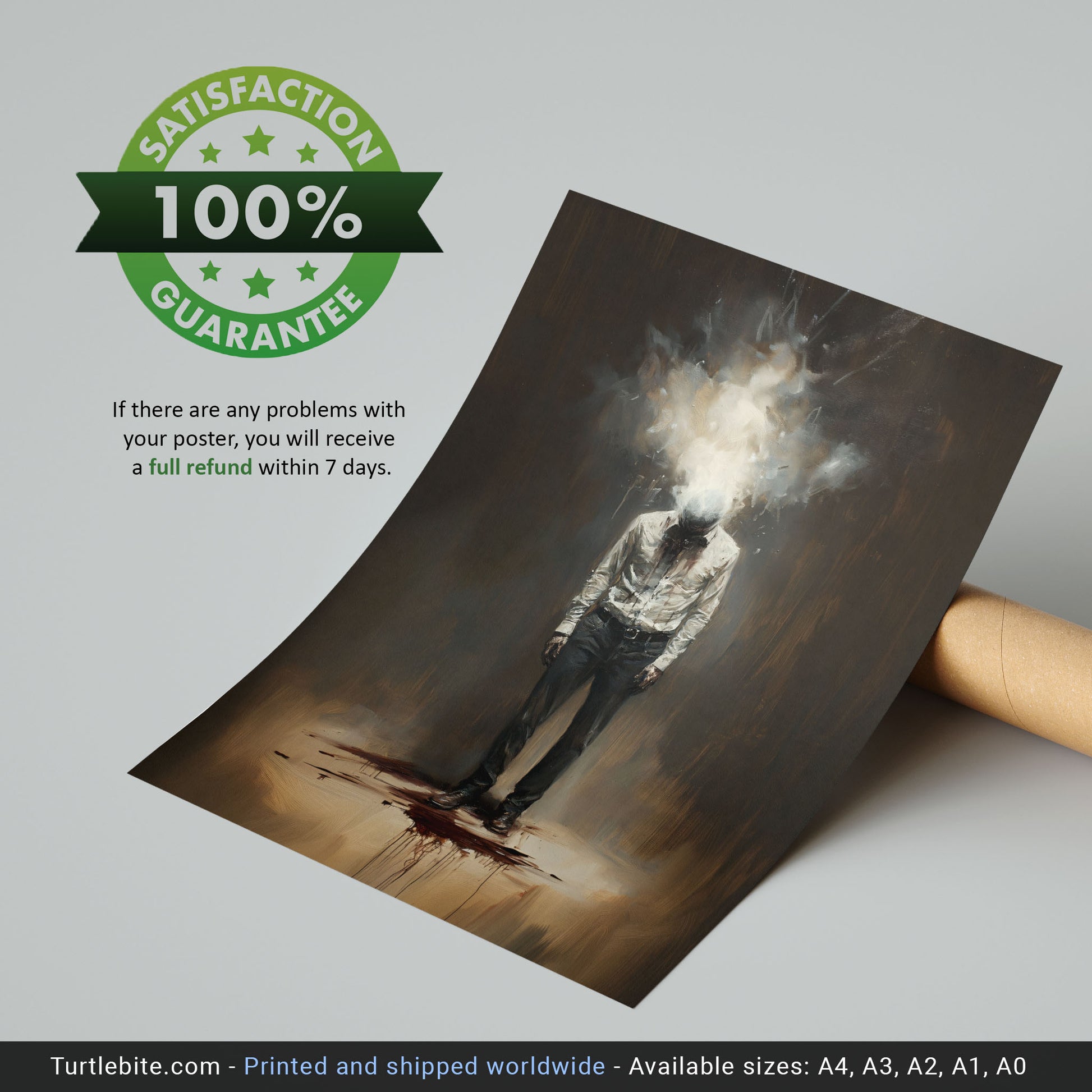 Add a bang to your décor with the Explosive Thoughts Painting Poster! Perfect for lovers of dark, moody vibes, this spooky, weird art piece is a conversation starter (and possibly a nightmare fuel). Warning: Side effects may include overthinking and sudden existential crises. Hang at your own risk!