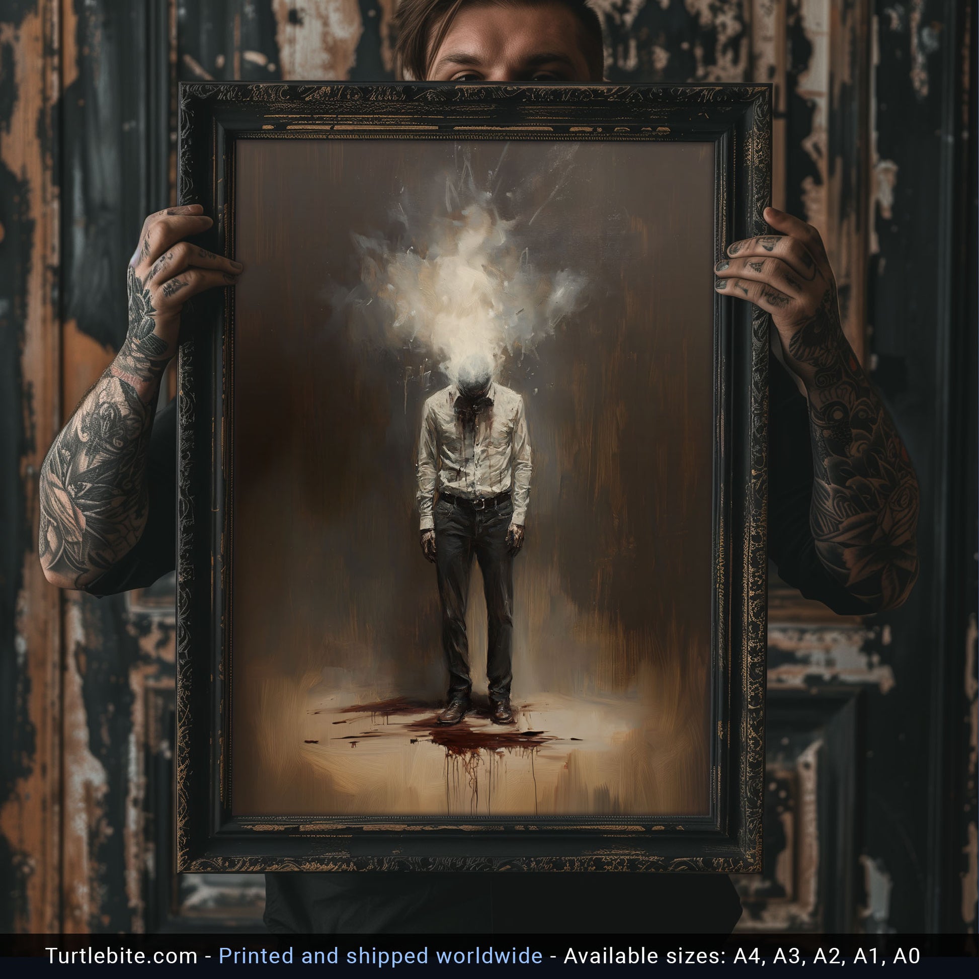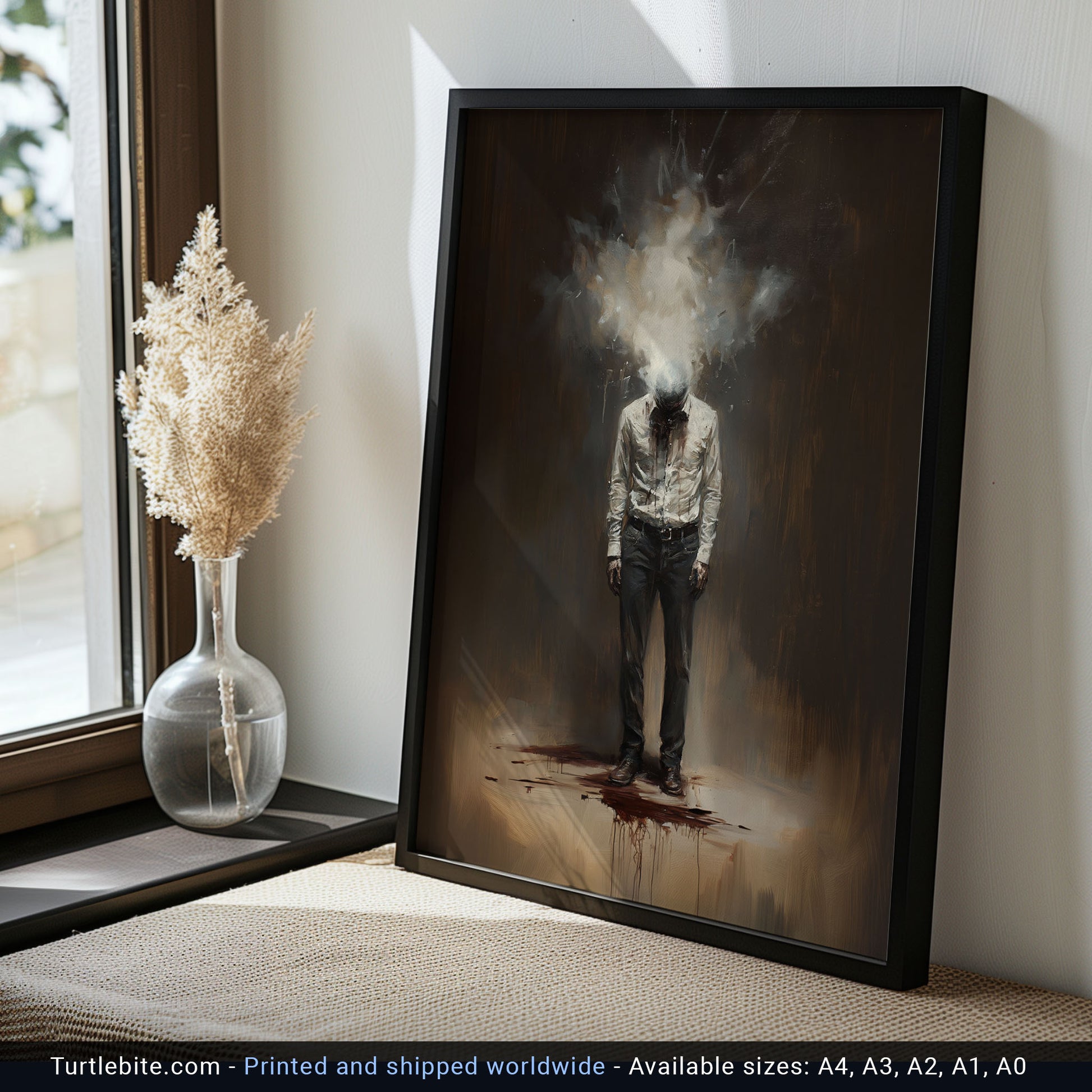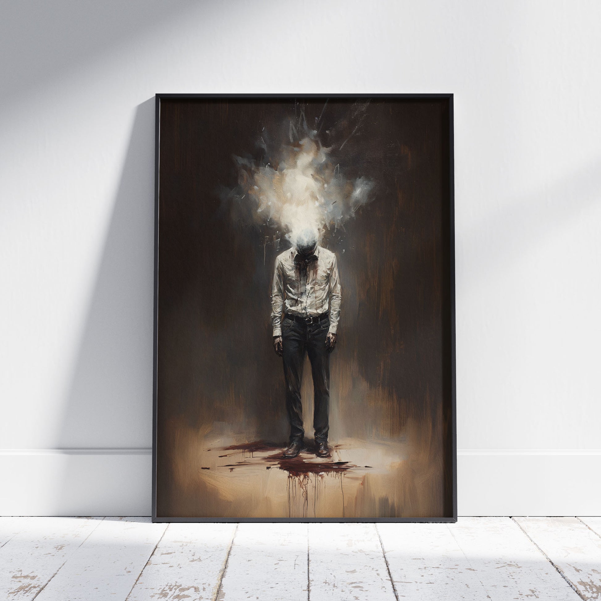 Explosive Thoughts Painting Poster, Dark Moody Wall Art, Weird Art Painting
