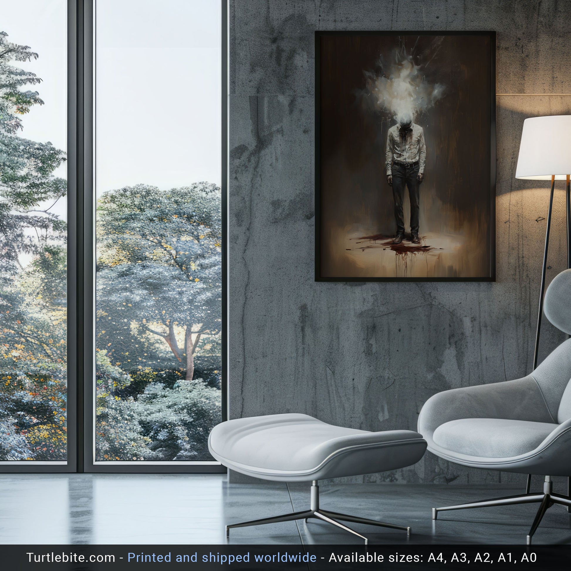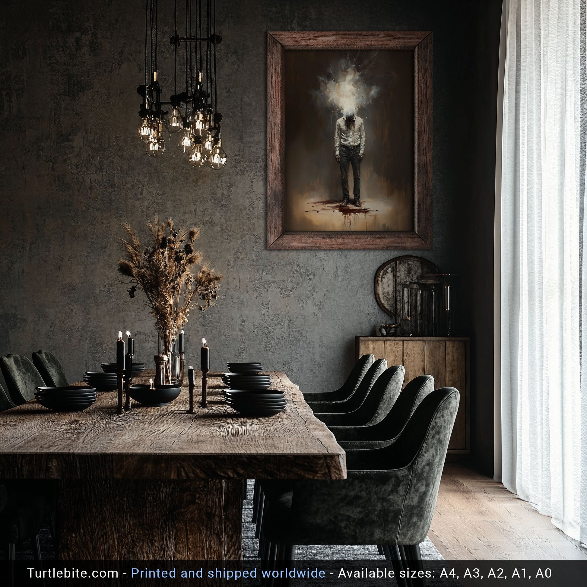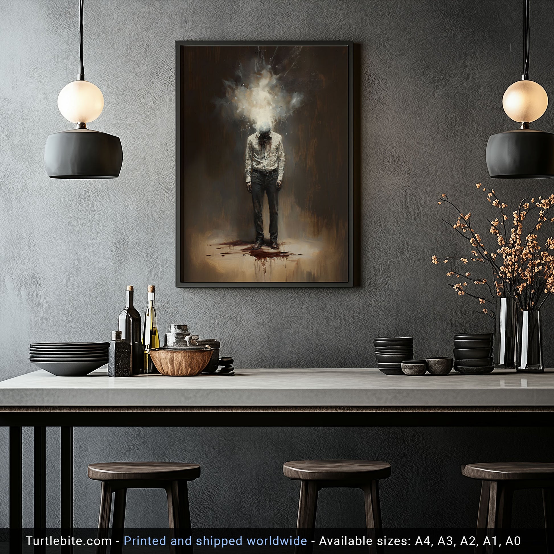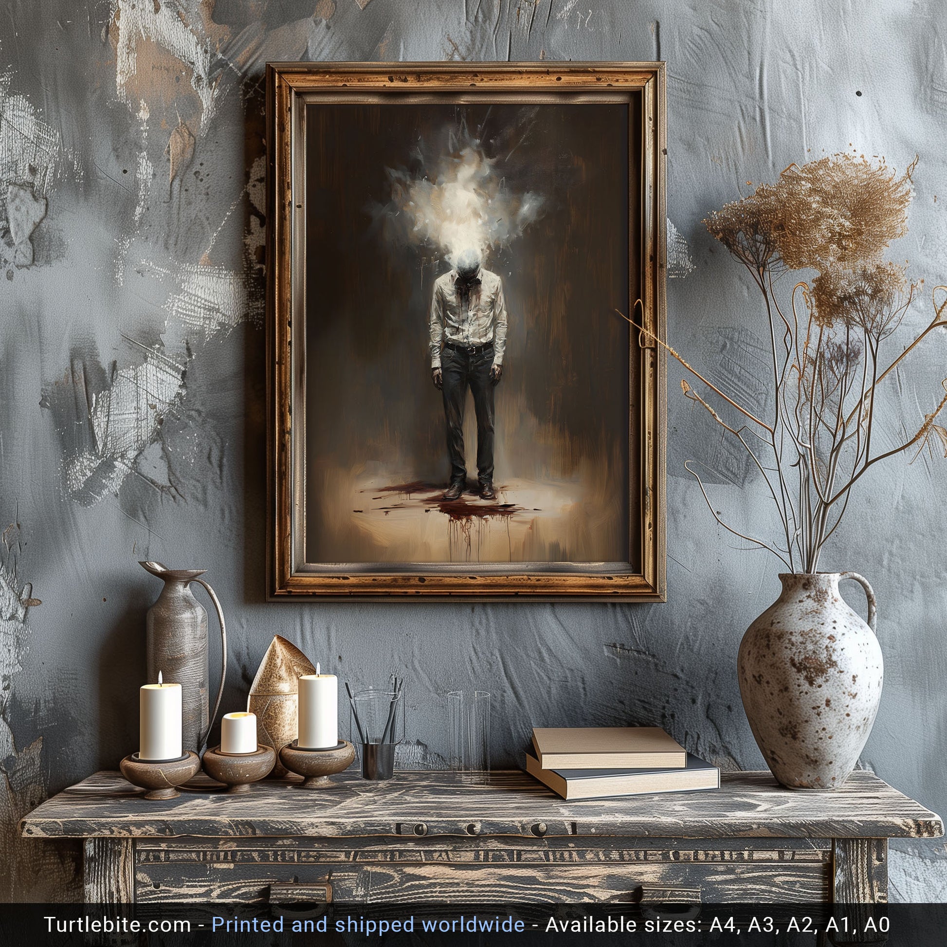 Explosive Thoughts Painting Poster, Dark Moody Wall Art, Weird Art Painting