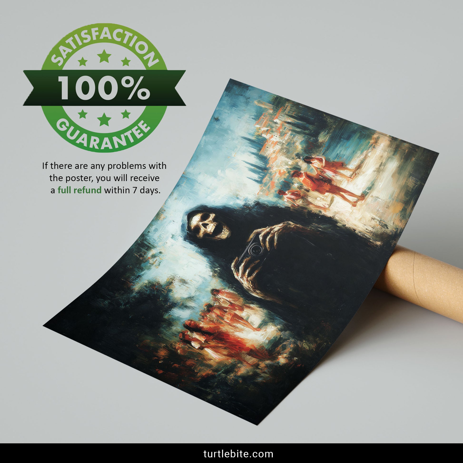 Ideal for your living room, bedroom, or anywhere you want guests to know you're intellectually sophisticated enough to laugh at death. Because if the Reaper himself stops for photos, maybe we're all taking life a little too seriously.