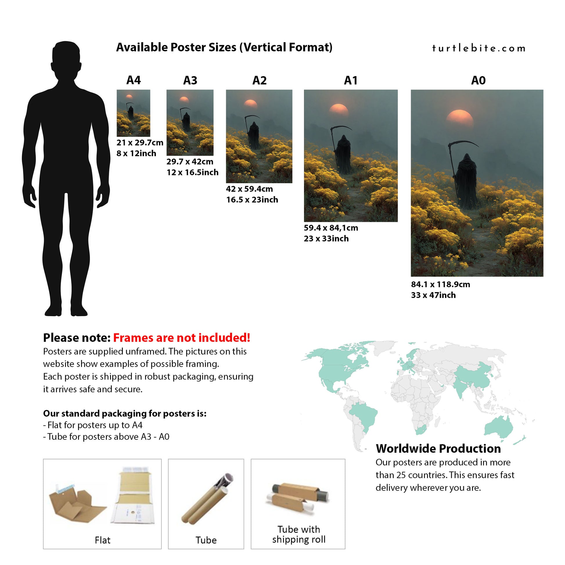 With a paper weight of 200 gsm/ 80 lb, it is perfect for long-lasting prints that are stunning to look at in all their vibrant glory. We use FSC-certified paper or equivalent certifications depending on regional availability. It’s better for the people and the planet. Each poster is shipped in robust packaging, ensuring it arrives safe and secure. Paper sizes may vary slightly by region. For the US and Canada, the measurement is in inches, while for the rest of the world, it is in centimeters. This product is carefully made especially for you as soon as you place an order, which is why it takes us a bit longer to deliver it to you.