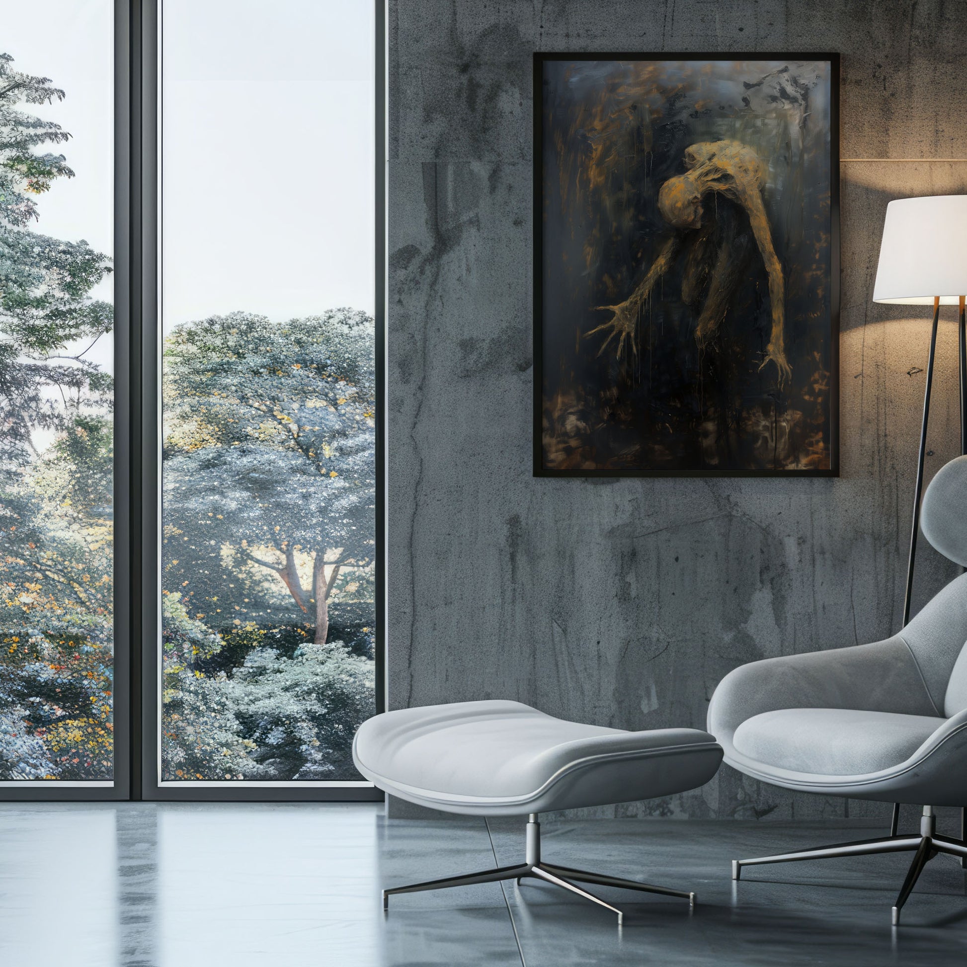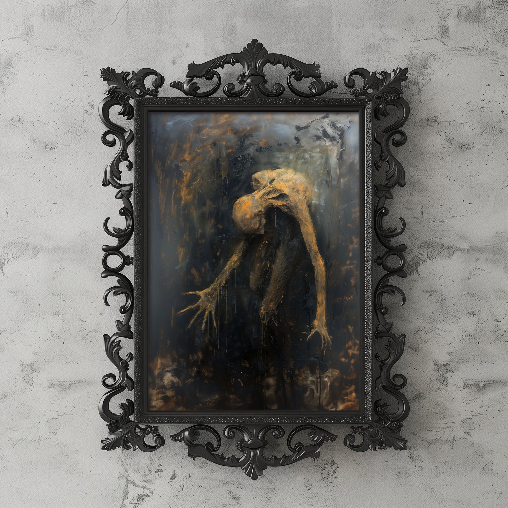 Gritty Scary Oil Painting of Bent Over Creature - Gothic Poster Print