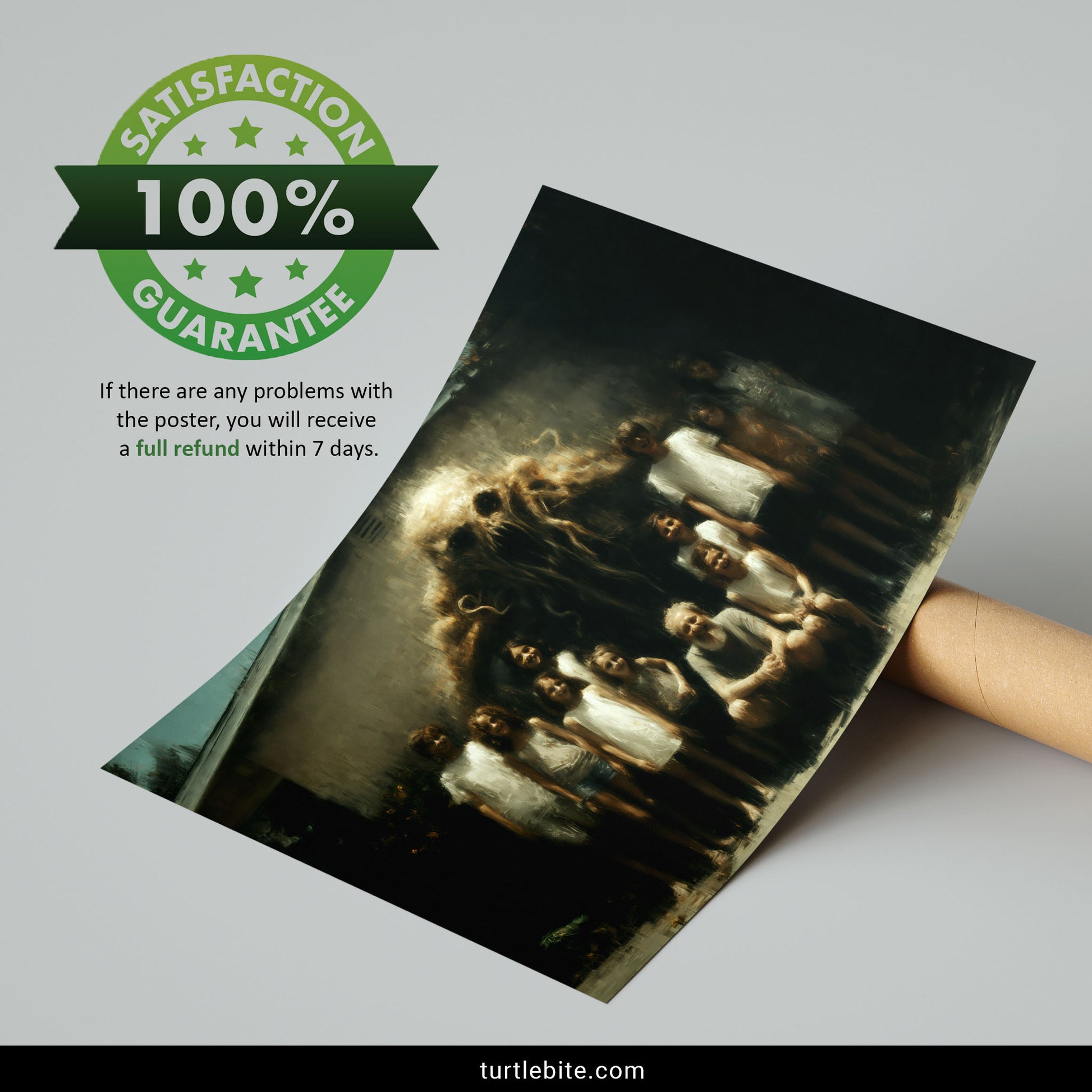 Printed on premium quality paper that does justice to every eerie detail and shadowy brushstroke. This isn't your grandmother's family portrait – unless your grandmother had very specific tastes in interdimensional companions.
