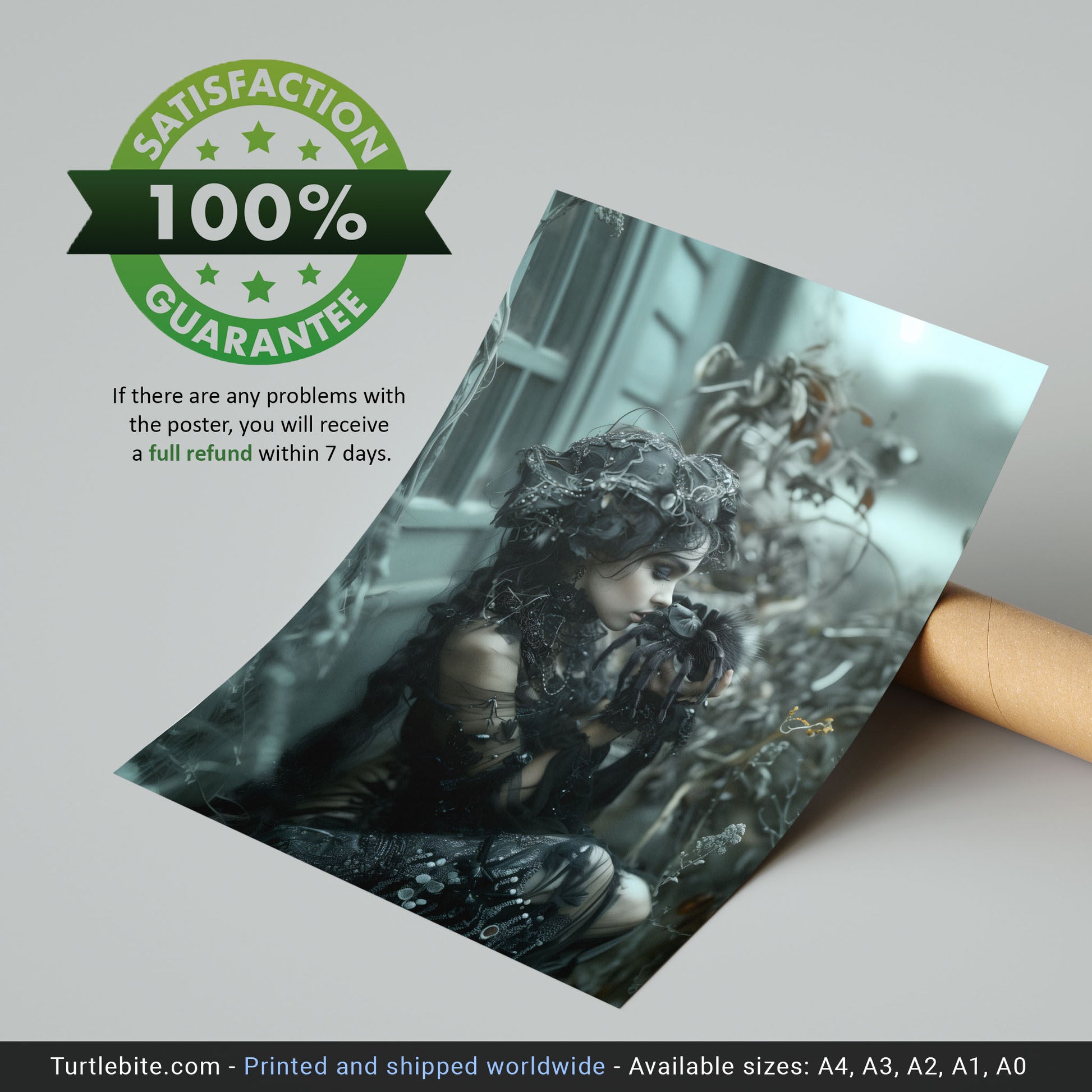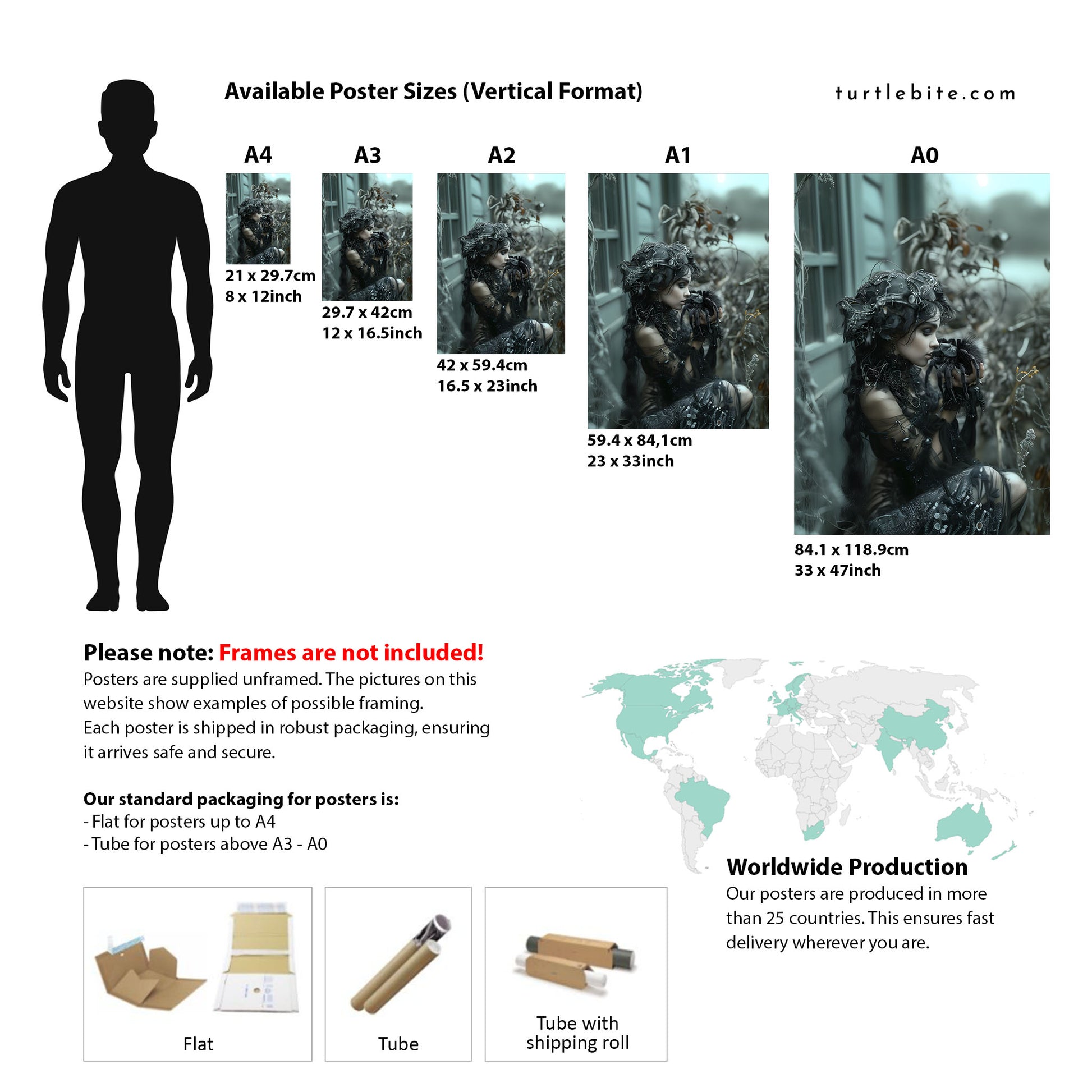 Different packaging depending on the size of the poster as well as the country where the item is produced and shipped to. Larger prints are carefully rolled and shipped in a tube, without framing included. Each of these products is crafted specifically for you upon ordering, so please allow a bit more time for delivery.