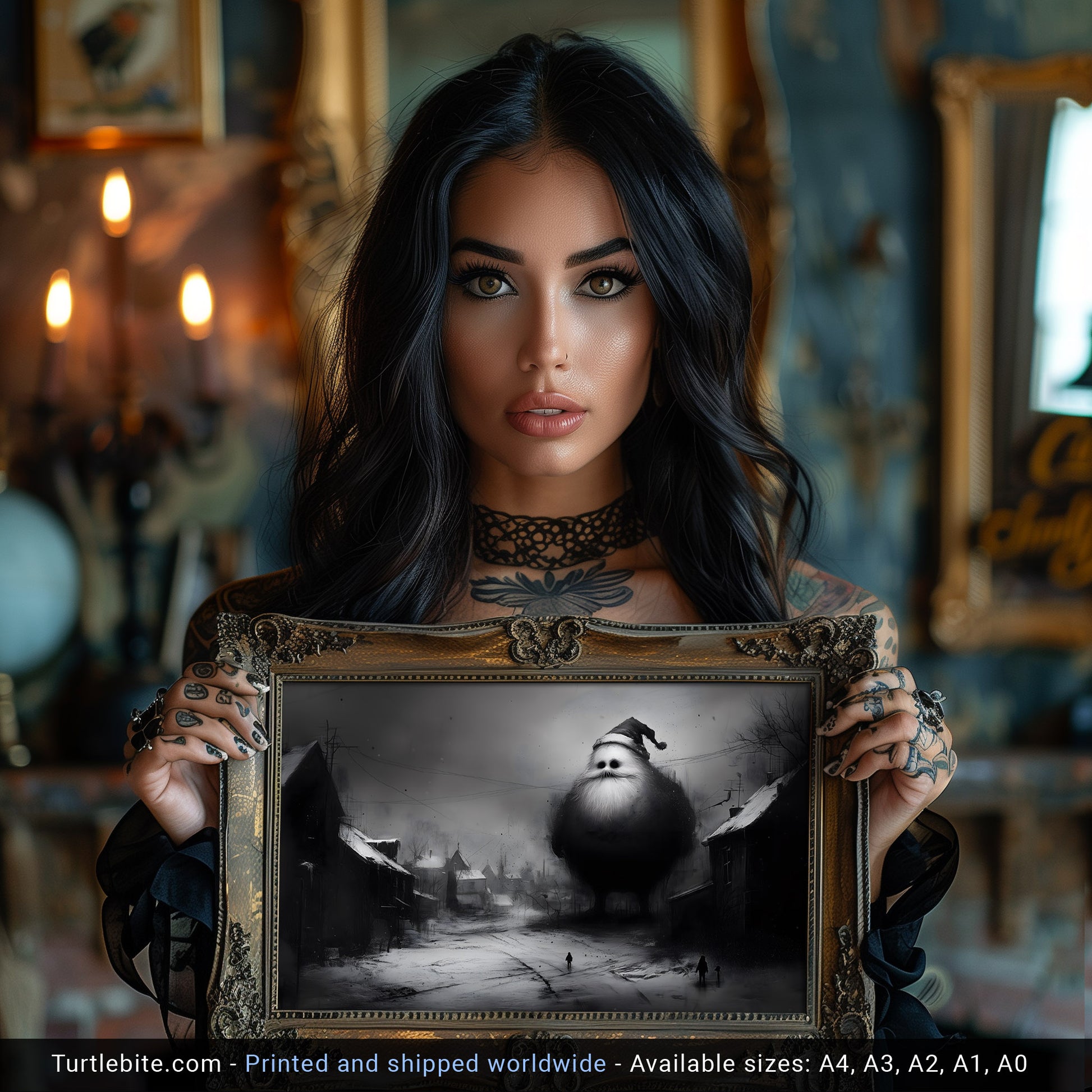 Embrace the unique charm of our mysterious lonely santa claus drawing poster. This melancholic christmas dark wall art captures the essence of a moody holiday spirit, perfect for those who appreciate the beauty in the bittersweet. Ideal for a cozy atmosphere, this striking painting adds a touch of mystery and depth to your space. Whether you’re decorating for the season or seeking an intriguing gift, this artwork is sure to evoke thought and conversation. Transform your walls with this captivating piece today!