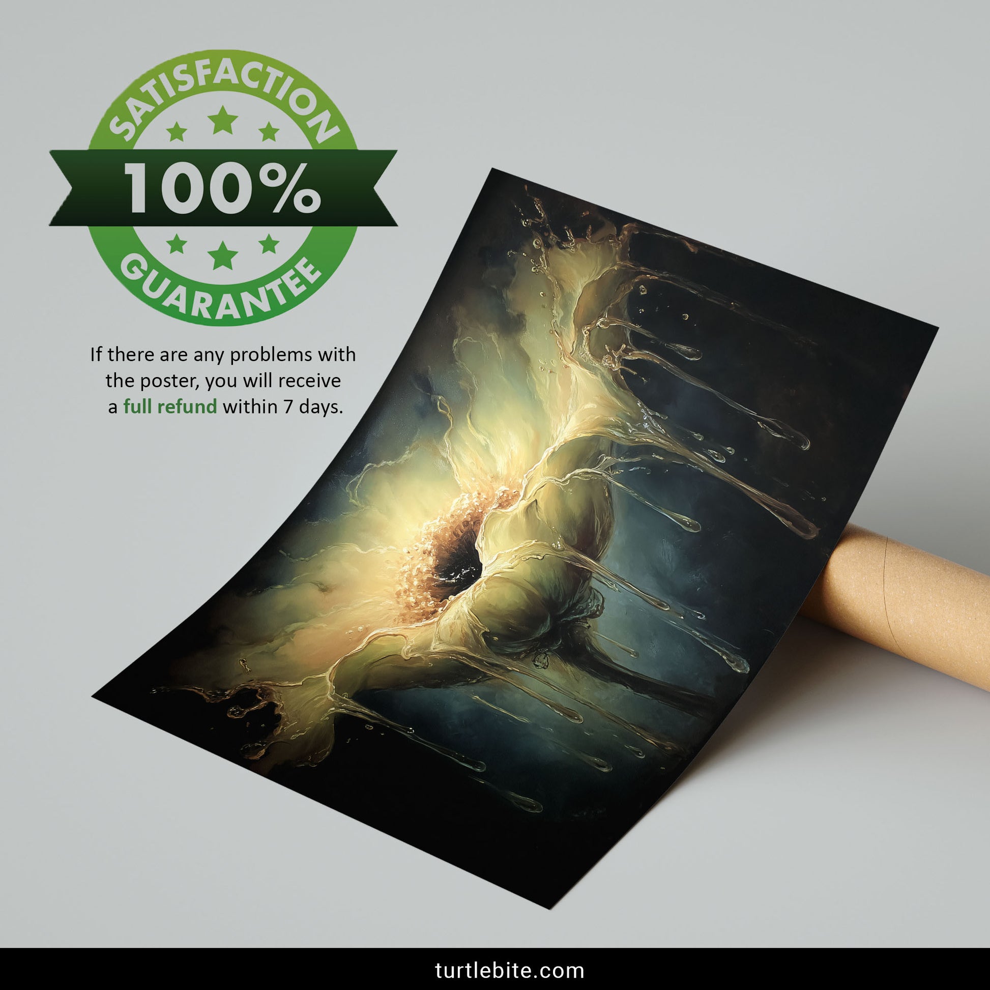 This melting flower art print captures that exquisite moment when beauty surrenders to entropy. It's not dying; it's transforming. Those luminous petals aren't wilting – they're actively defying solid-state physics while maintaining an unsettling elegance. The dark core radiates light like nature's last beautiful gasp, while everything around it drips into oblivion with the grace of a Salvador Dalí fever dream.