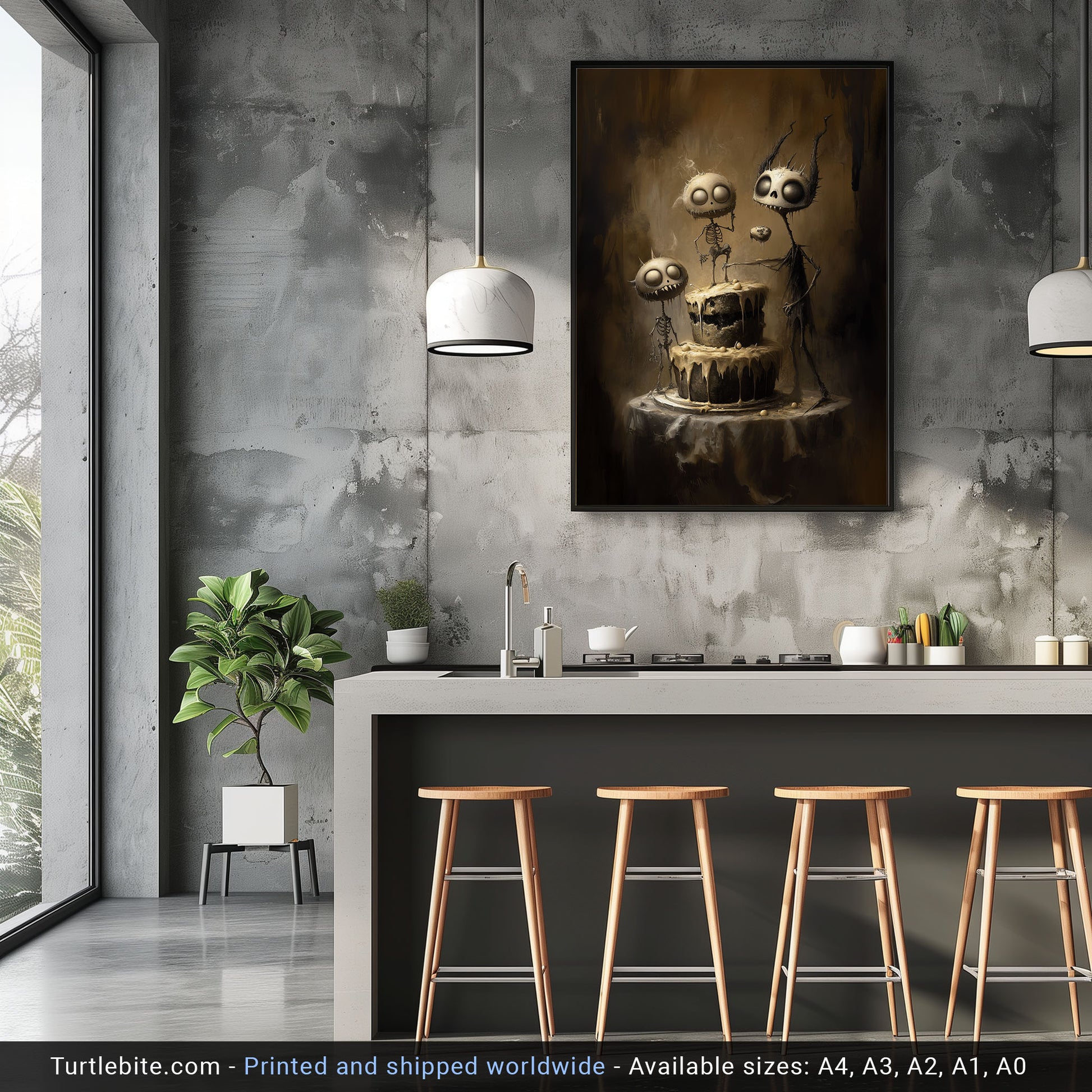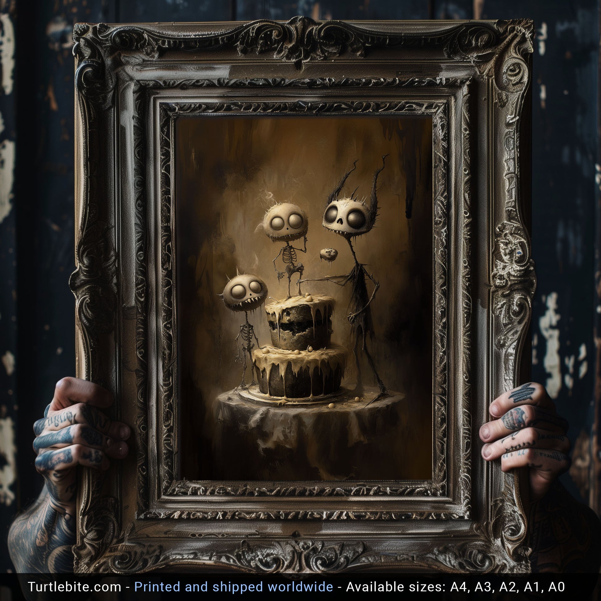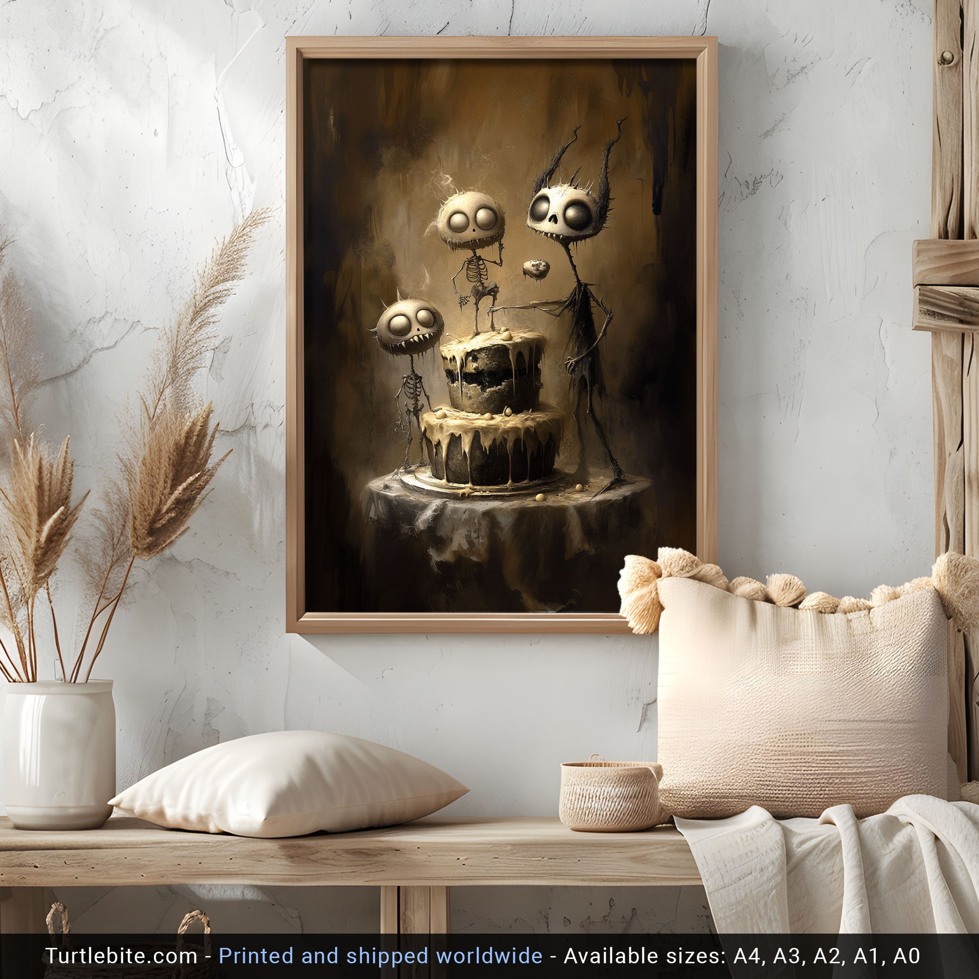 Monster's Cake Dark Wall Art Print – Creepy Cute Gothic Poster for Whimsical Decor