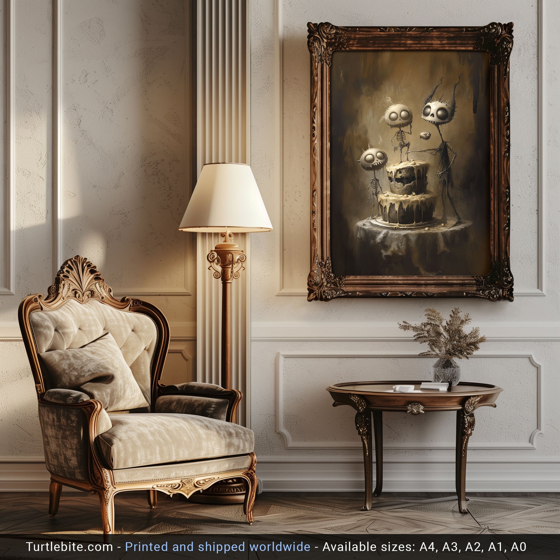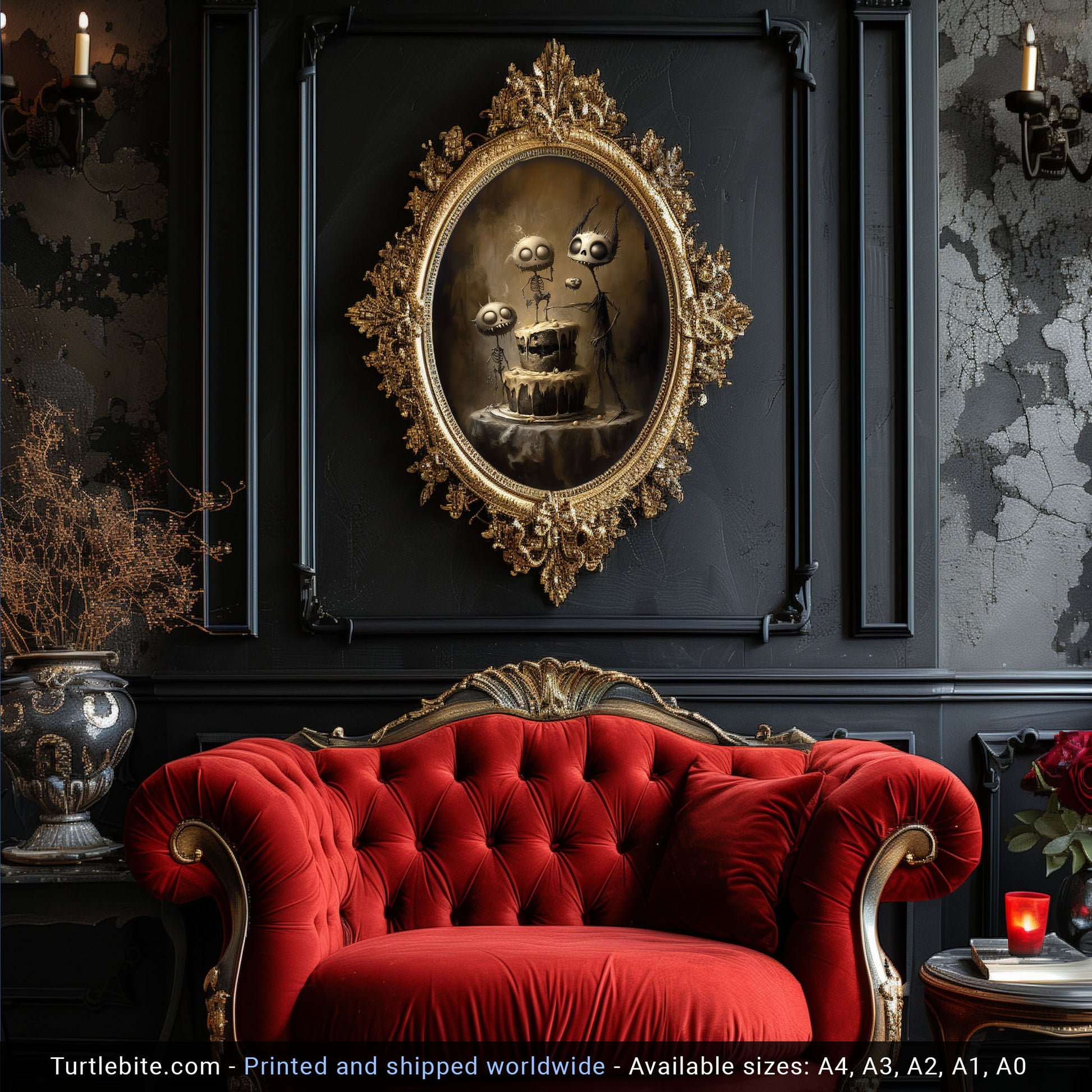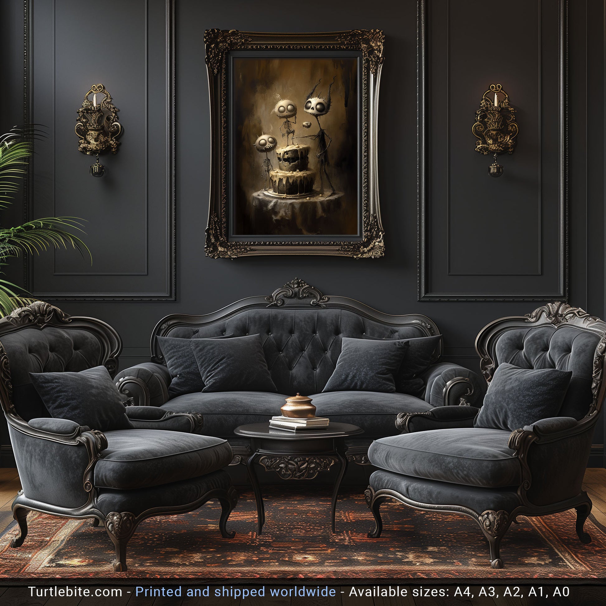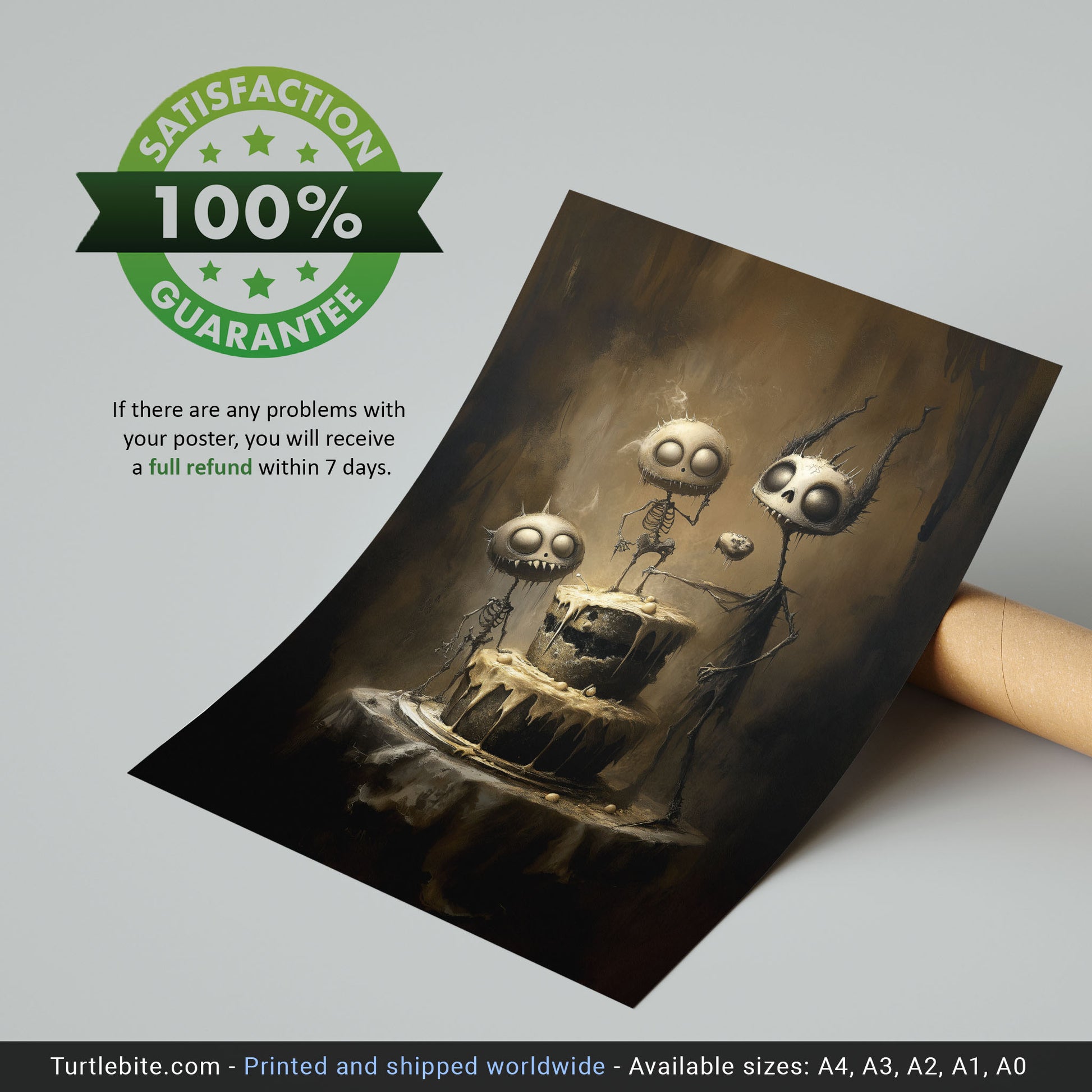 Monster's Cake Dark Wall Art Print – Creepy Cute Gothic Poster for Whimsical Decor