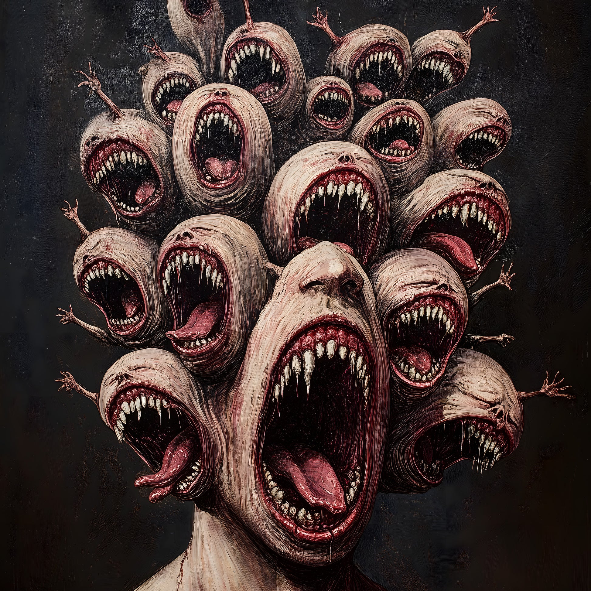 Moody Multi-Headed Monster Print - Creepy Dark Art Poster - Surreal Gory Wall Art