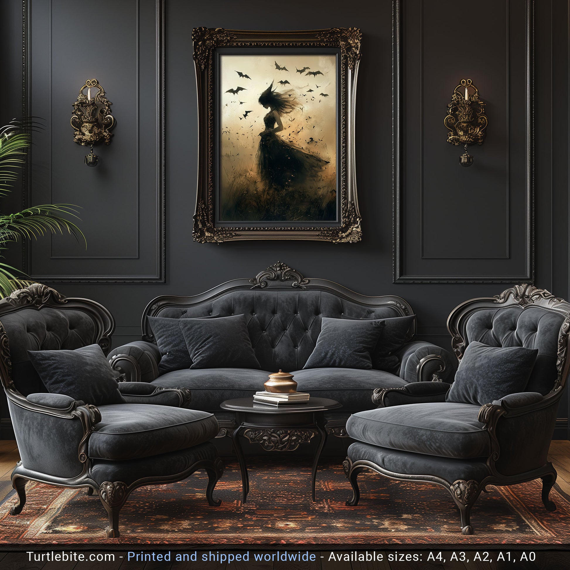 Whether you’re decorating for Halloween or simply adore dark, feminine energy and enchanted aesthetics, this print makes a bold statement on any wall. Perfect for bedrooms, reading nooks, altars, or witchy galleries.