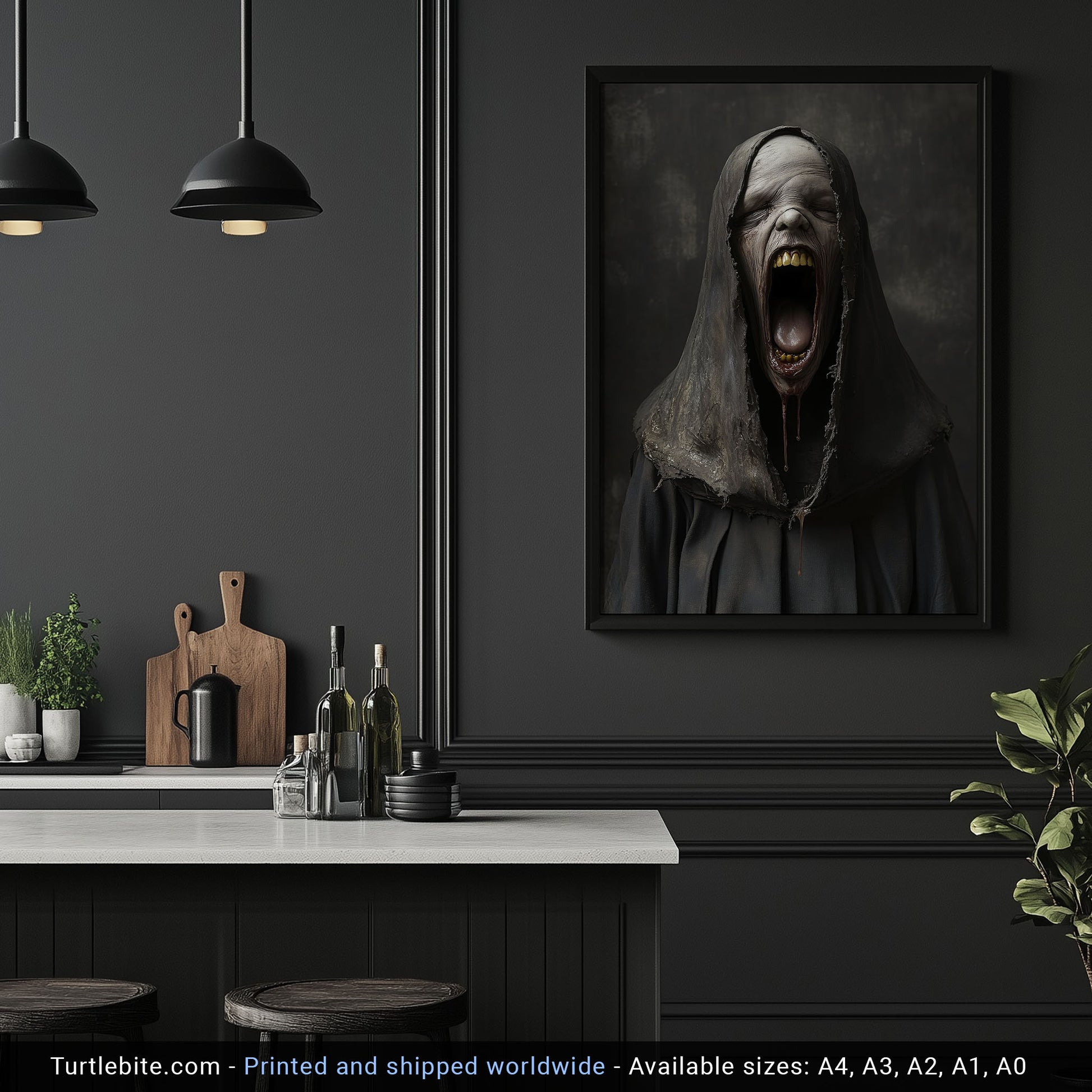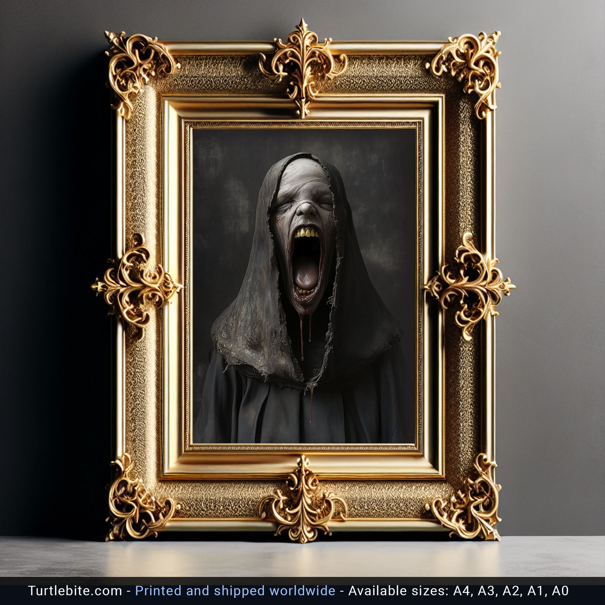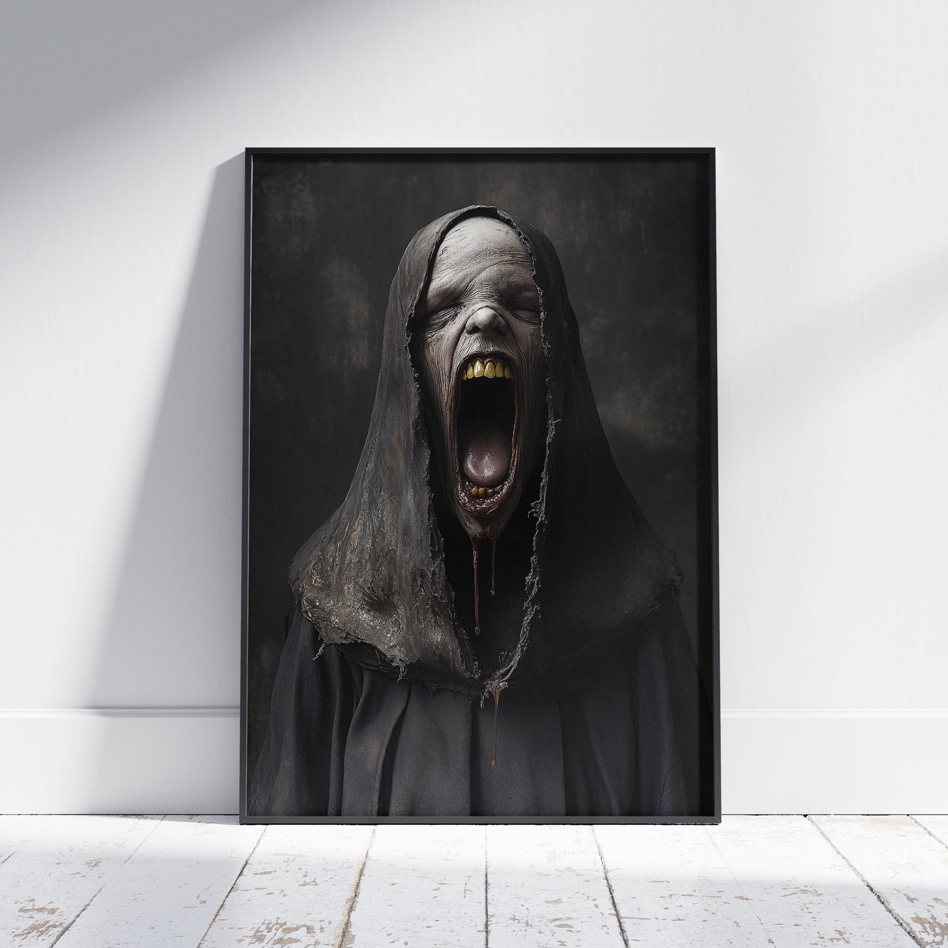 Screaming Monk Painting Poster, Medieval Oil Paintings Prints, Dark Moody Artwork, Bizarre Wall Art, Horror Gifts
