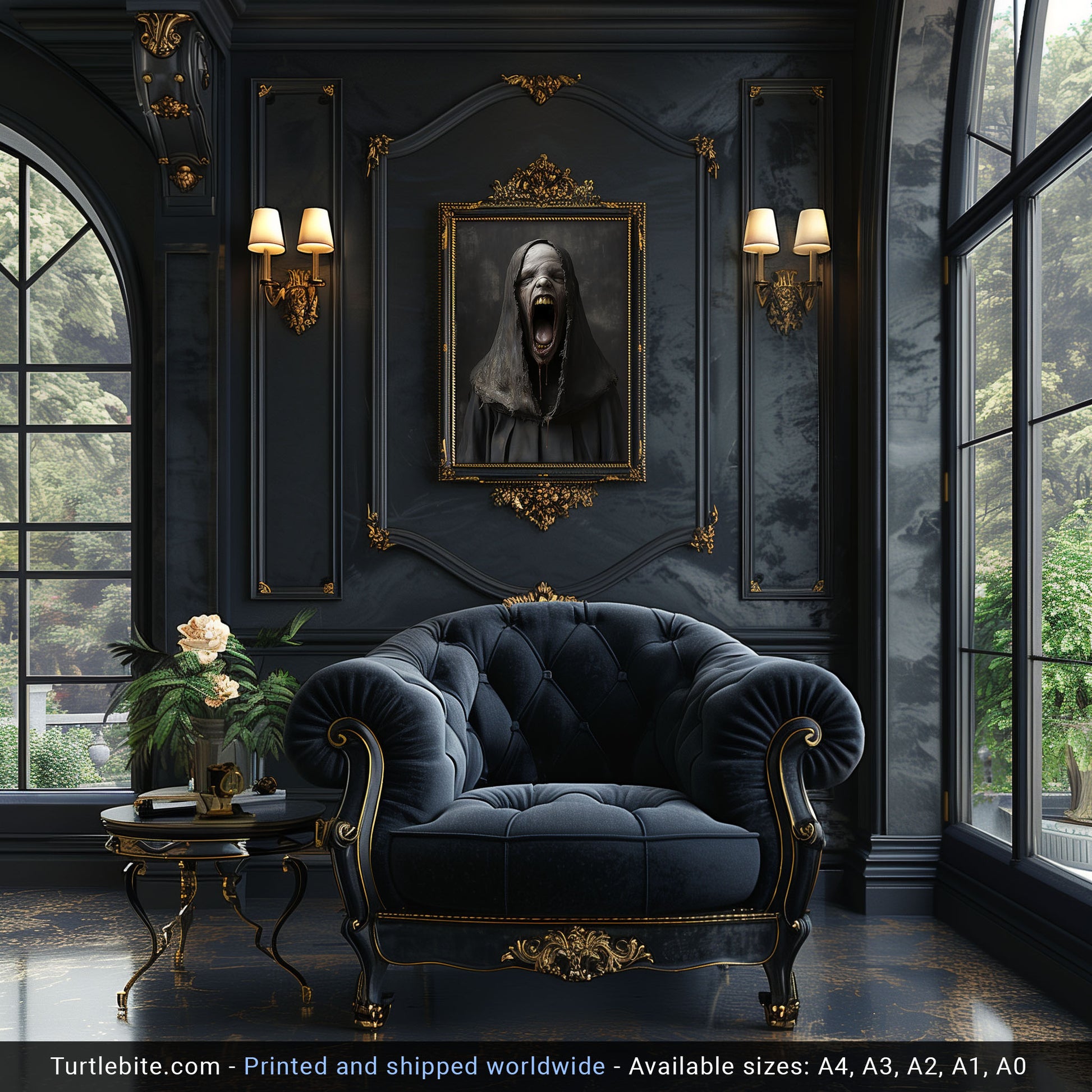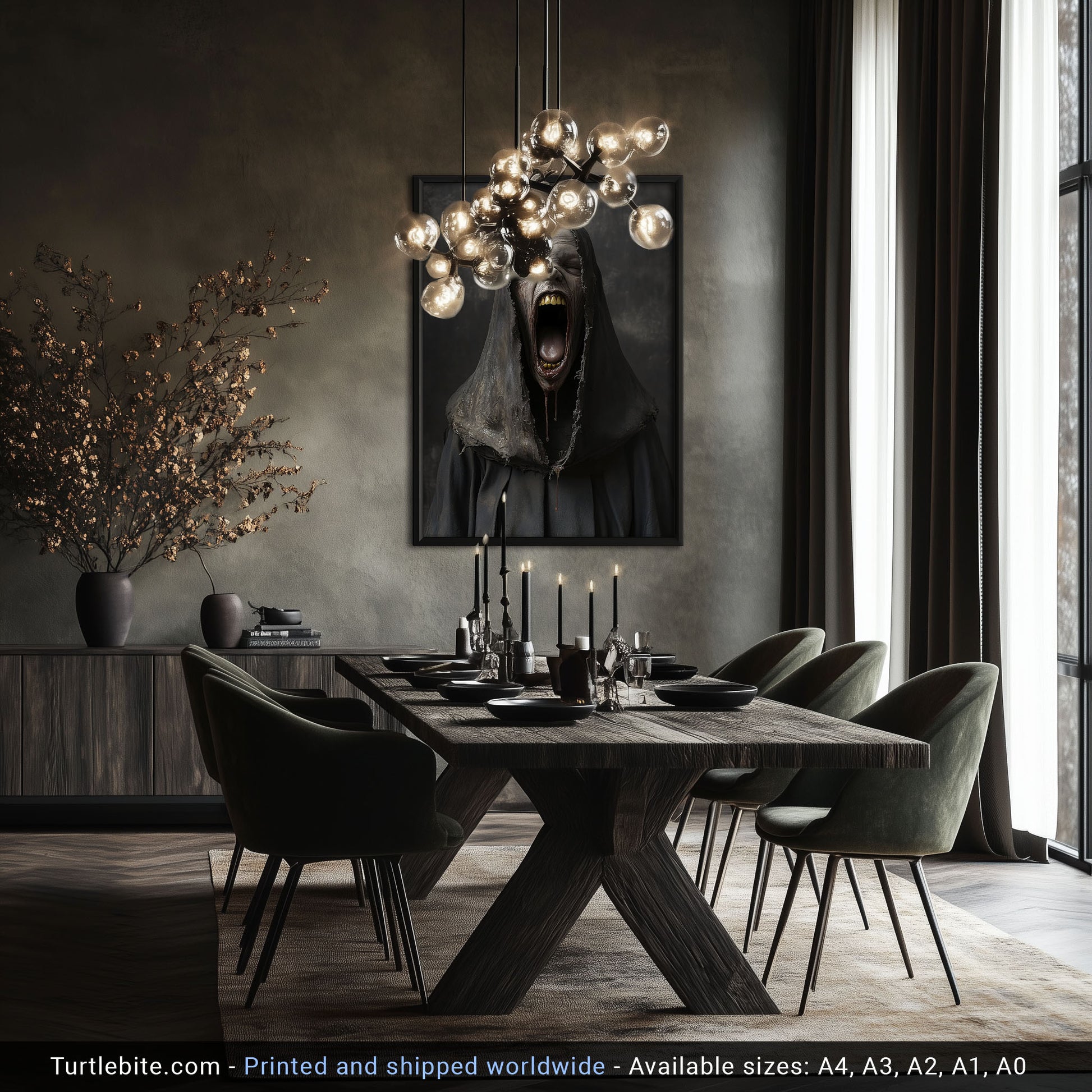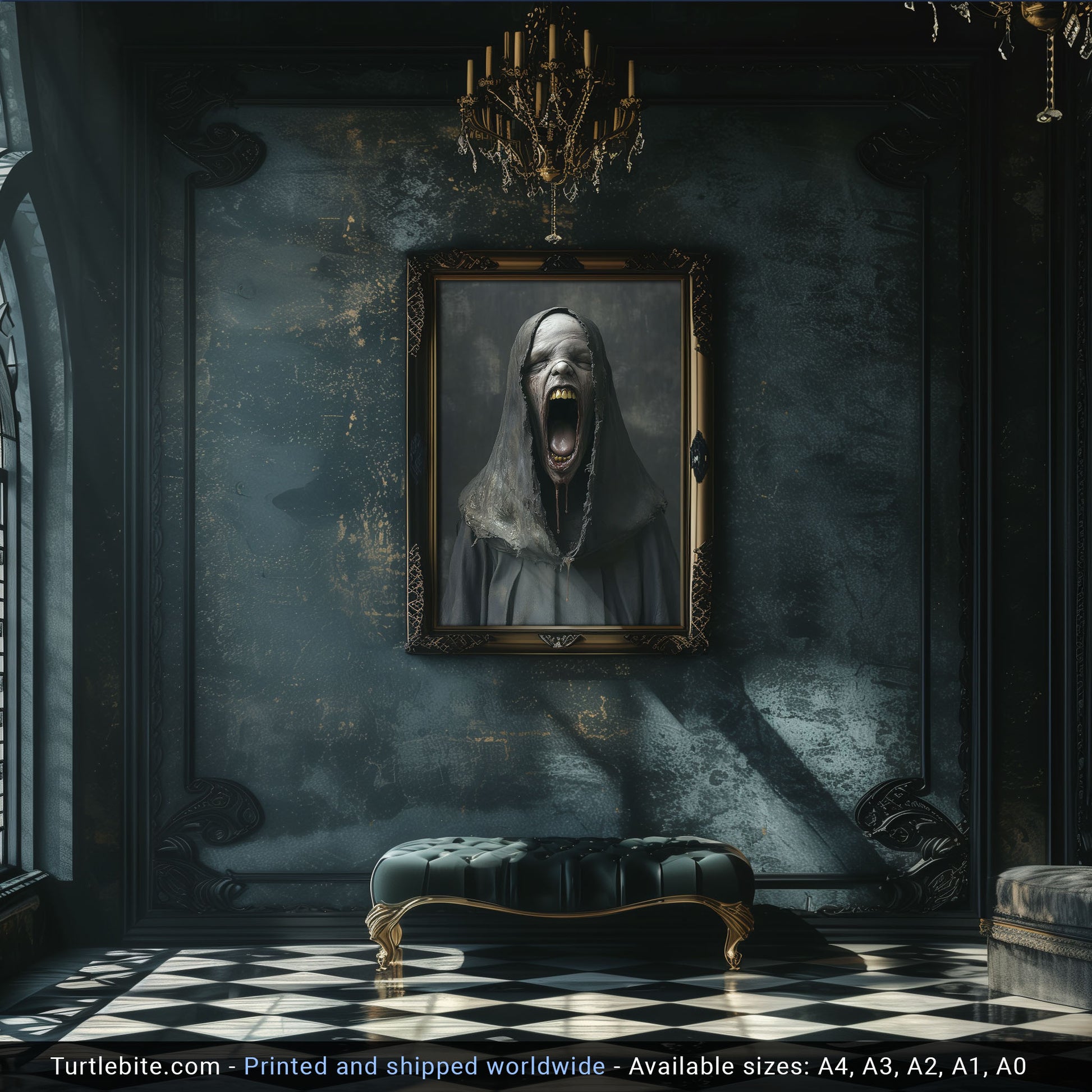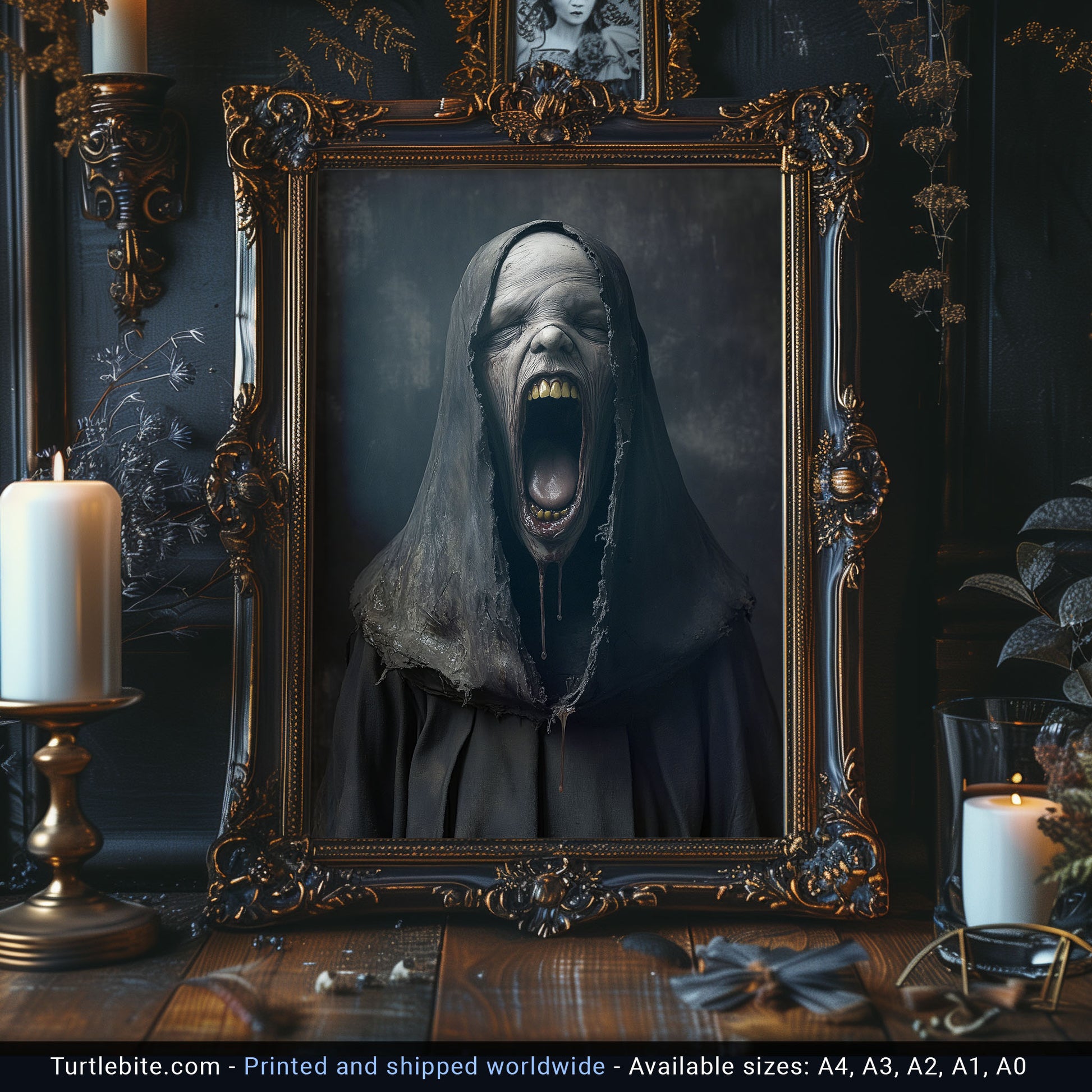 Screaming Monk Painting Poster, Medieval Oil Paintings Prints, Dark Moody Artwork, Bizarre Wall Art, Horror Gifts