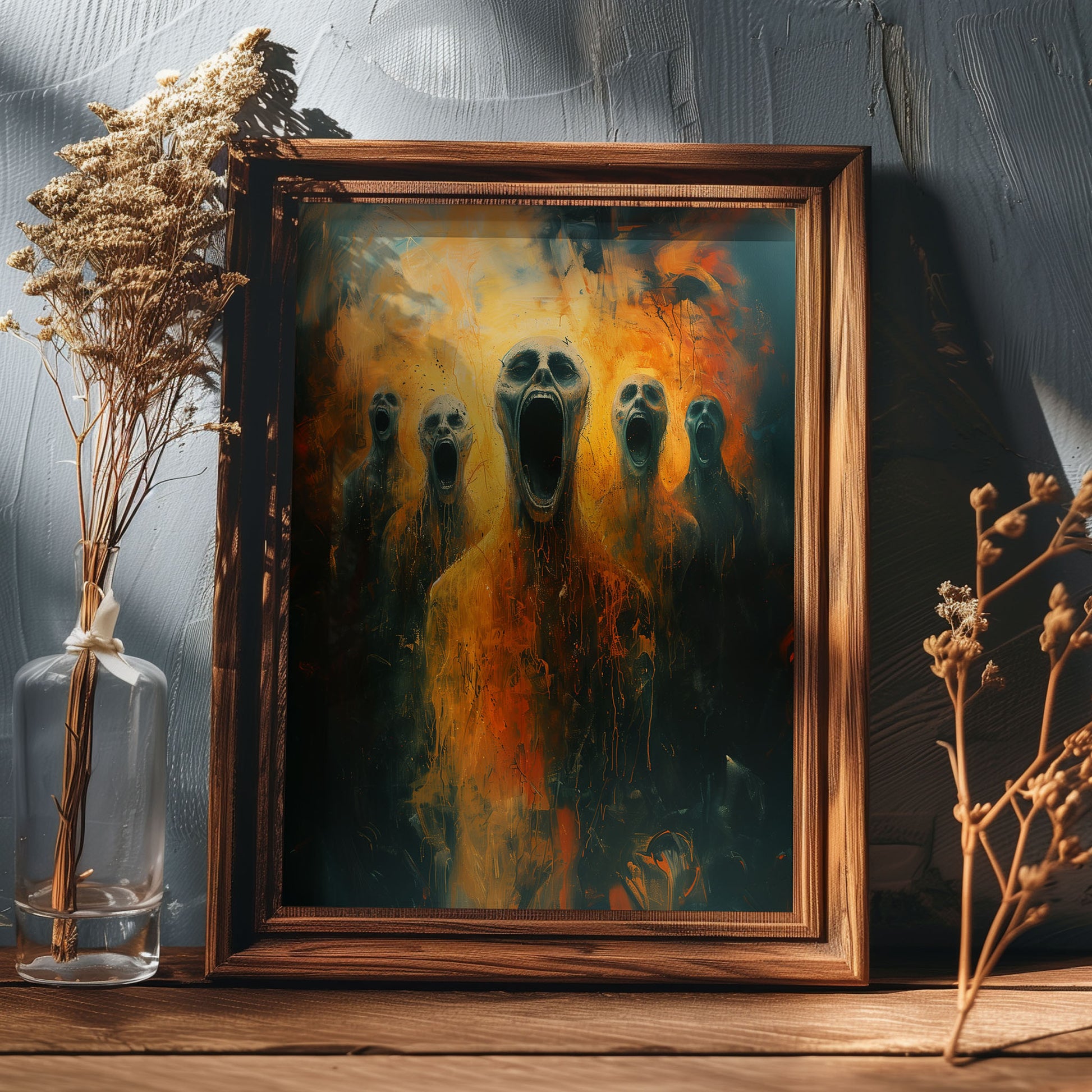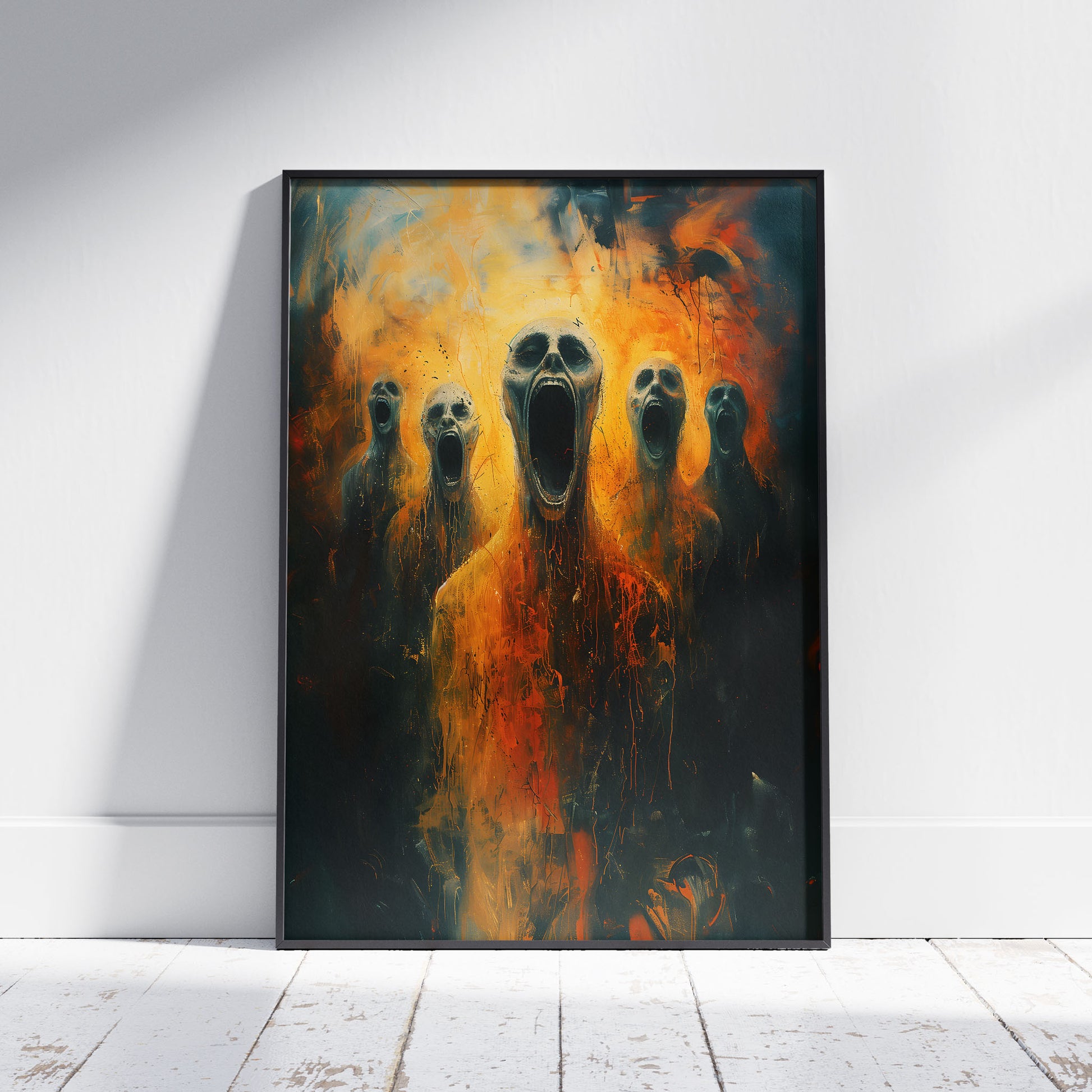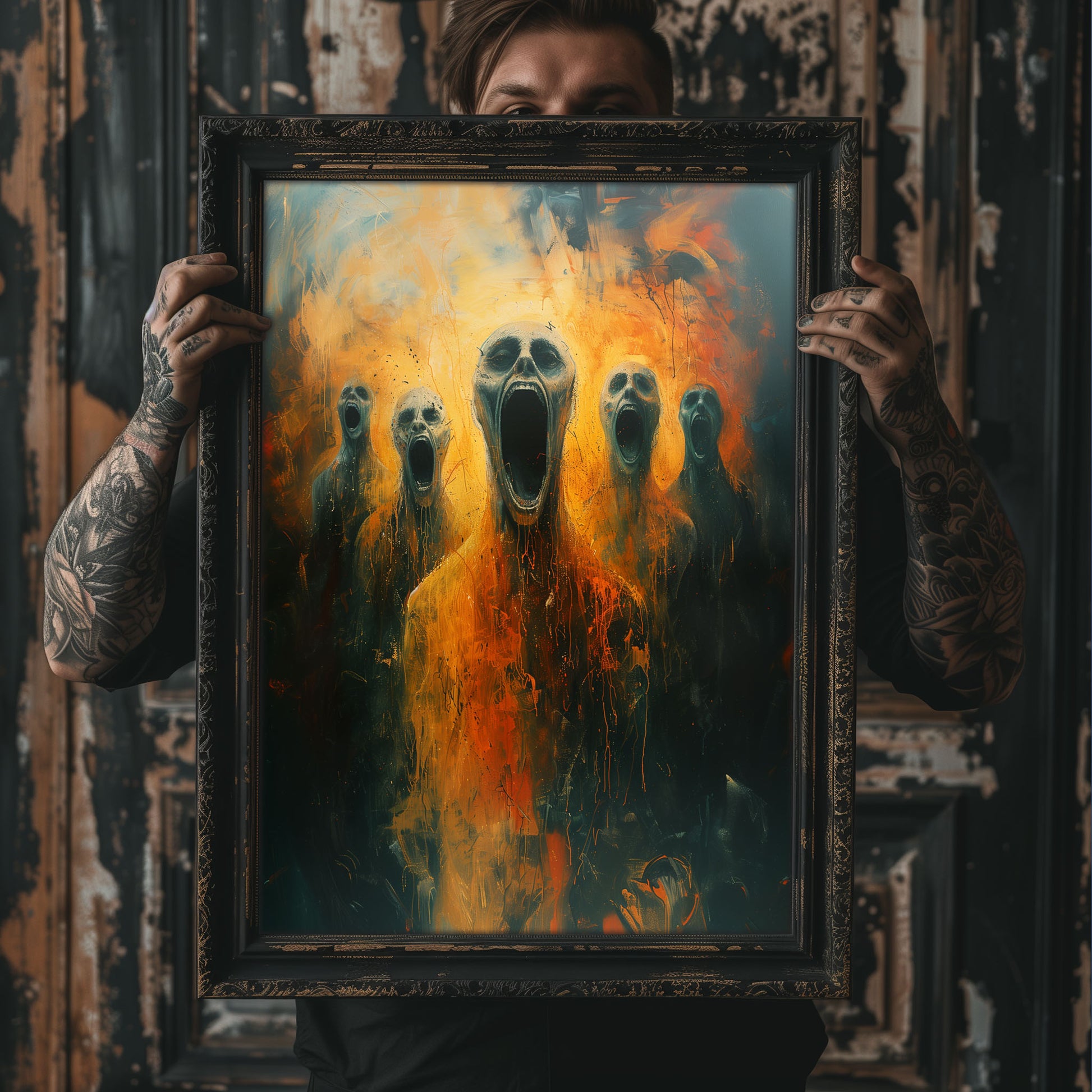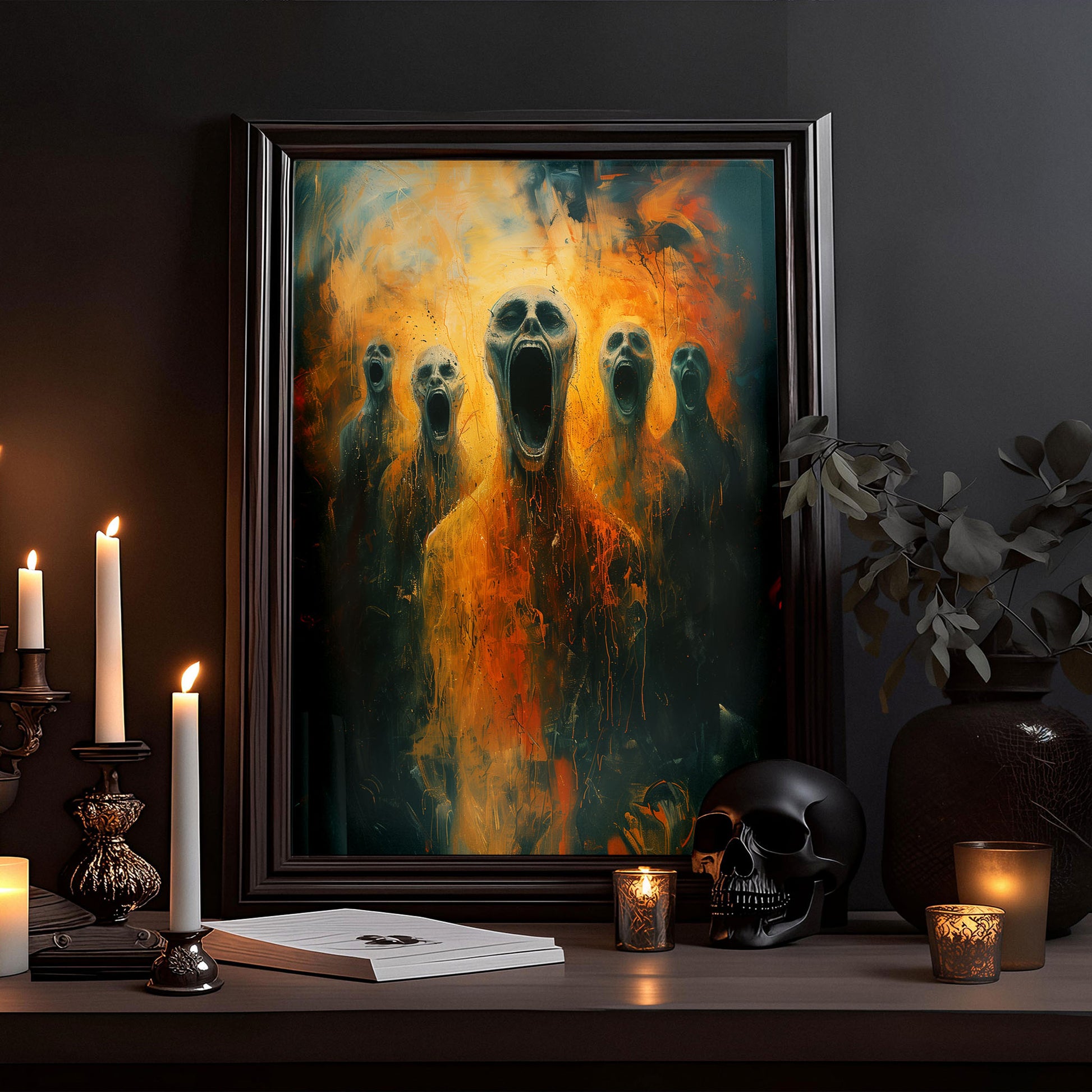 Introducing our chilling Screams from Hell poster, a haunting addition to any dark and gothic space. This horror art print features a mesmerizing oil painting that will send shivers down your spine. Perfect for those who appreciate the macabre and mysterious, this poster is sure to become a conversation starter in your home. Embrace the darkness and add a touch of eerie beauty to your decor with this one-of-a-kind piece.
