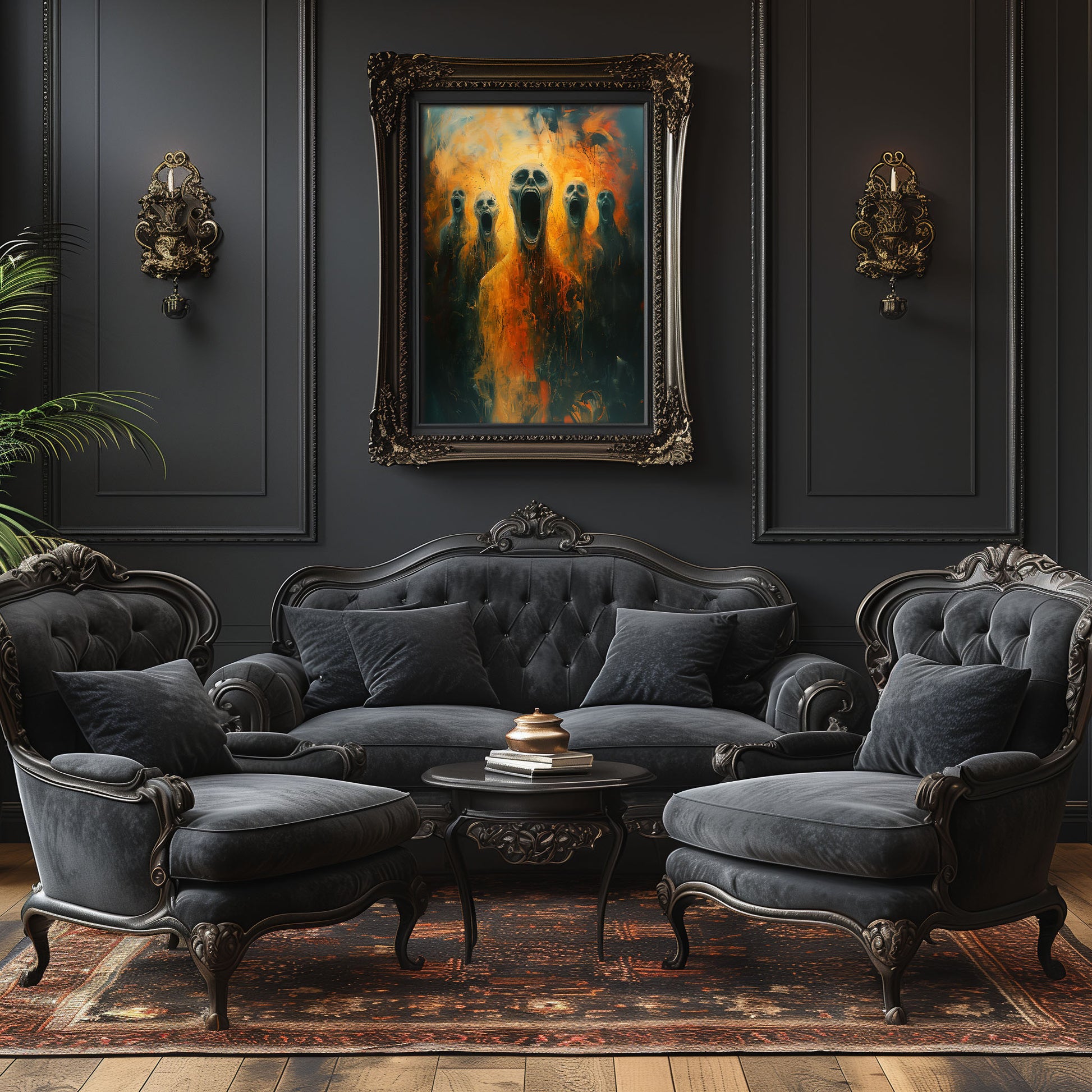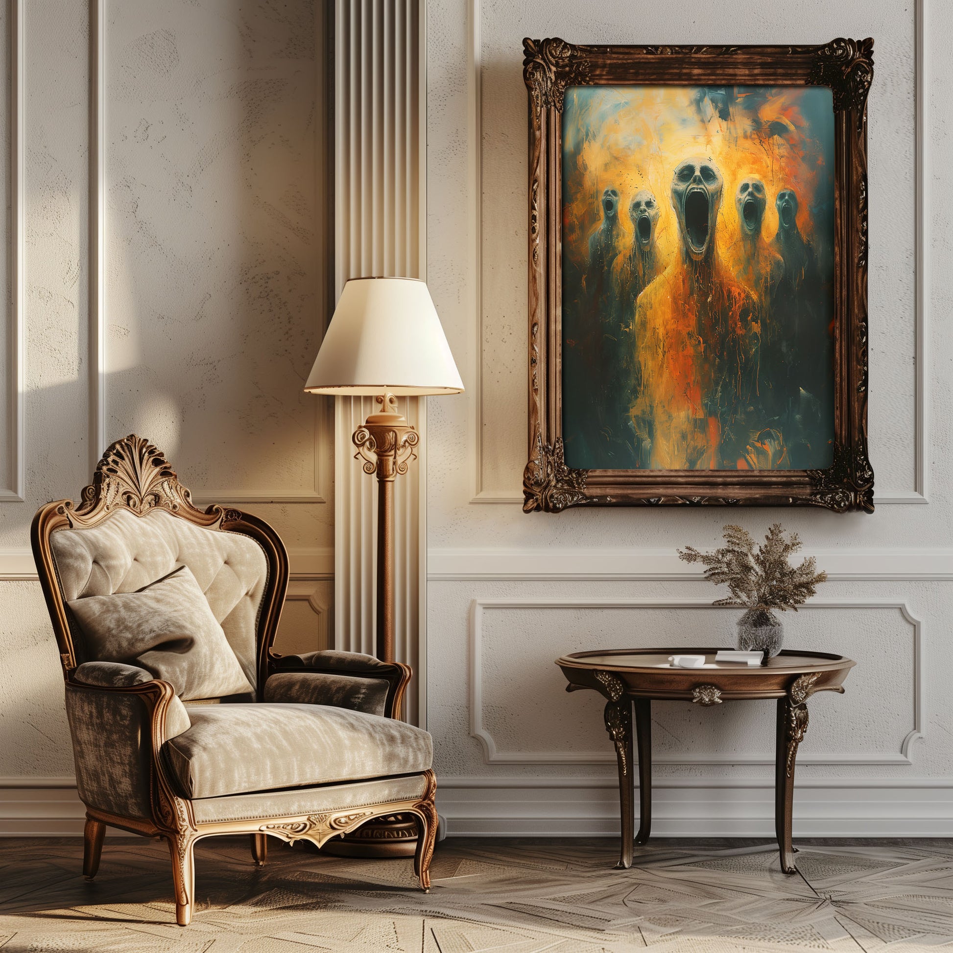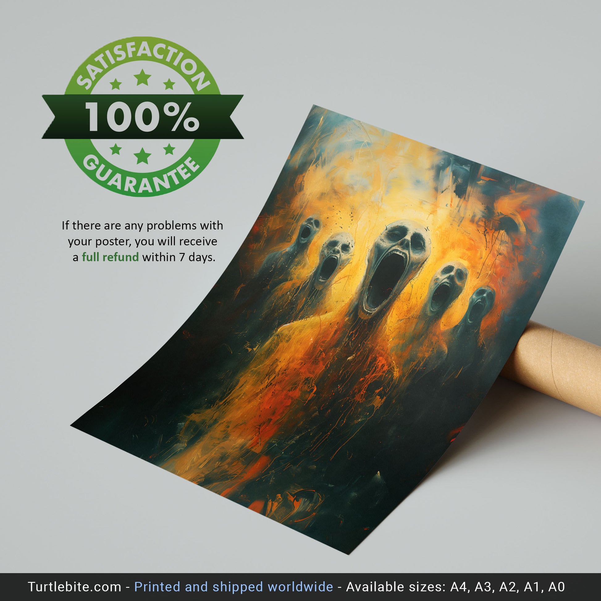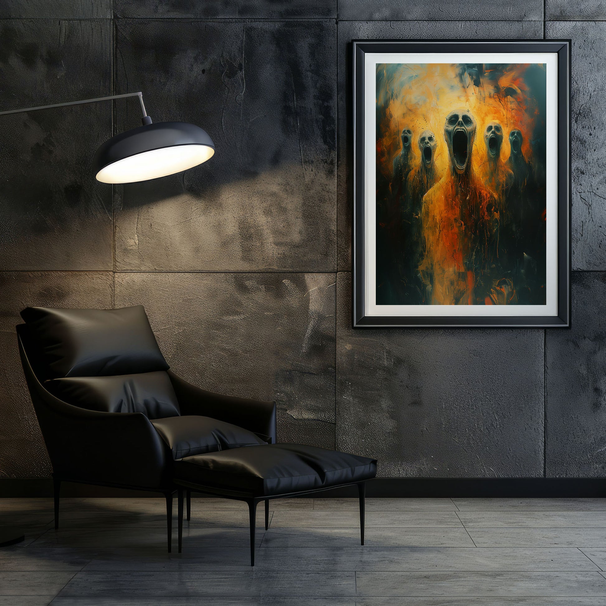 Introducing our chilling Screams from Hell poster, a haunting addition to any dark and gothic space. This horror art print features a mesmerizing oil painting that will send shivers down your spine. Perfect for those who appreciate the macabre and mysterious, this poster is sure to become a conversation starter in your home. Embrace the darkness and add a touch of eerie beauty to your decor with this one-of-a-kind piece.