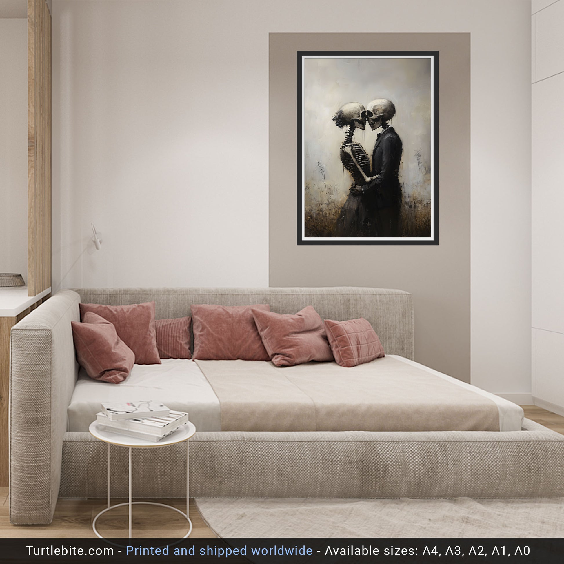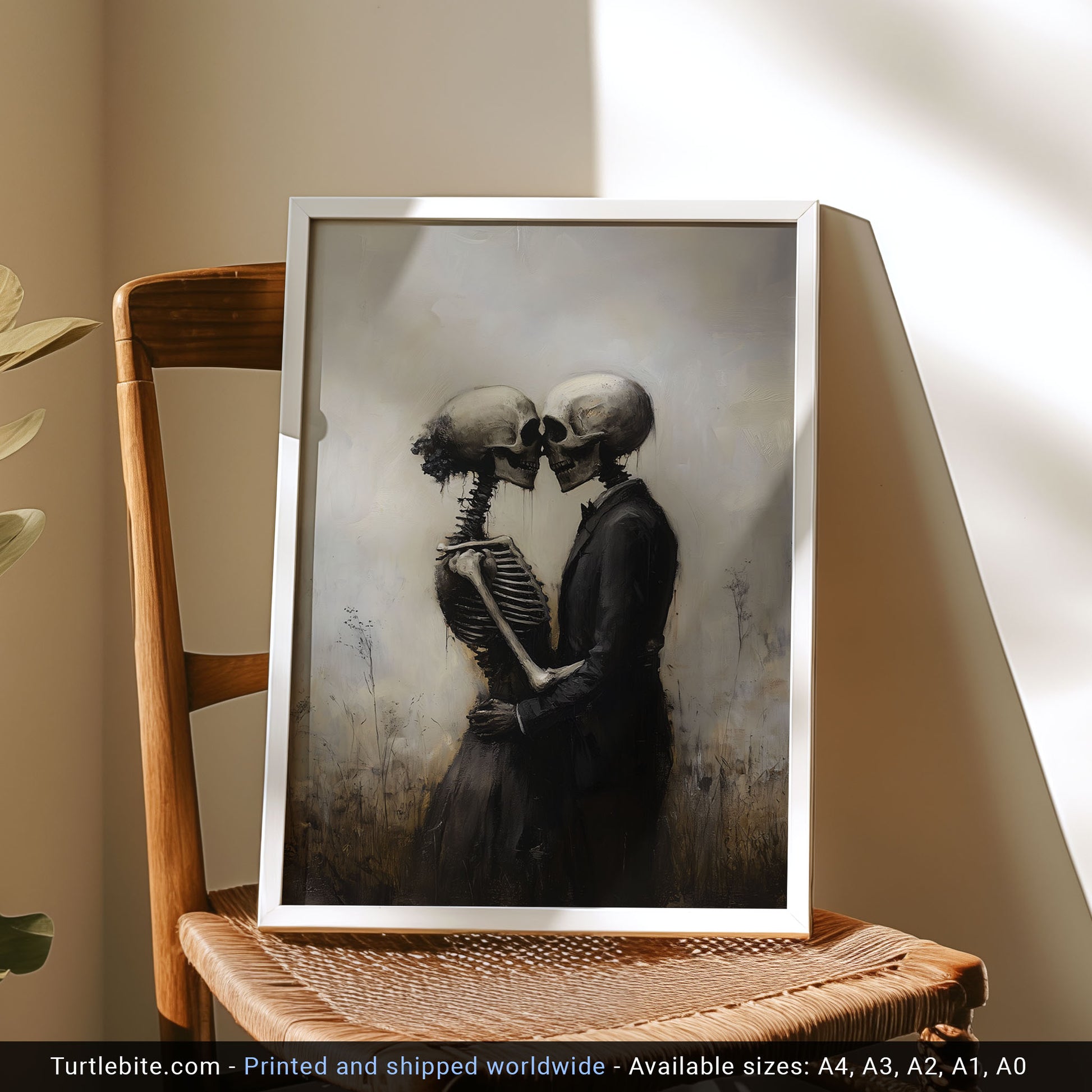 Skeleton Love Story - Gothic Skeletal Romance Painting - Dark Art Vintage Poster - Macabre Fine Art Print