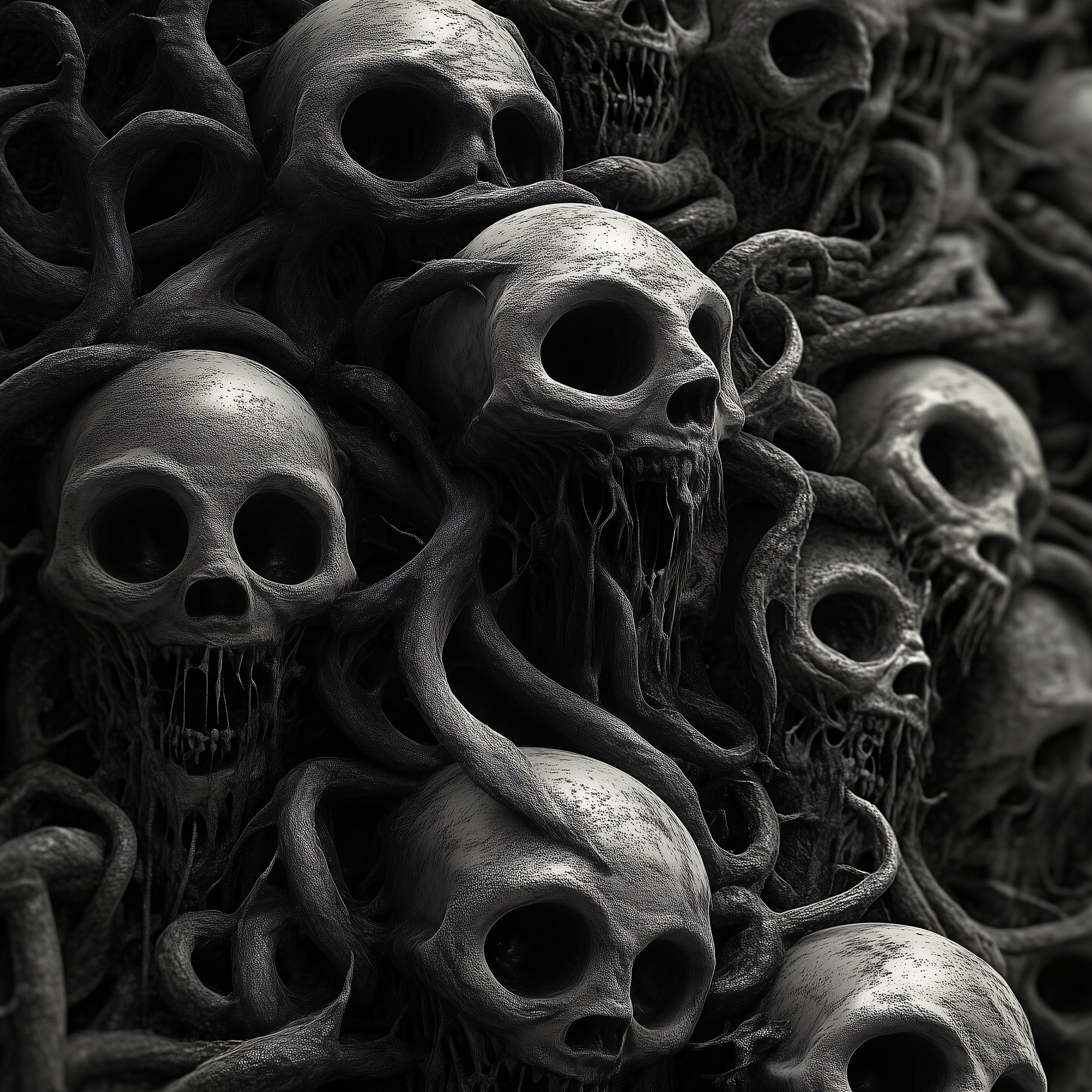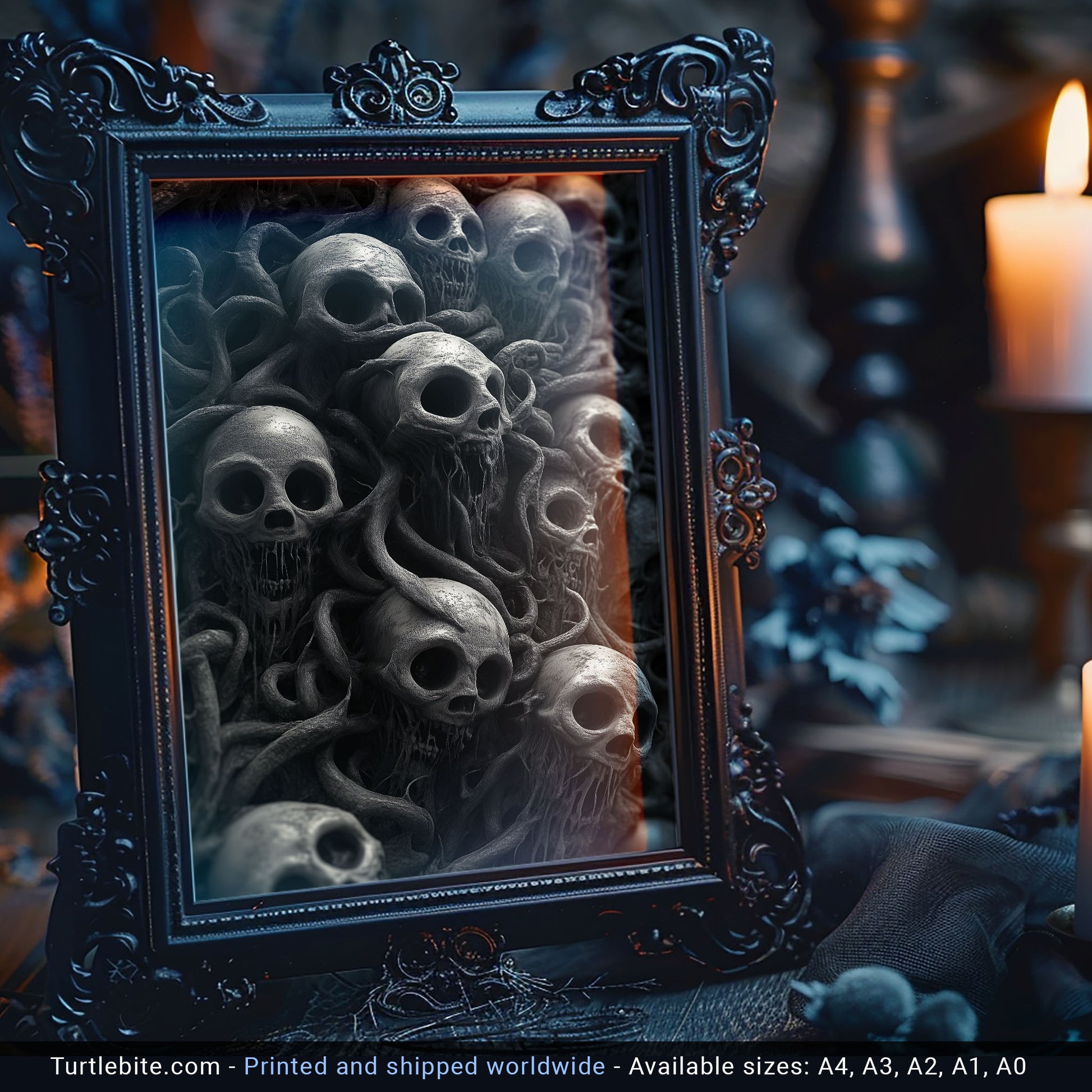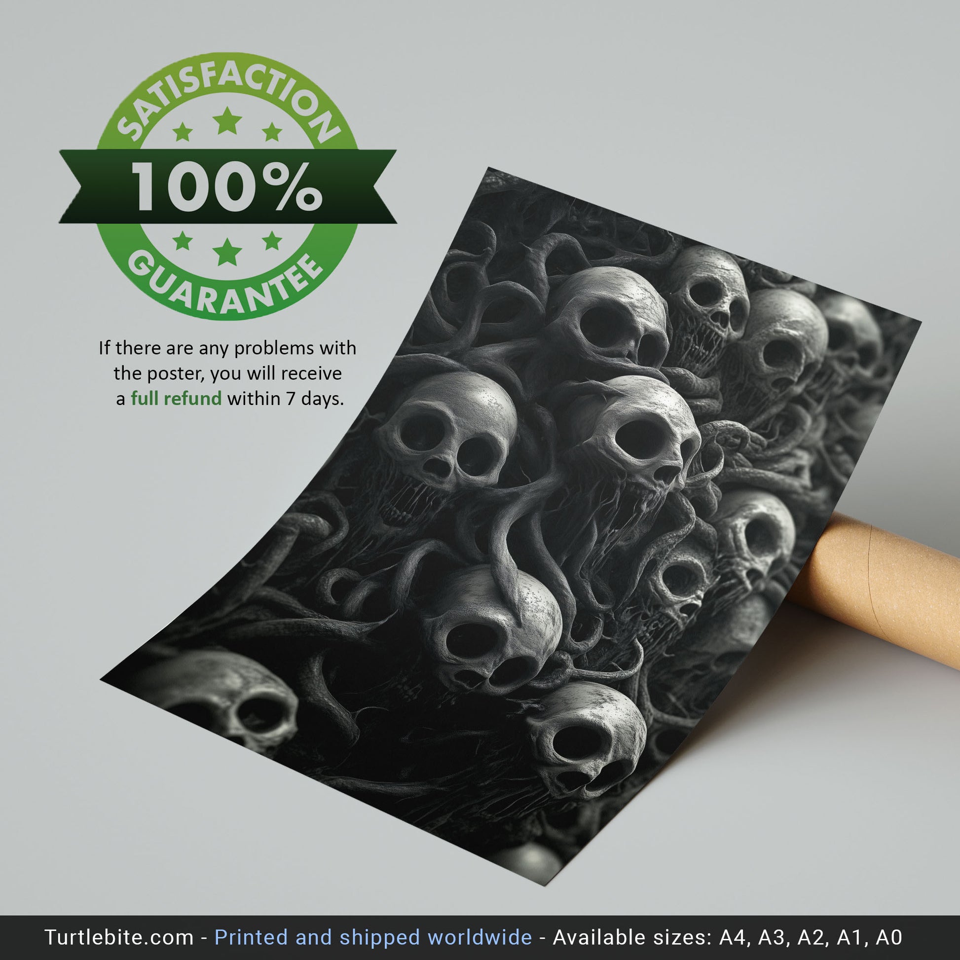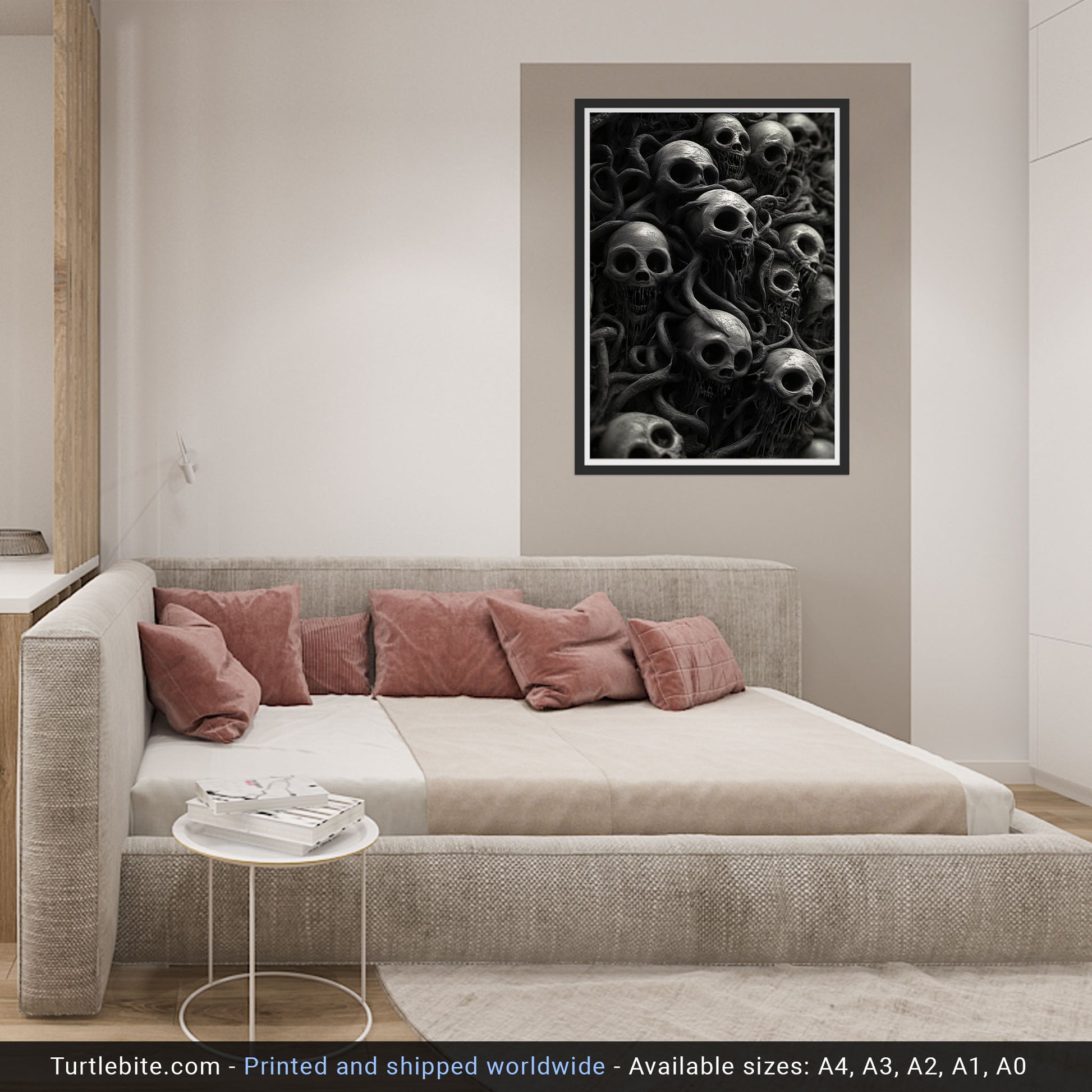 Skull Wall Art – Twisted Gothic Horror Print Featuring Surreal Skulls and Tentacles, Macabre Decor for Dark Art Enthusiasts