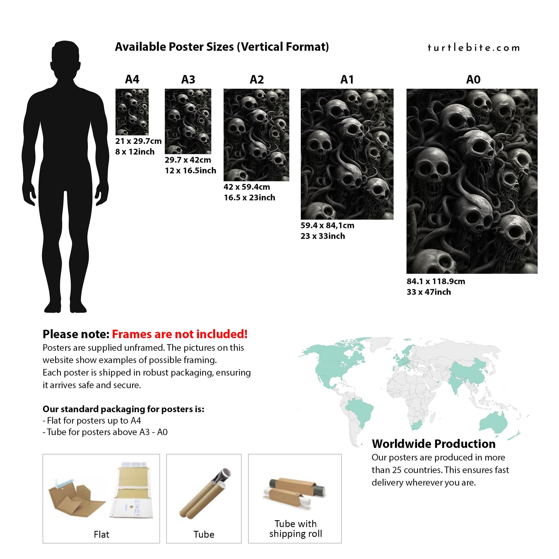 Different packaging depending on the size of the poster as well as the country where the item is produced and shipped to. Larger prints are carefully rolled and shipped in a tube, without framing included. Each of these products is crafted specifically for you upon ordering, so please allow a bit more time for delivery.