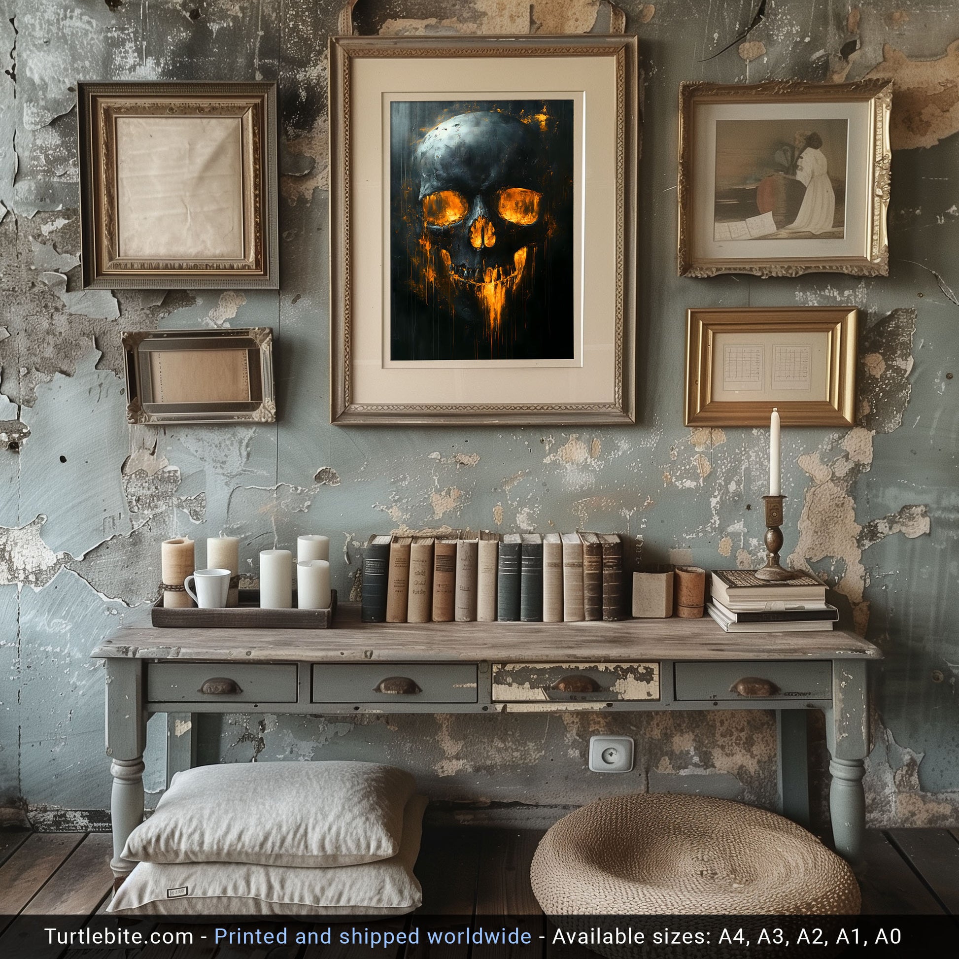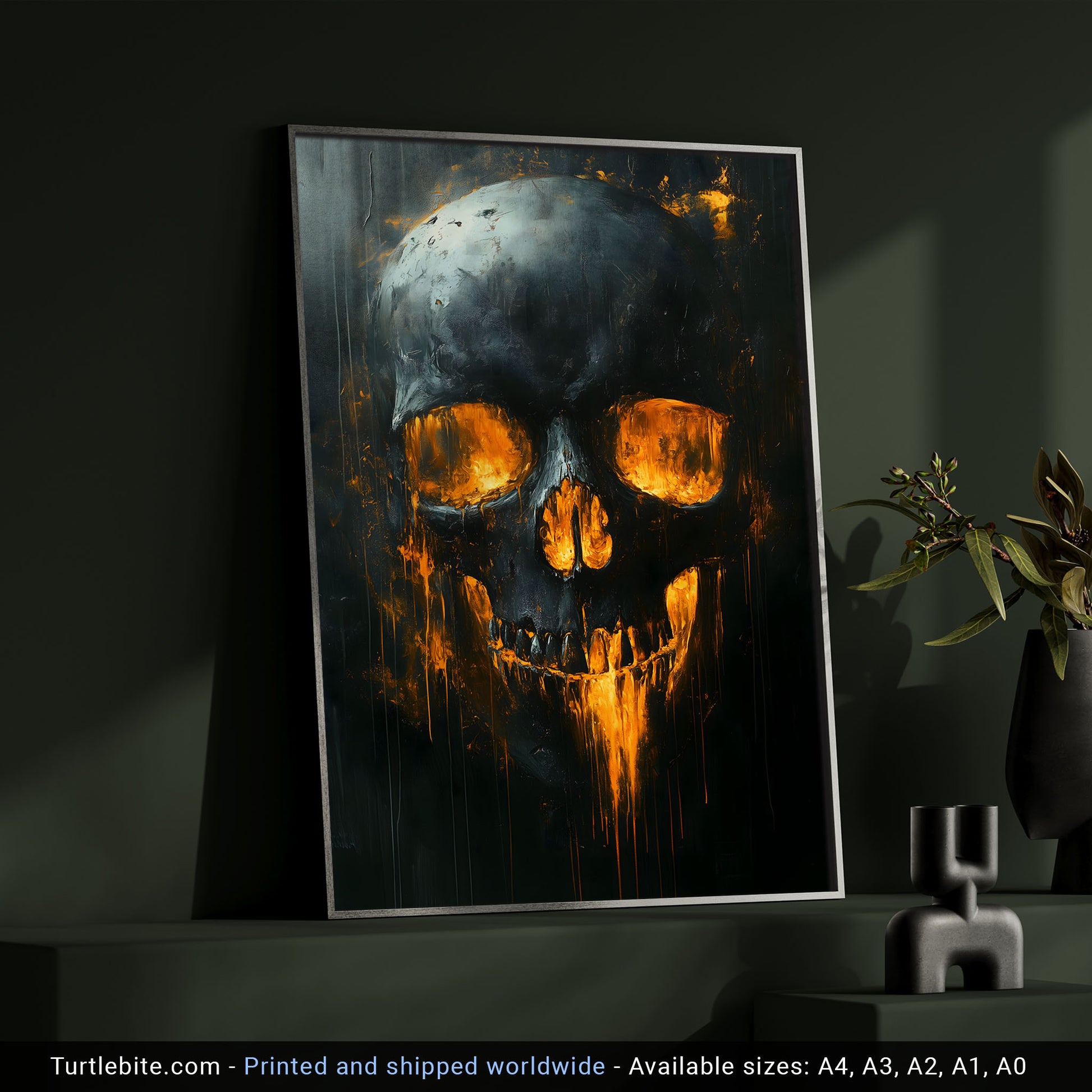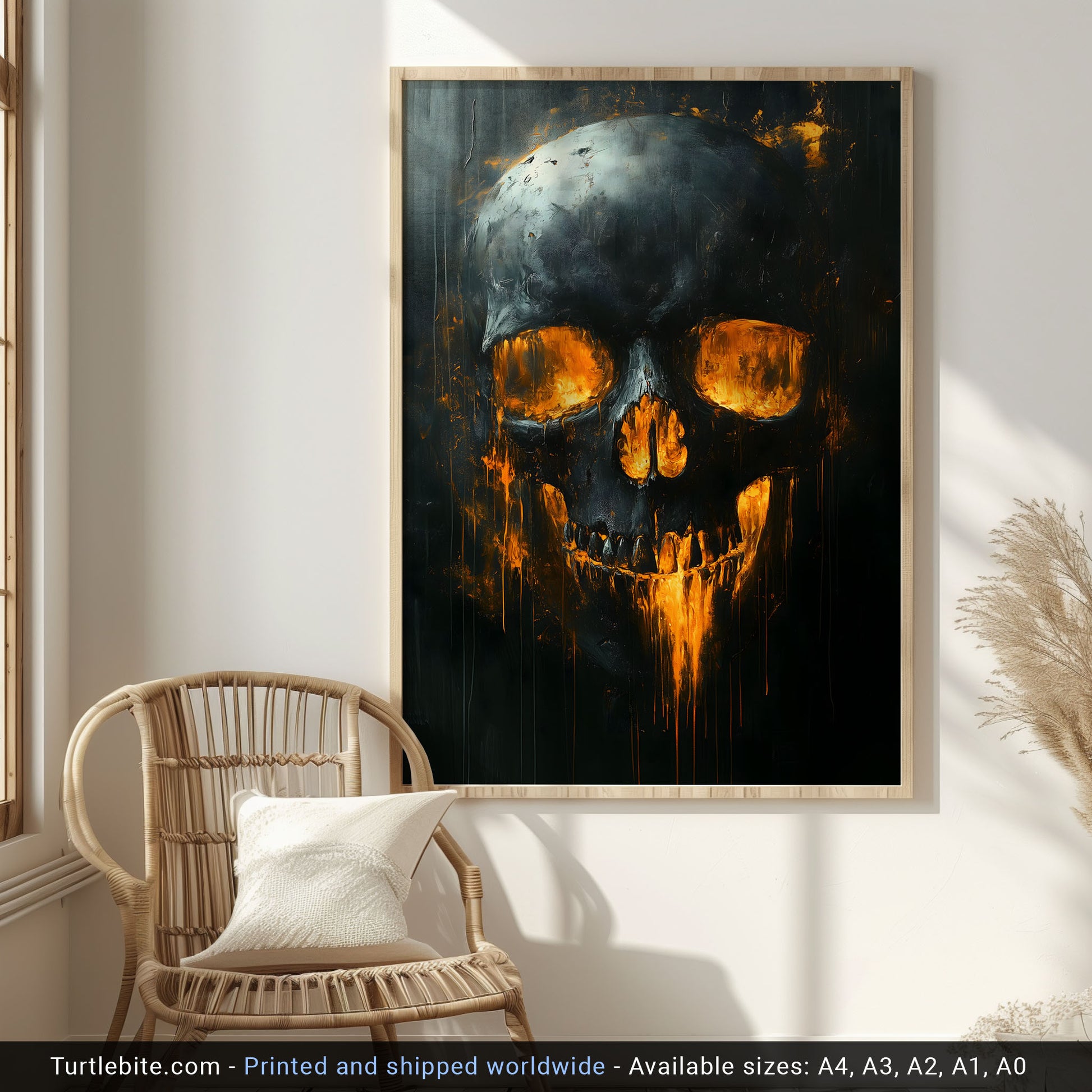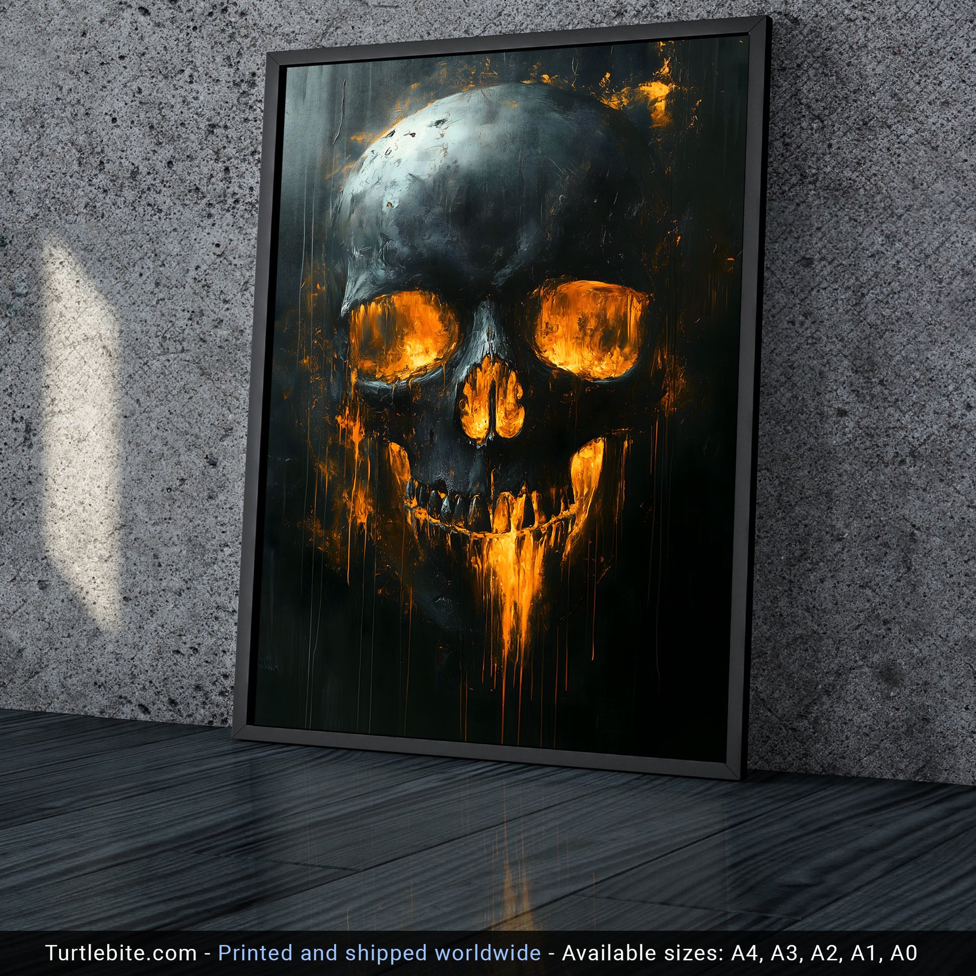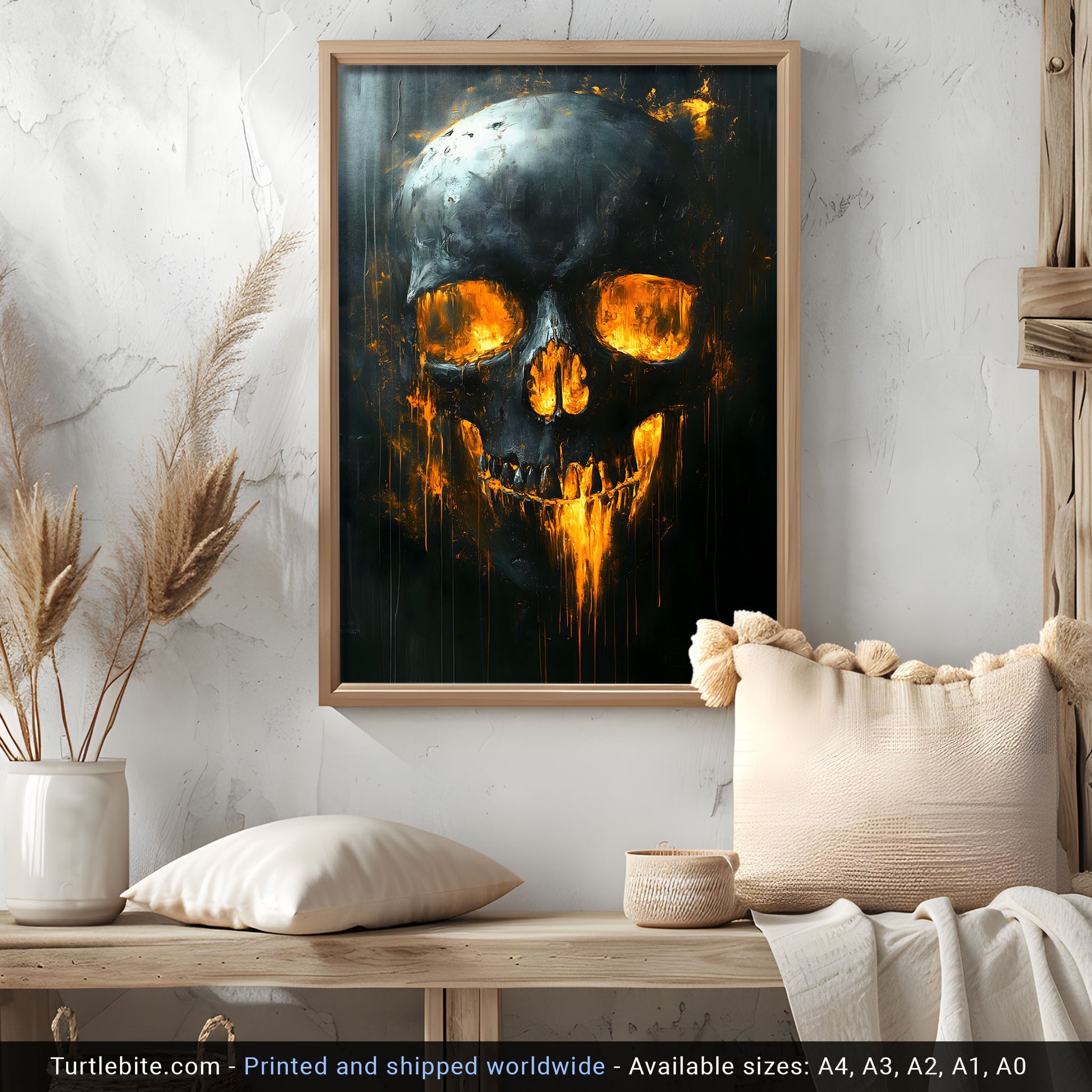 Ignite your space with the eerie intensity of our "Spooky Fire Skull Painting" poster. This oversized vertical print features a haunting skull glowing from within, blending elements of the supernatural with bold, fiery imagery. Perfect for those who embrace the darker side of art, this piece captures a sense of horror and mystery. The extra-large format ensures this creepy, eerie portrait becomes a striking focal point in any room, adding an atmosphere of haunted allure. Ideal for a bold statement in living rooms, bedrooms, or creative spaces, this scary art painting is perfect for anyone looking to embrace the thrill of the macabre.