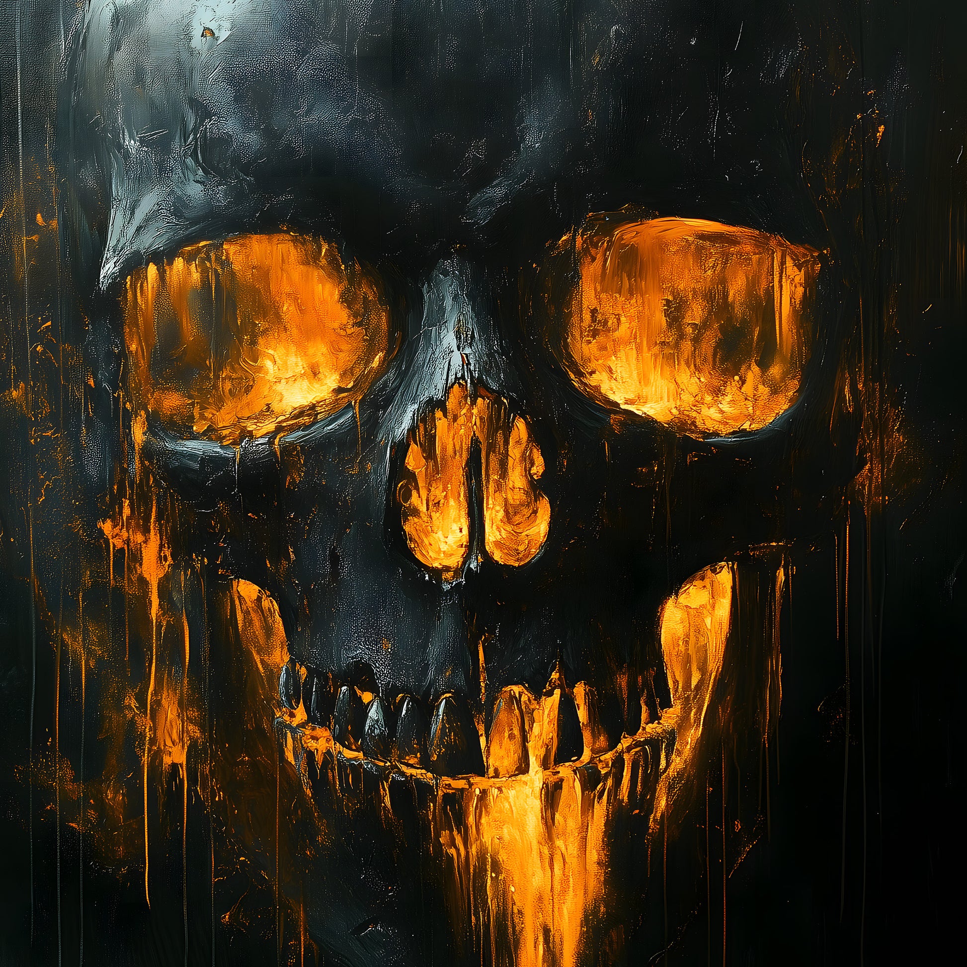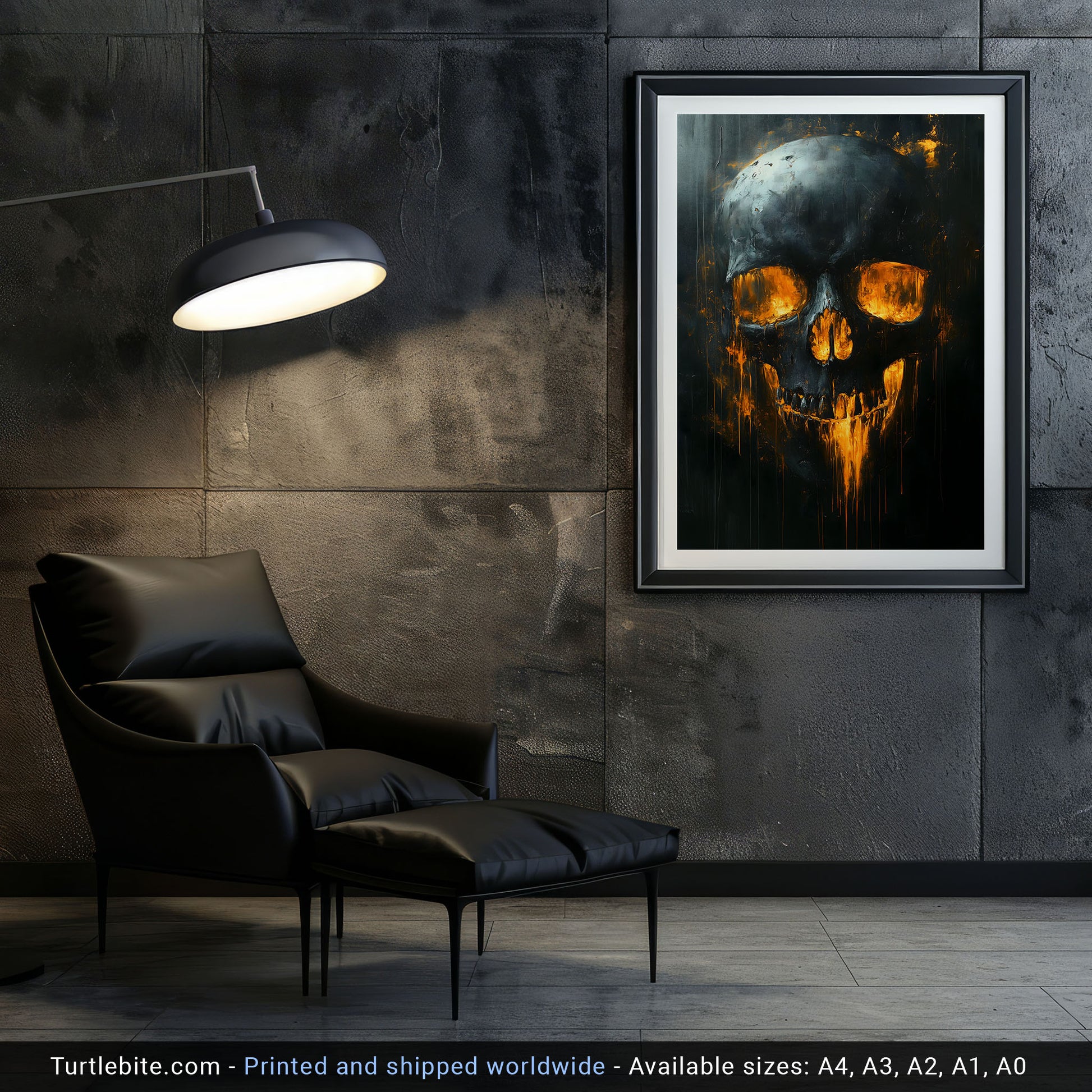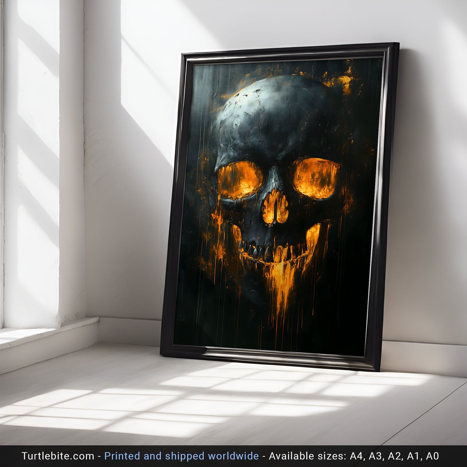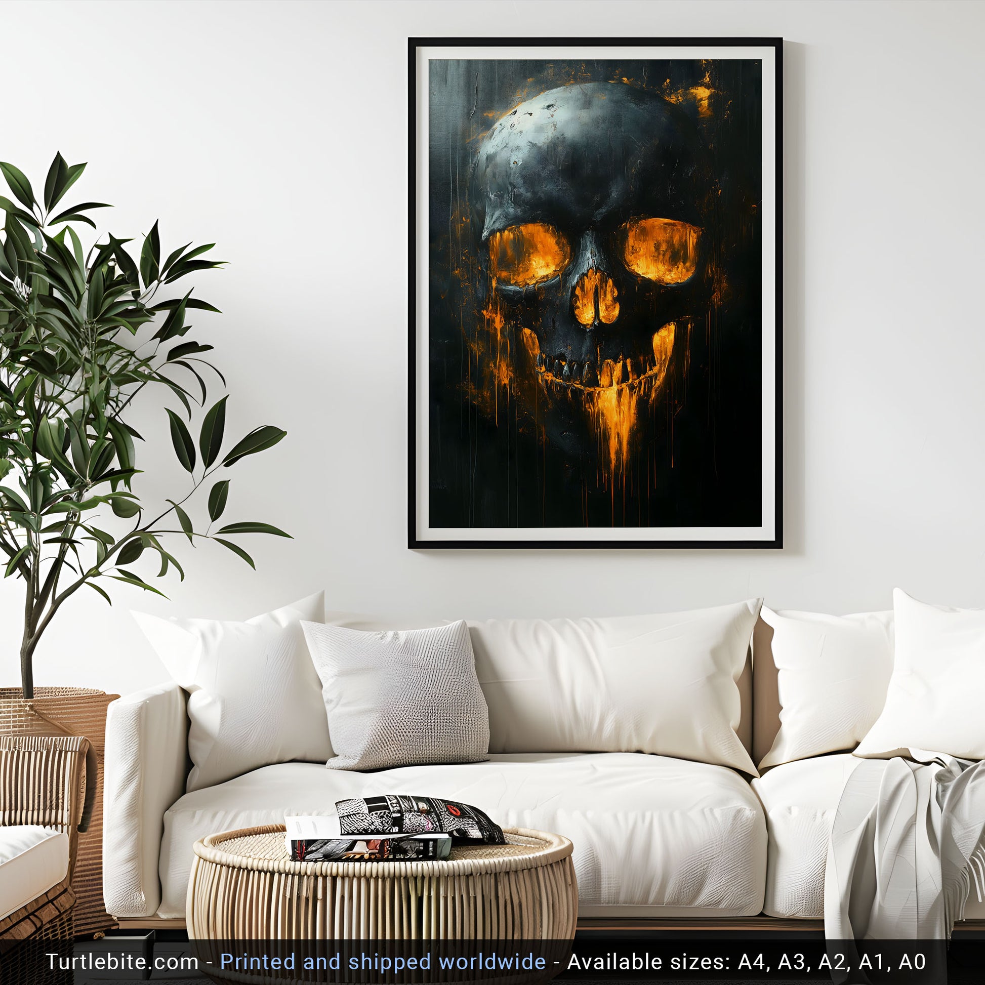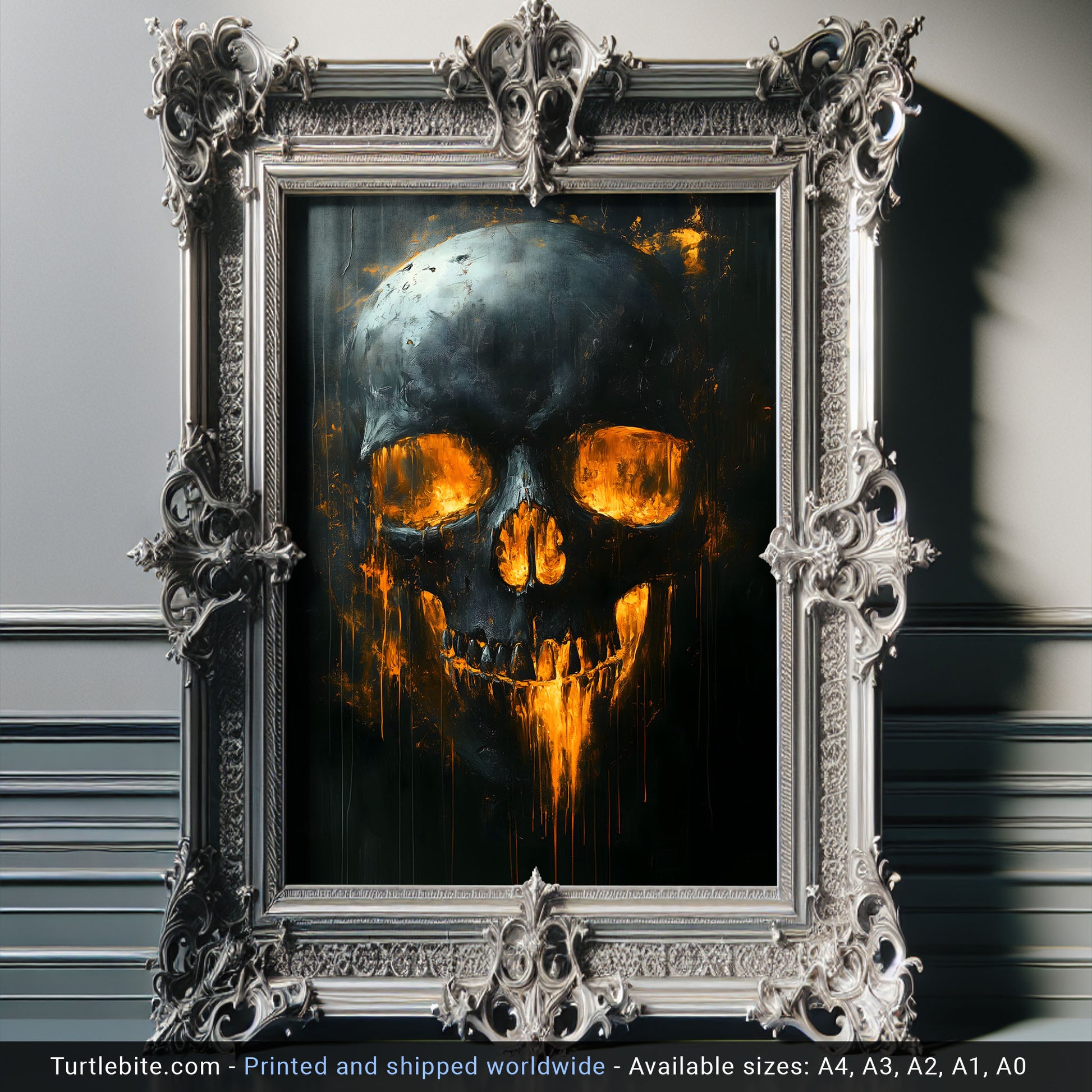 Spooky Glowing Skull Painting Poster | Haunted Art Painting | Creepy Skull Portrait