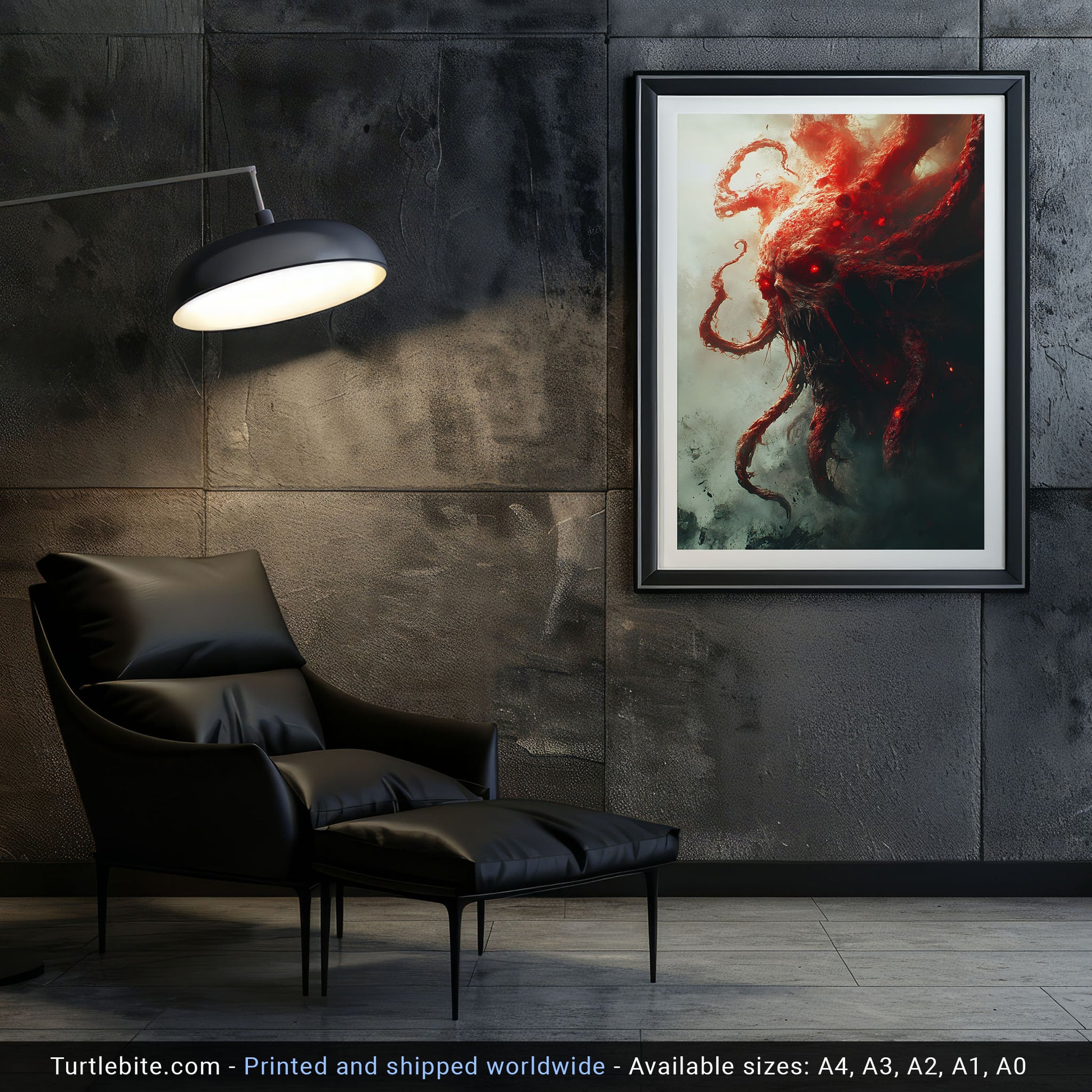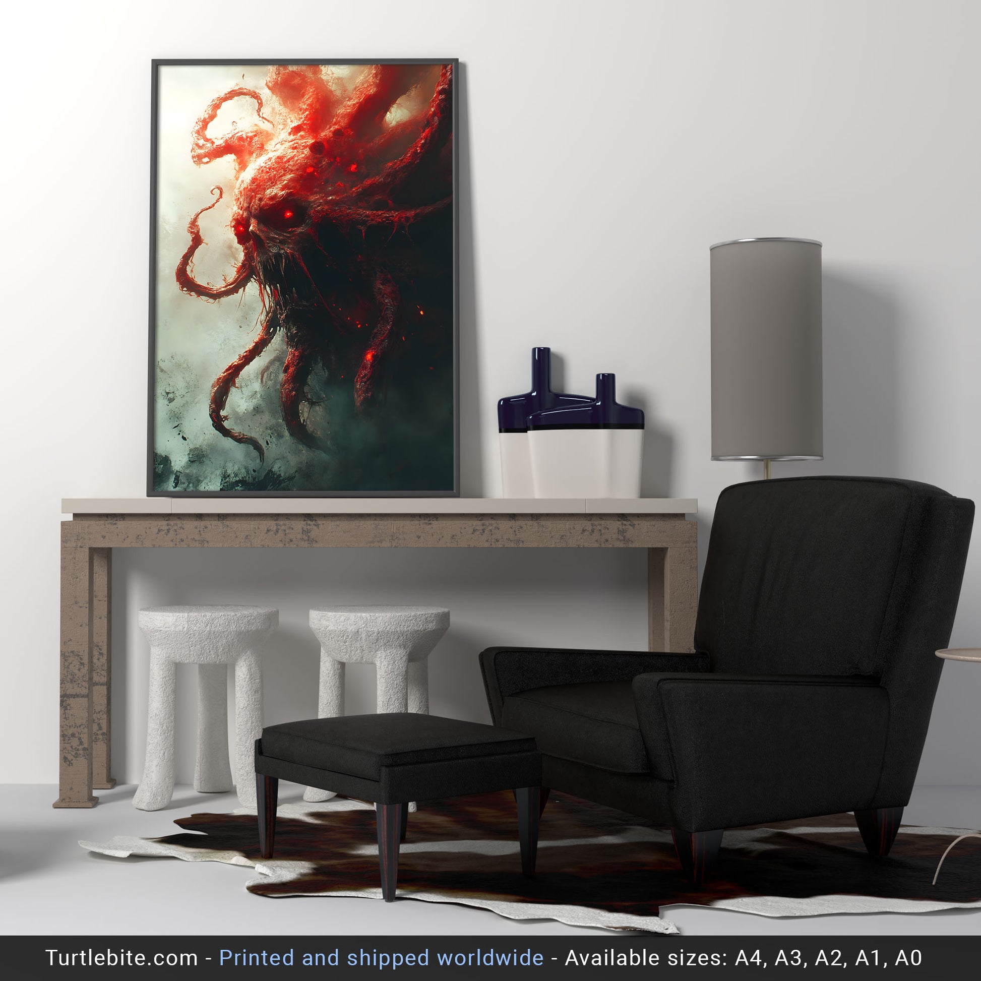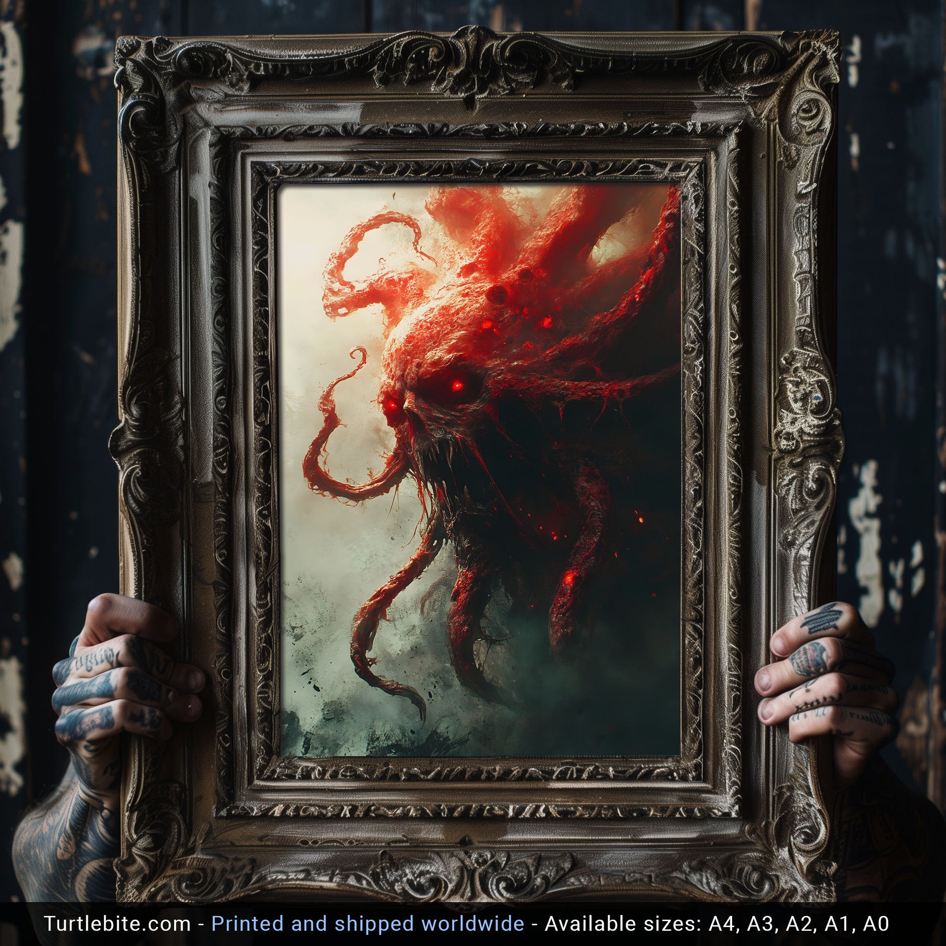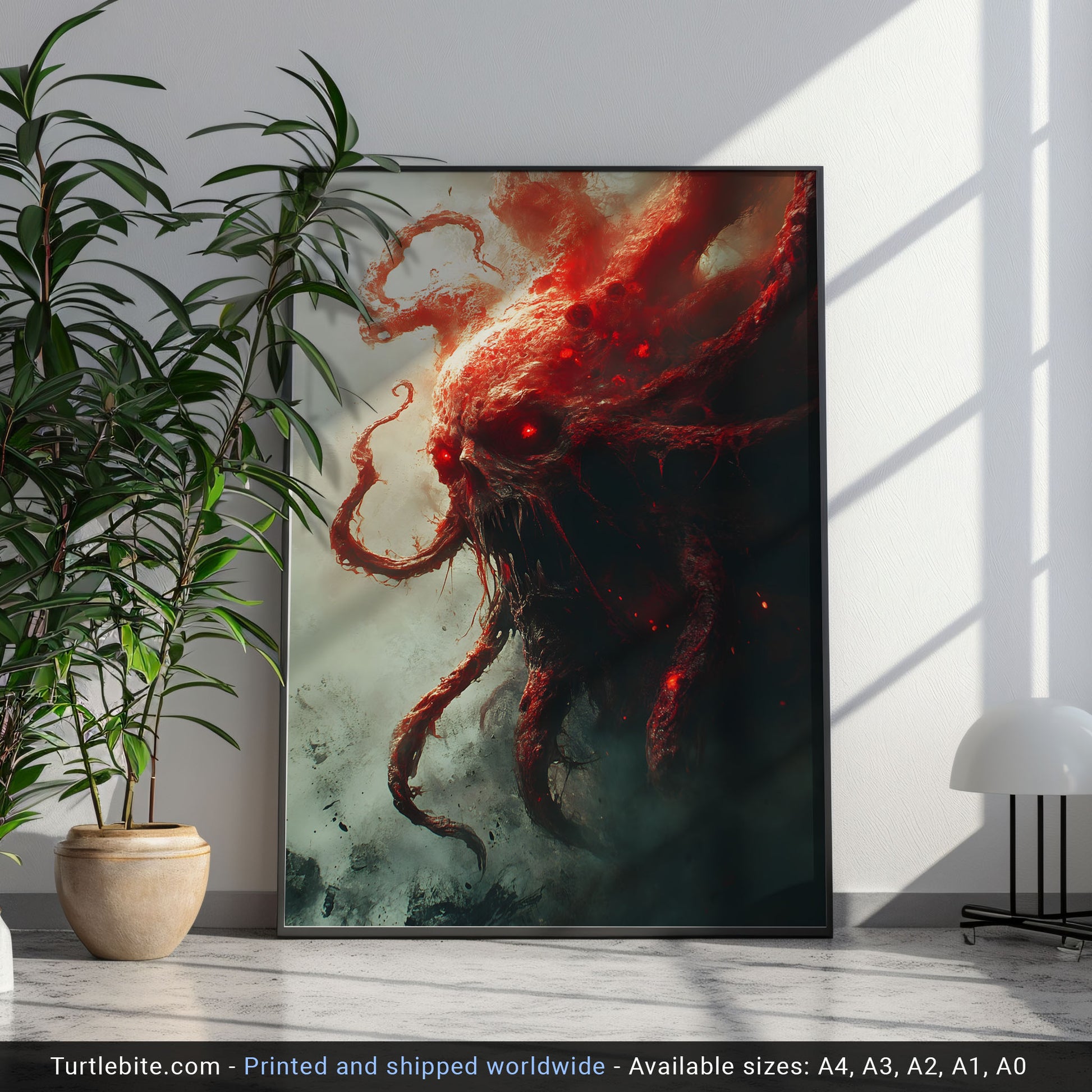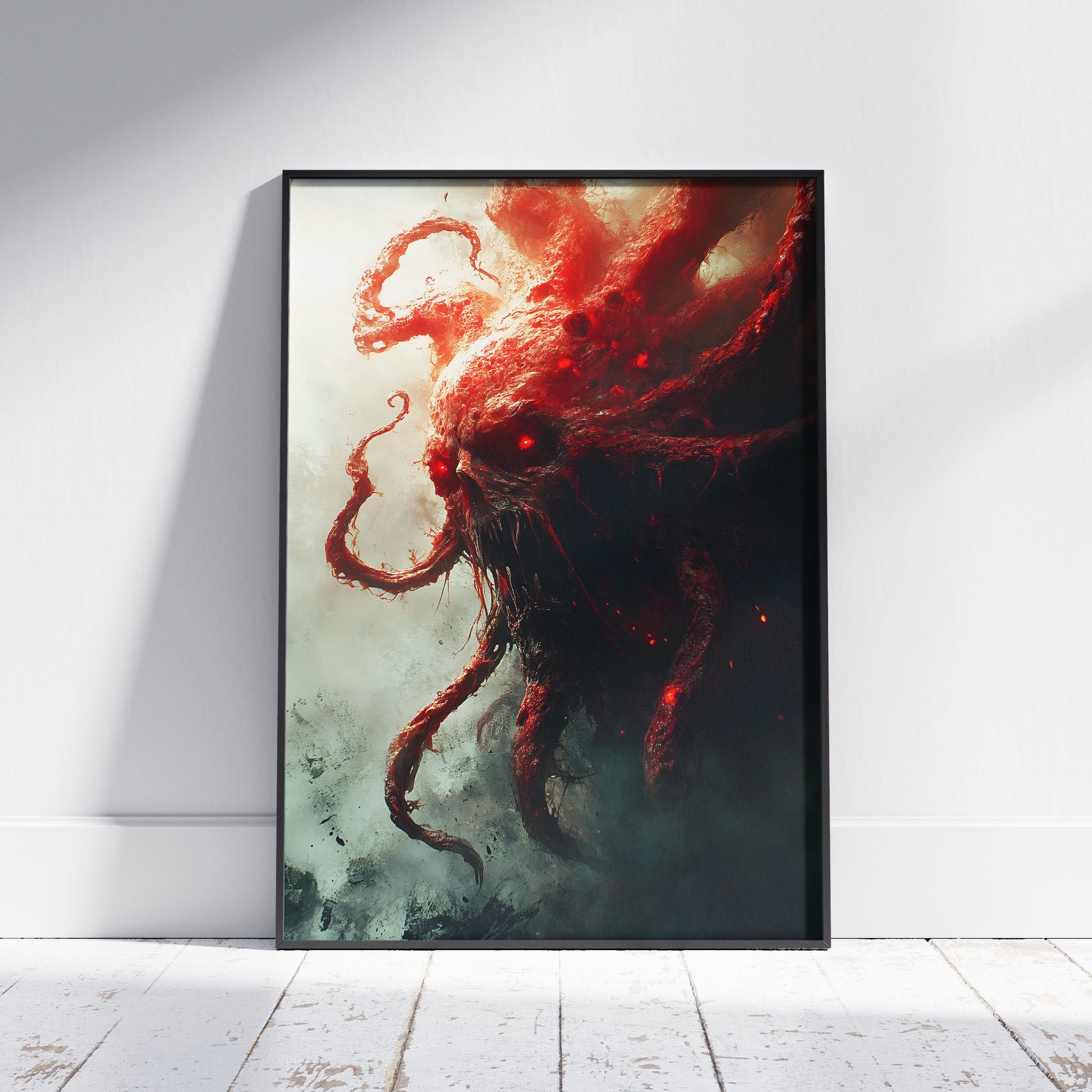 Unleash terror with this tentacle creature poster! Dive into the darkness with this creepy gorecore print that will give your space the edge it craves. Embrace the macabre with this gothic horror wall art to infuse your walls with a chilling aesthetic. Perfect for horror enthusiasts and lovers of the eerie, bring home this terrifying piece today.