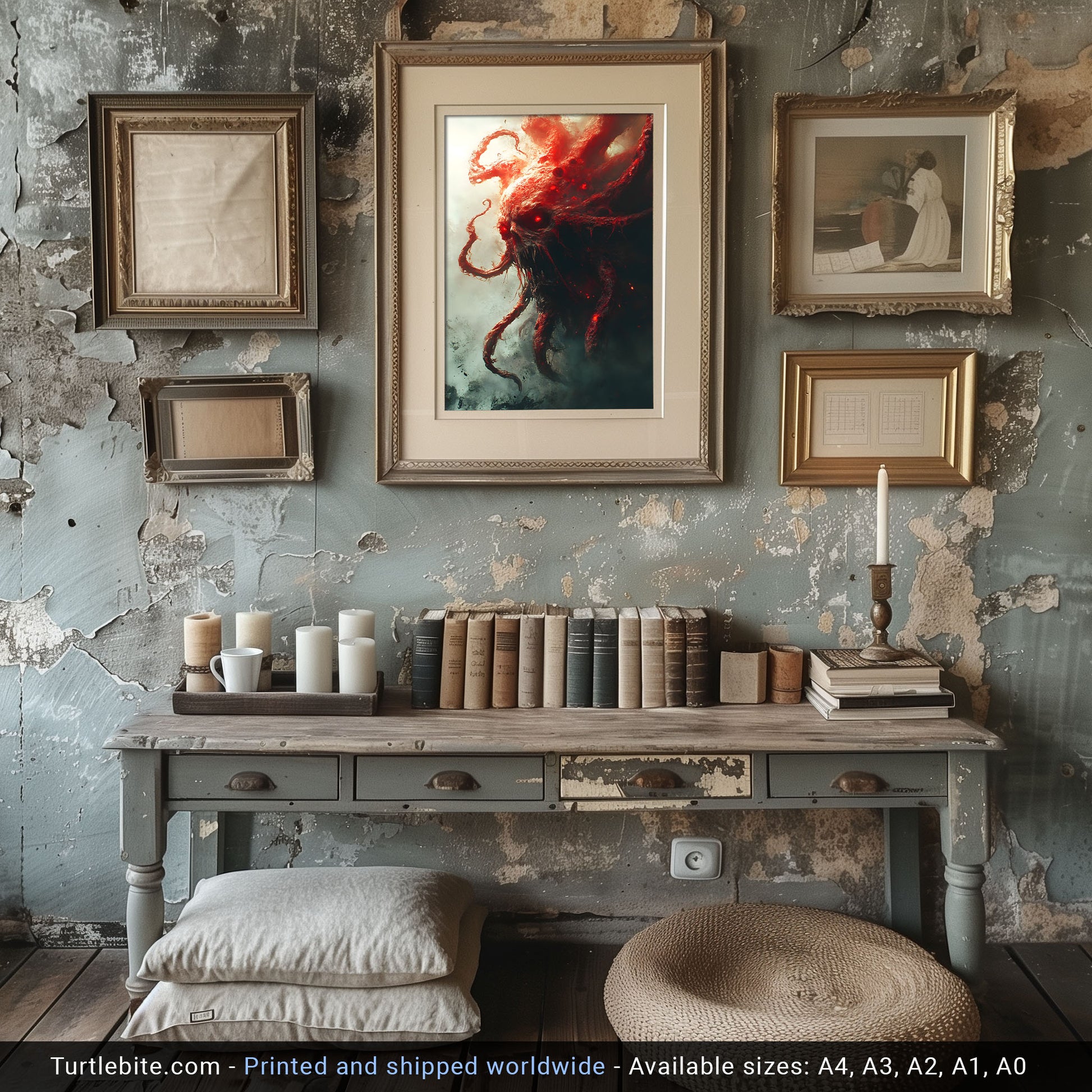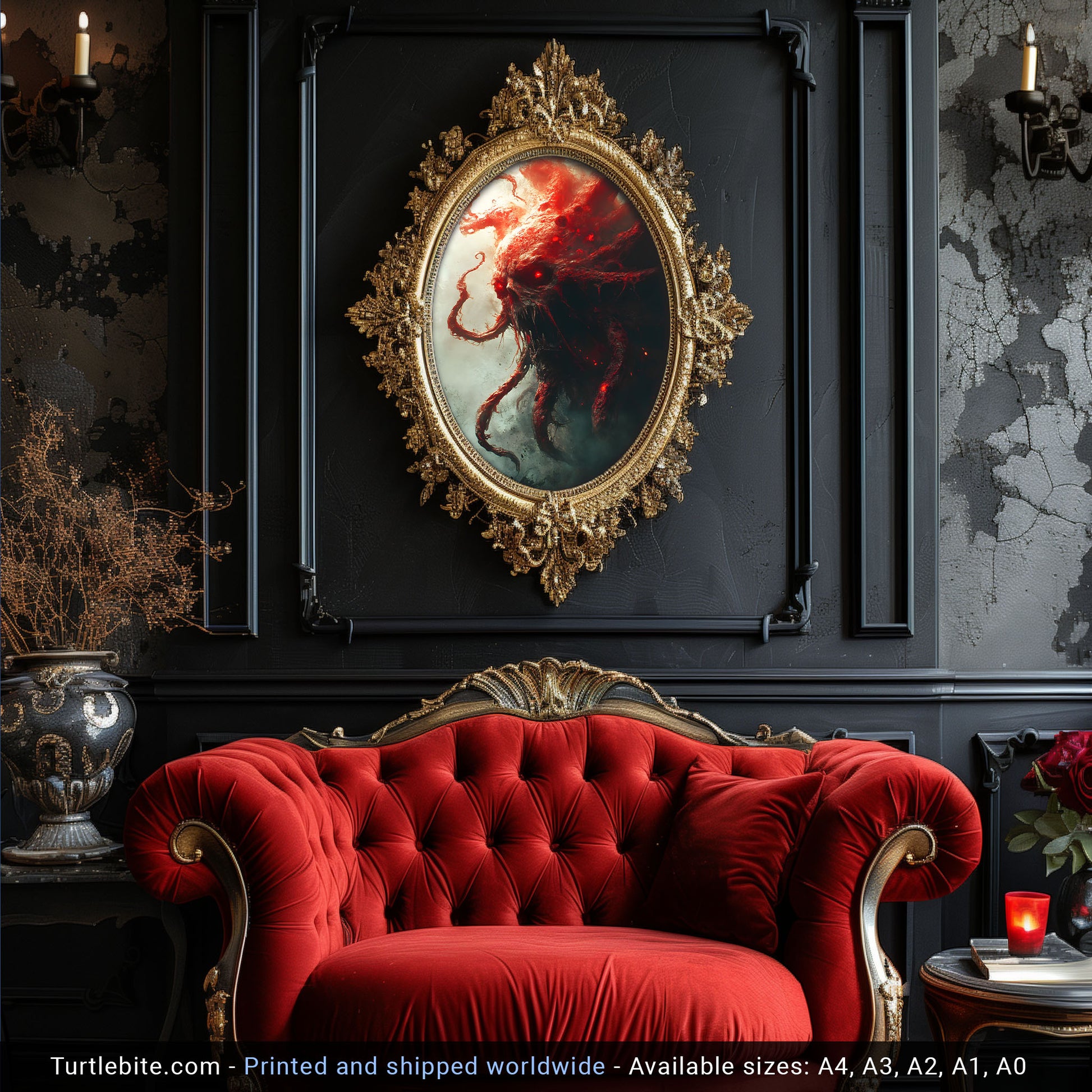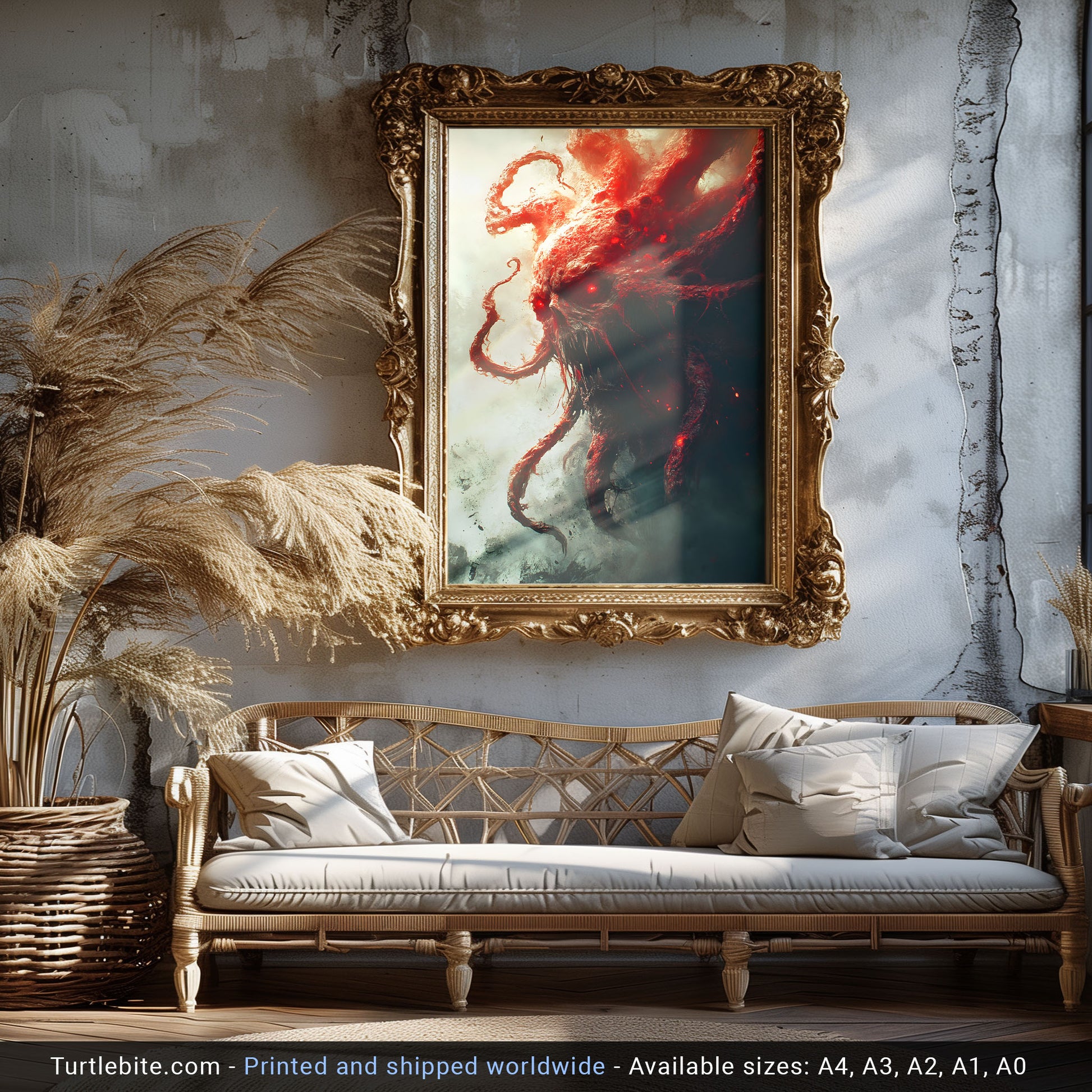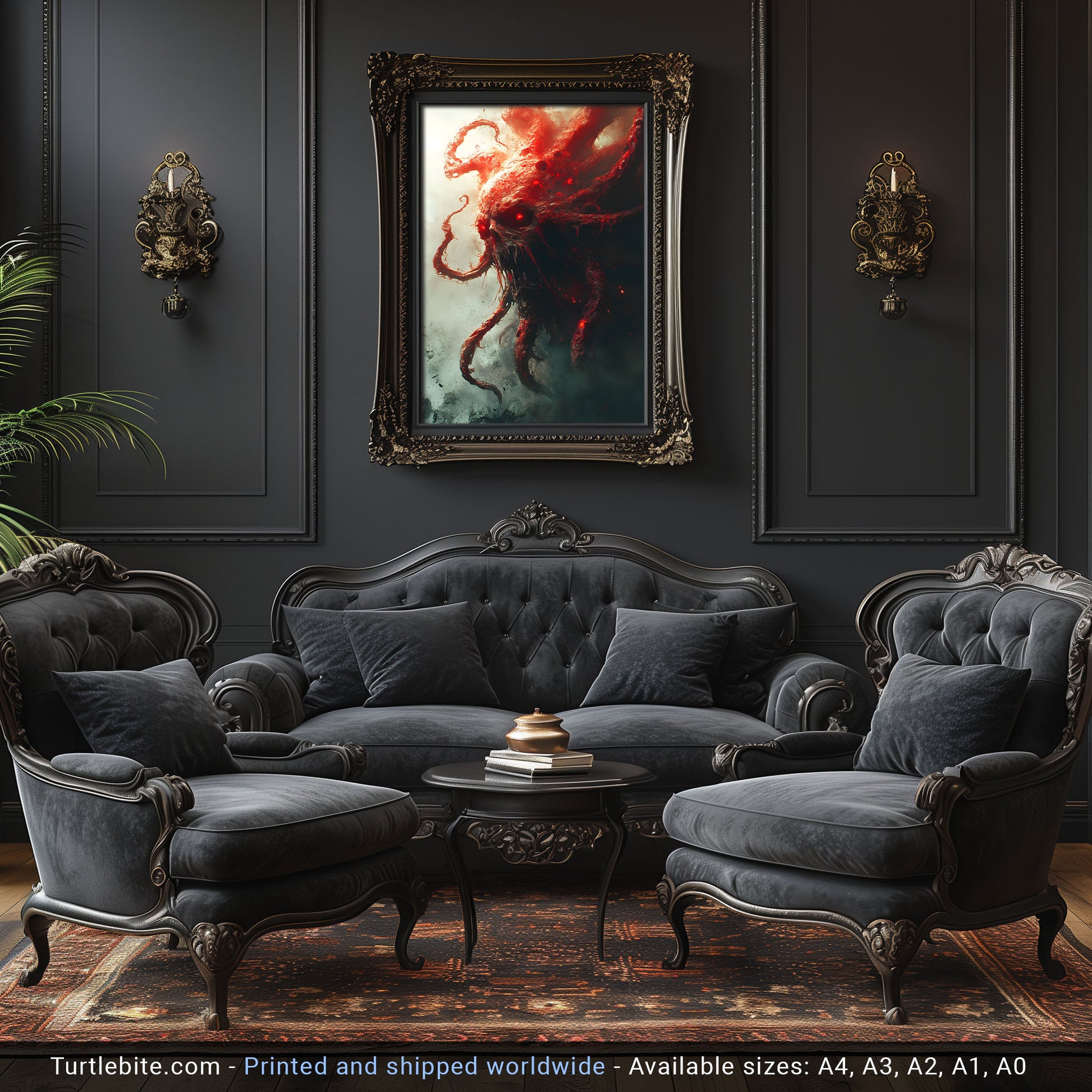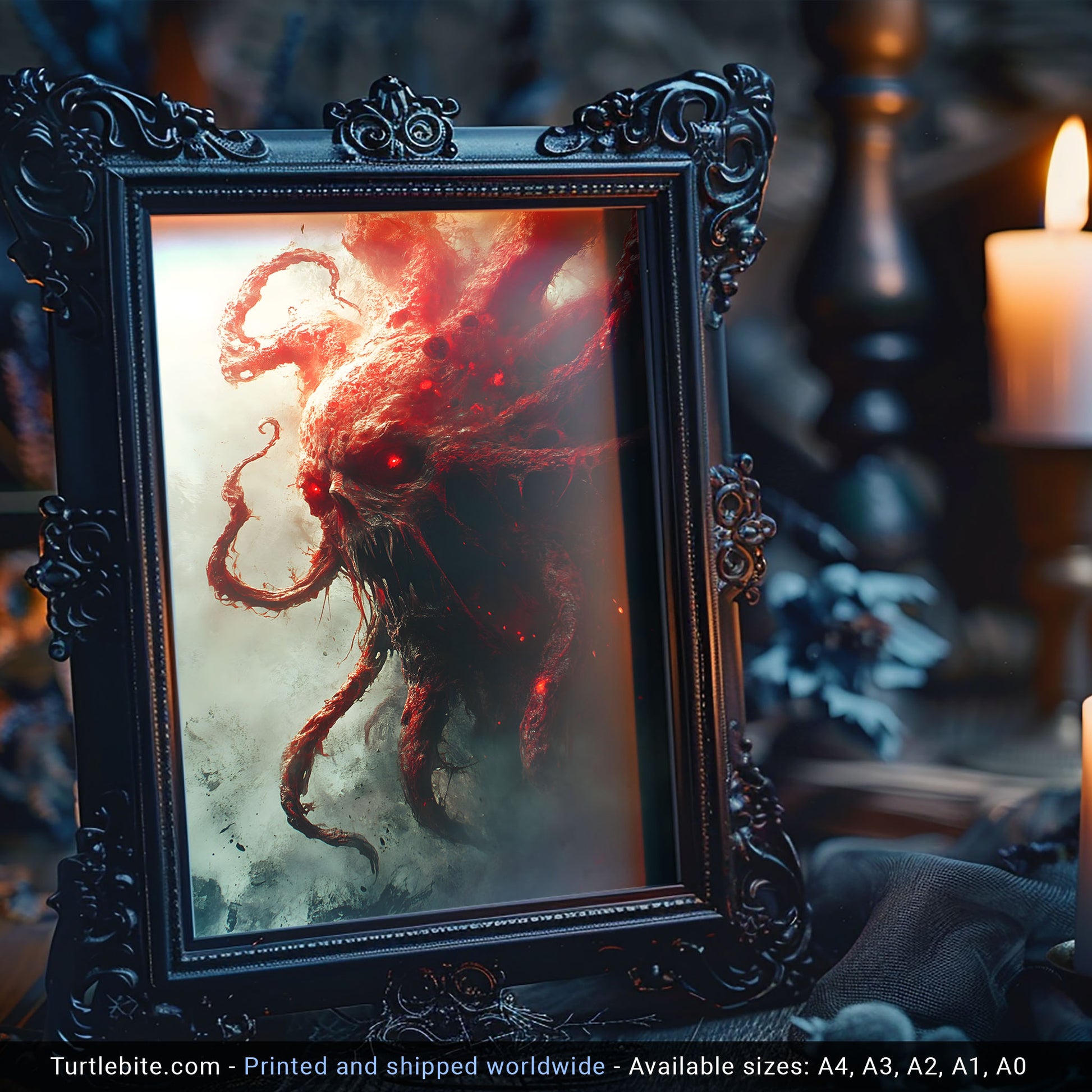 Unleash terror with this tentacle creature poster! Dive into the darkness with this creepy gorecore print that will give your space the edge it craves. Embrace the macabre with this gothic horror wall art to infuse your walls with a chilling aesthetic. Perfect for horror enthusiasts and lovers of the eerie, bring home this terrifying piece today.