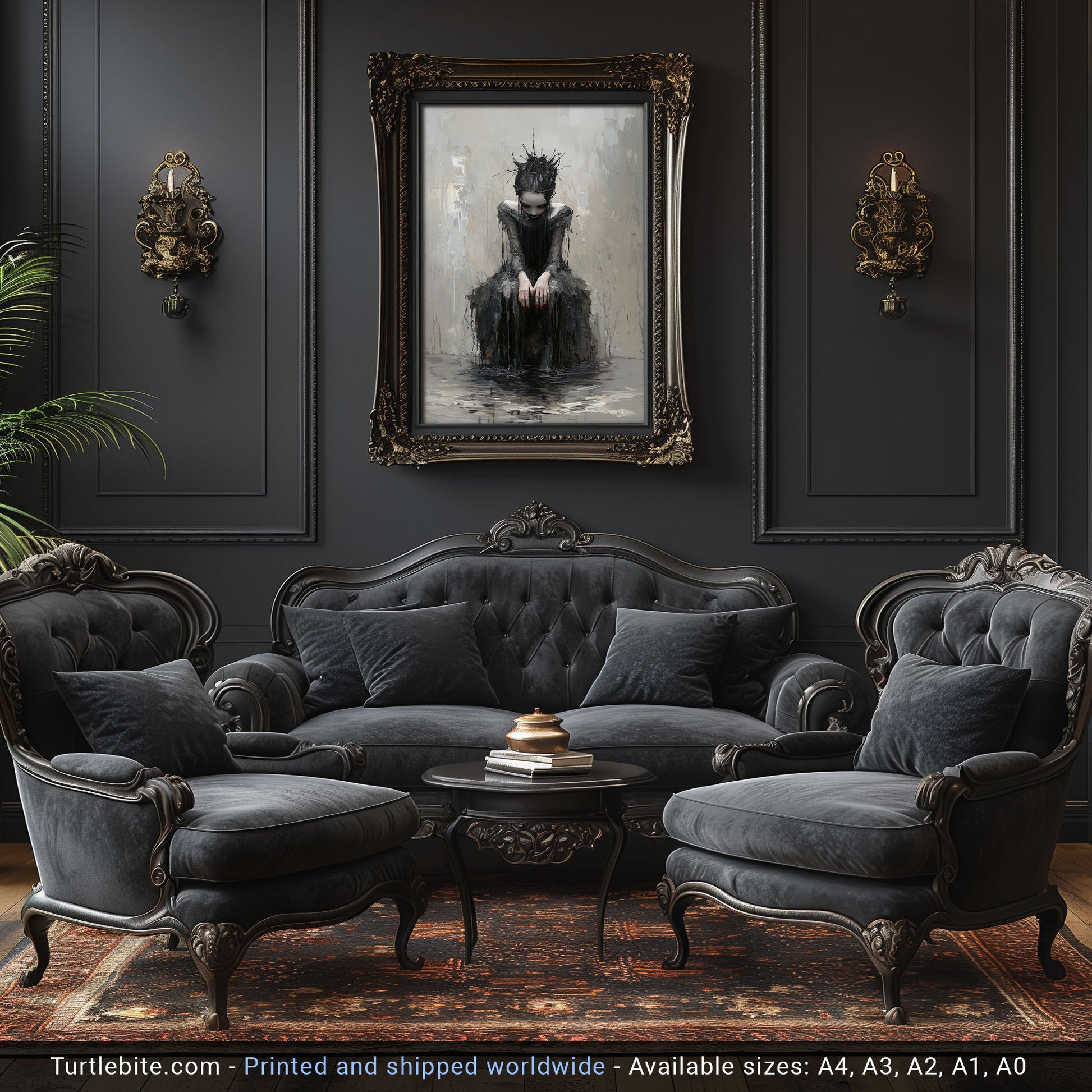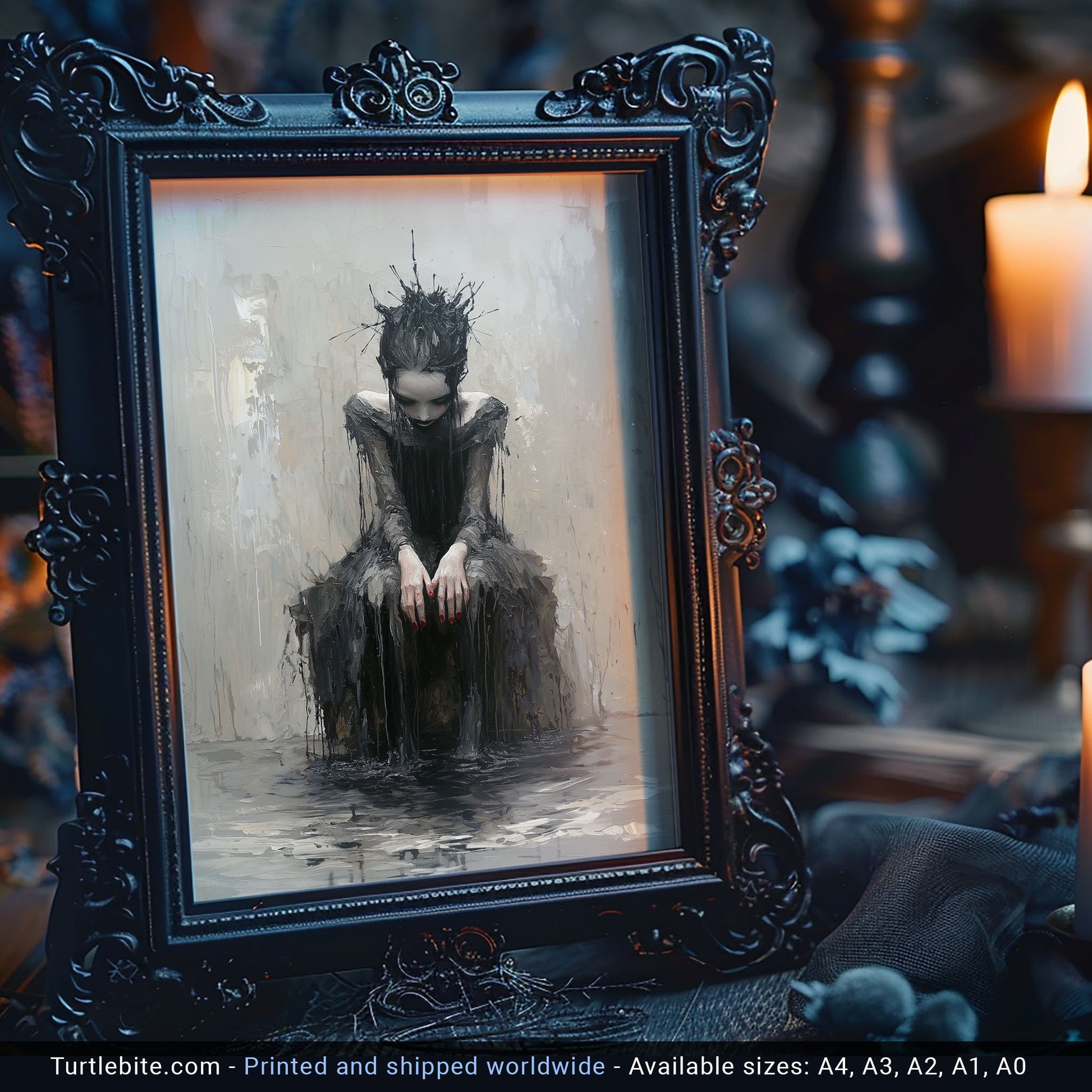 Step into a world of dark enchantment with 'The Forgotten Princess' gothic painting — a haunting blend of victorian elegance and witchy allure. This moody fantasy artwork exudes bizarre beauty, perfect for those who embrace the strange and collect the extraordinary.