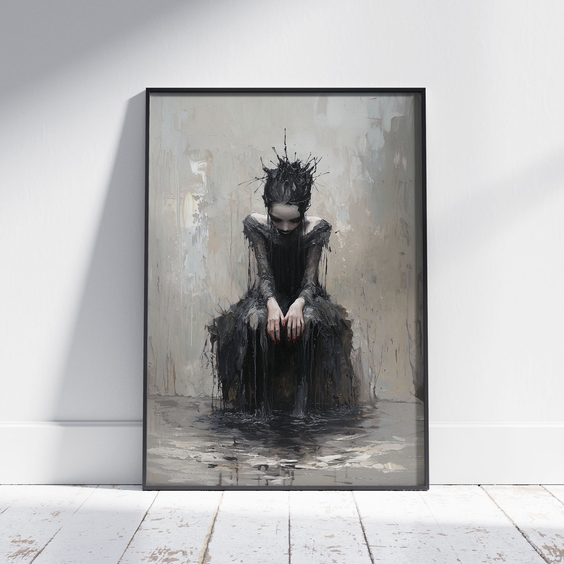The Forgotten Princess Gothic Painting, Dark Moody Wall Art, Victorian Witchcraft Print, Dark Fantasy Artwork