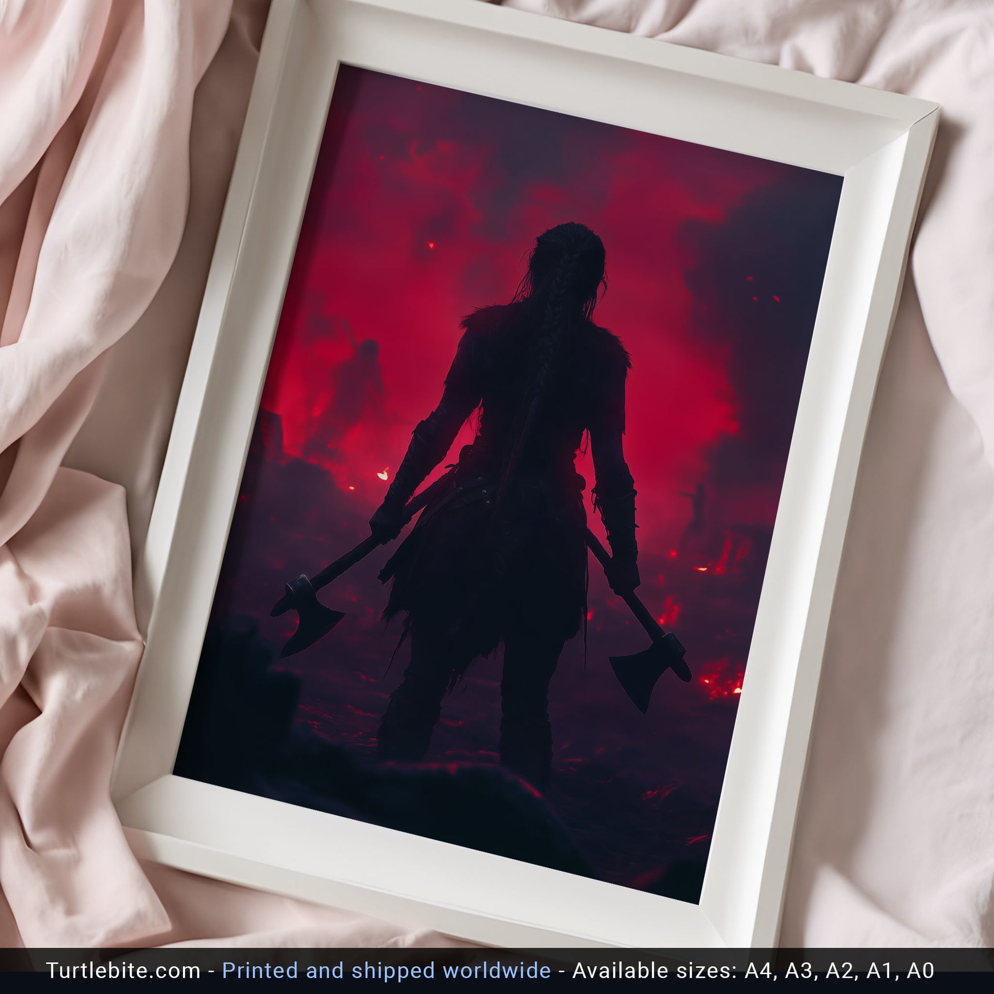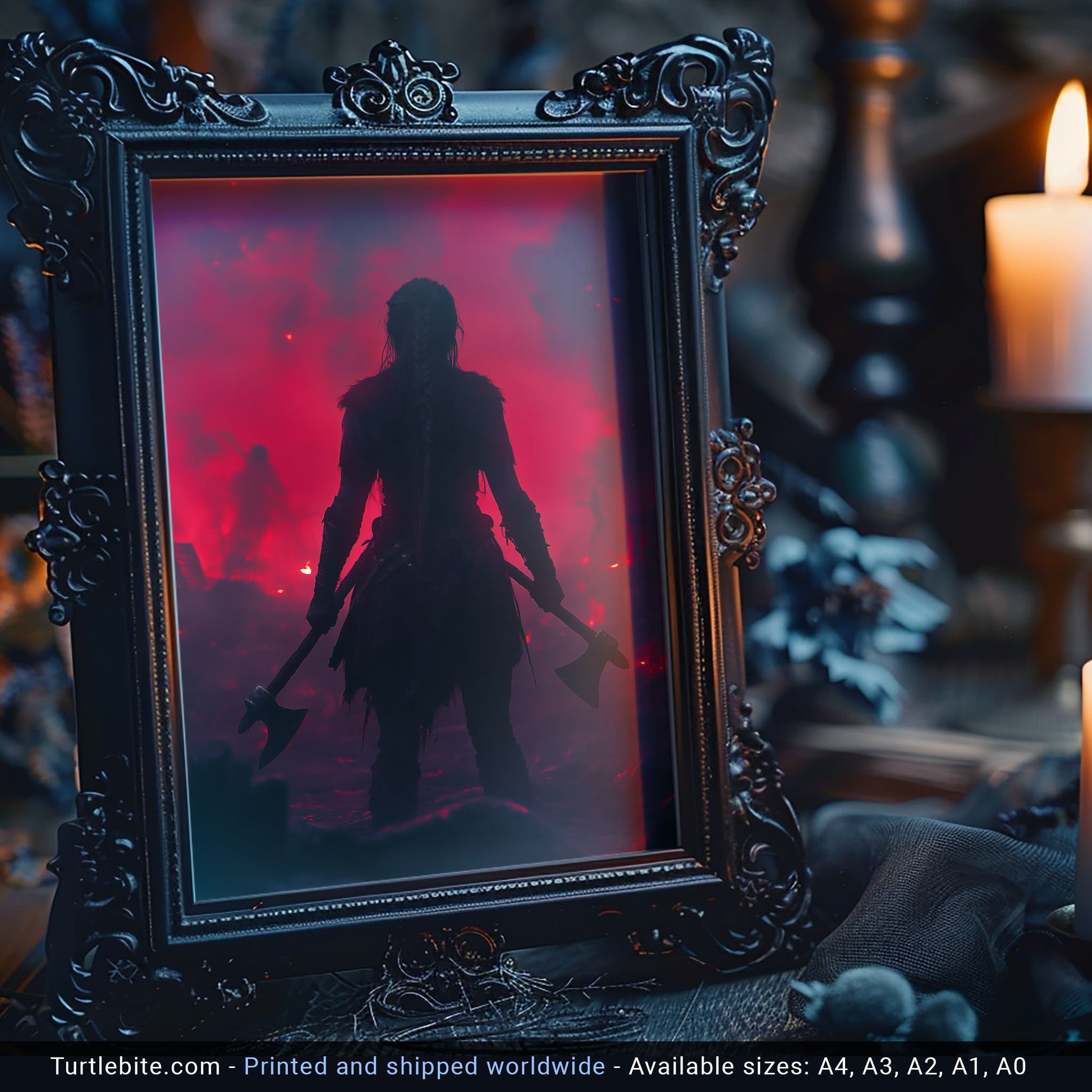 Ready to unleash your inner shieldmaiden? This viking warrior art print captures pure Norse power in one breathtaking silhouette.