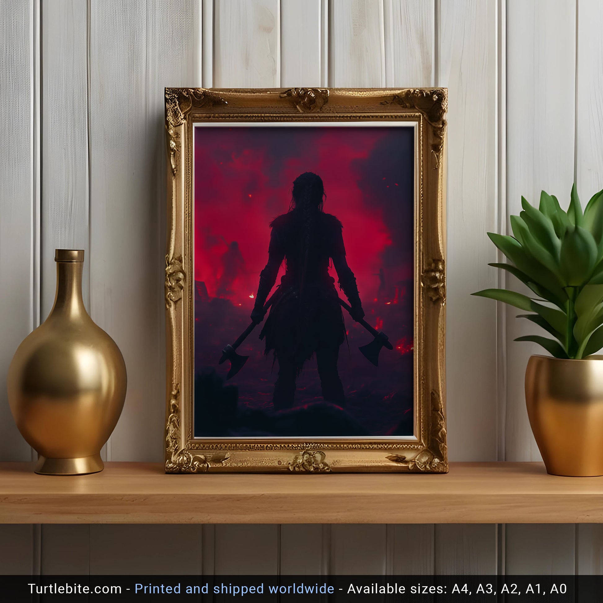 This isn't just another generic poster. It's a statement piece that speaks to the warrior spirit within us all. Whether you're decorating a gaming room, adding edge to your living space, or creating the ultimate Norse-themed sanctuary, this print delivers that perfect blend of darkness and strength that makes hearts race.
