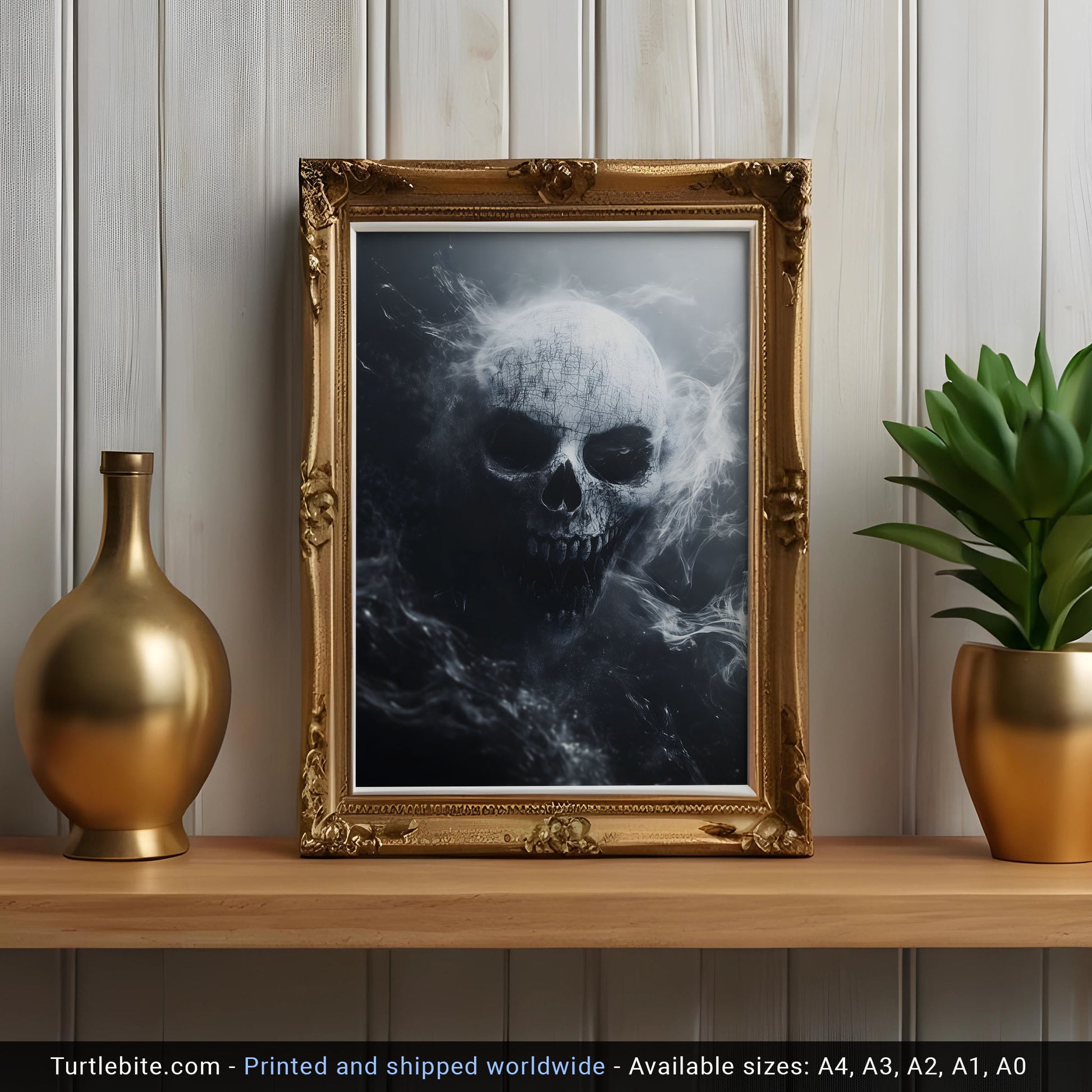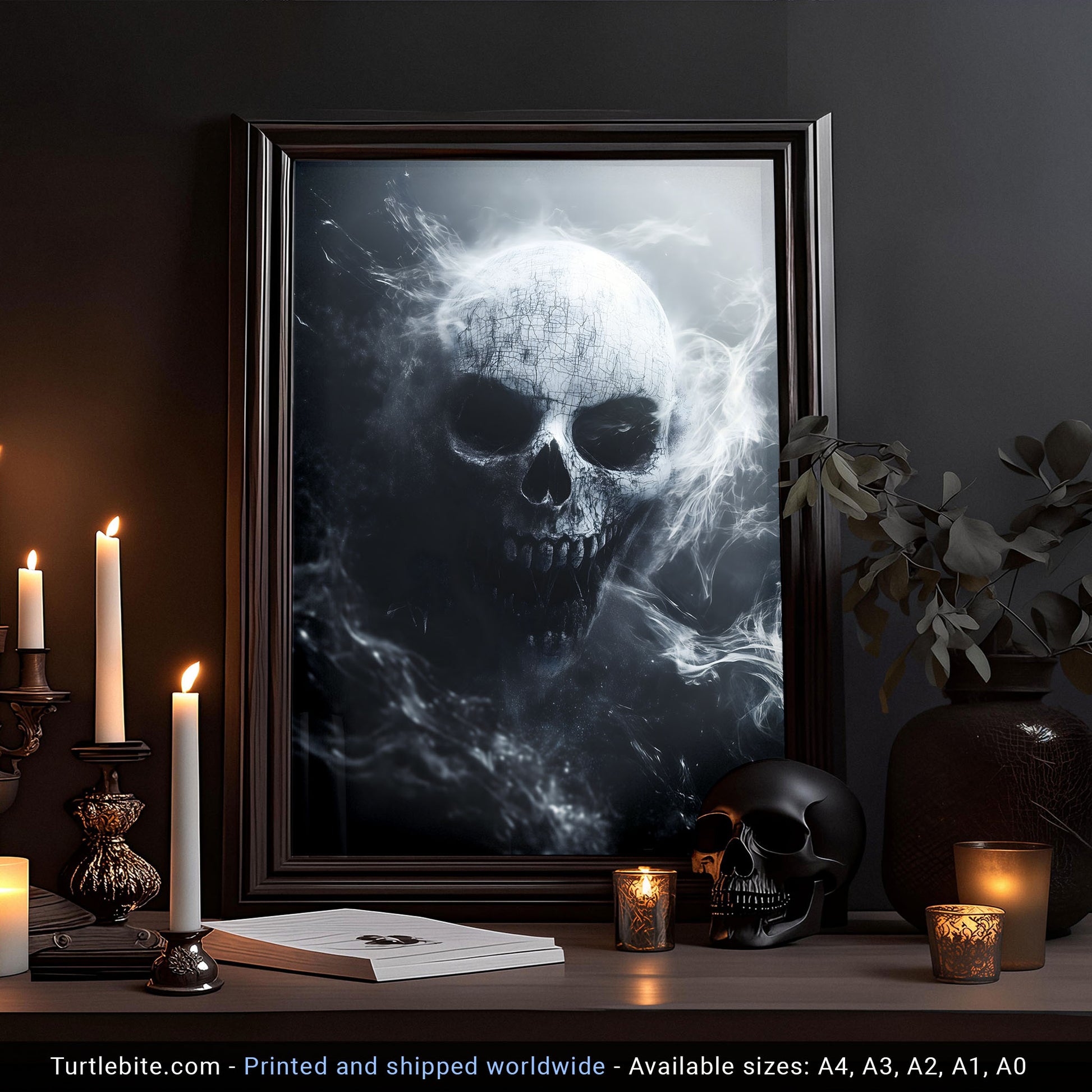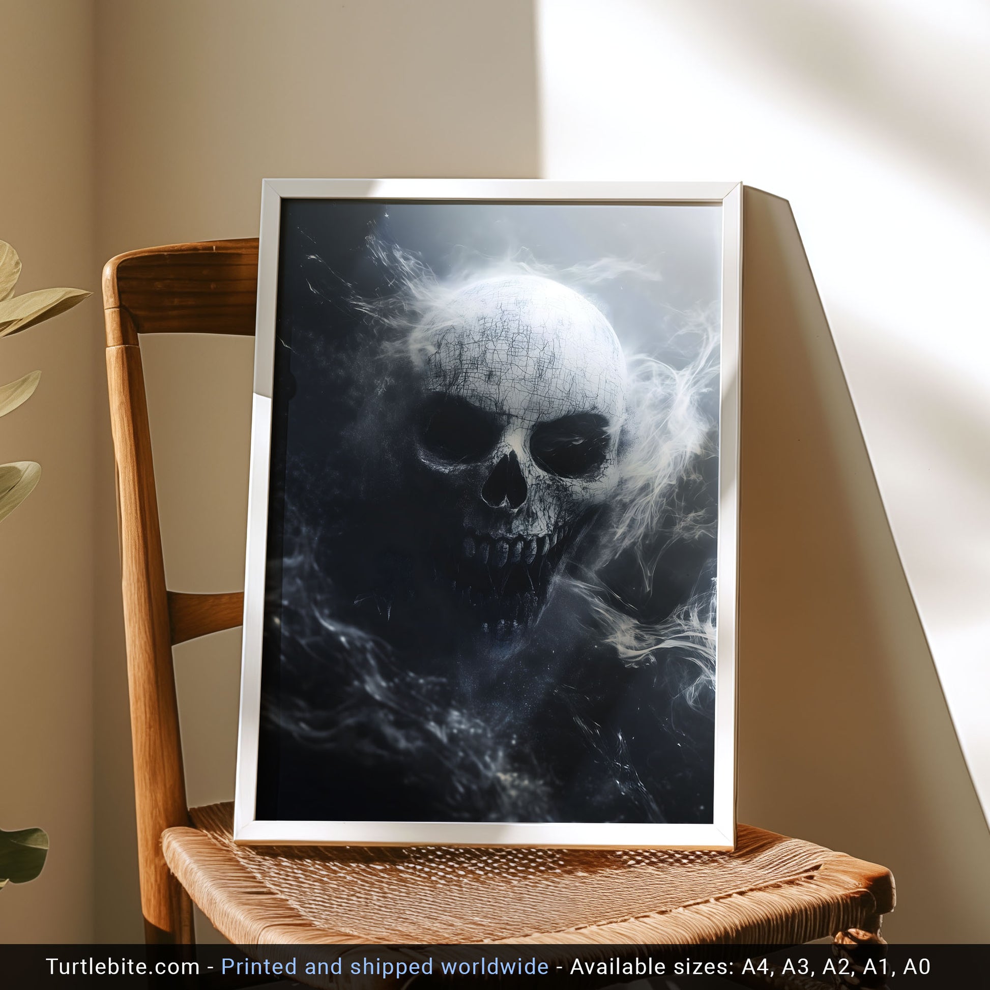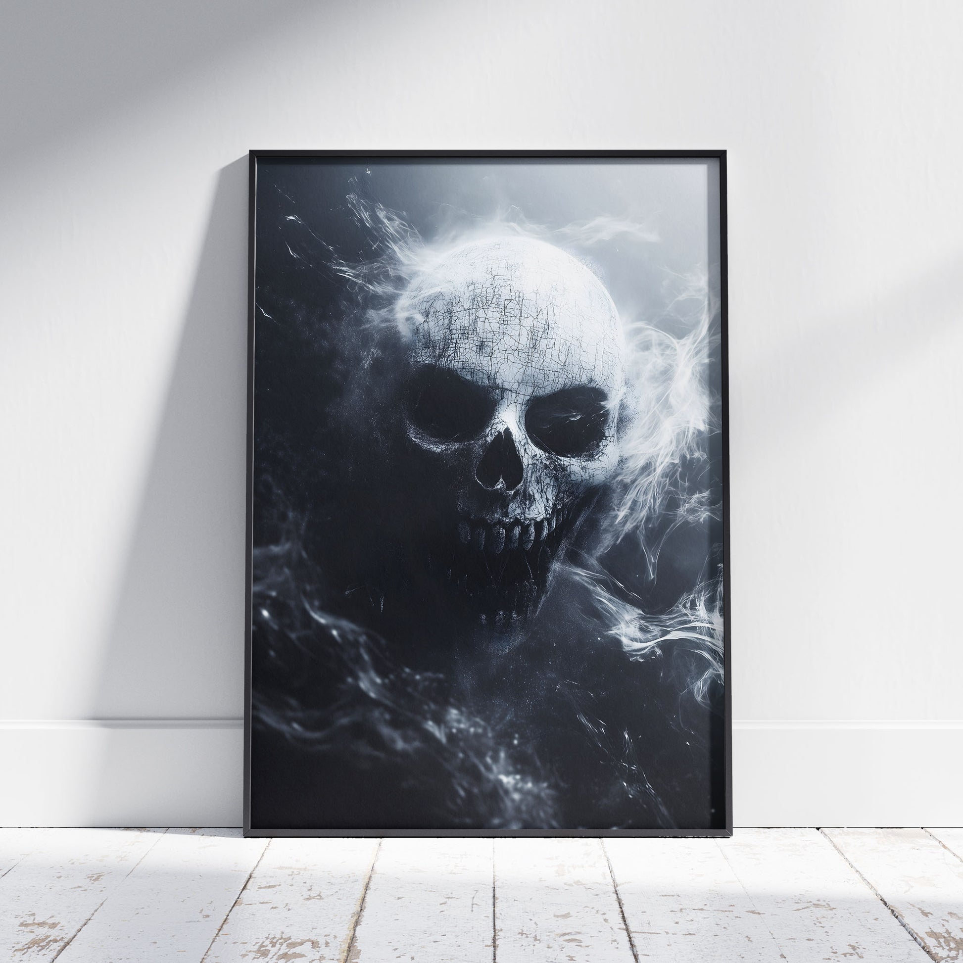 White Smoky Brittle Skull Poster | Dark Academia Horror Poster Print | Moody Wall Art