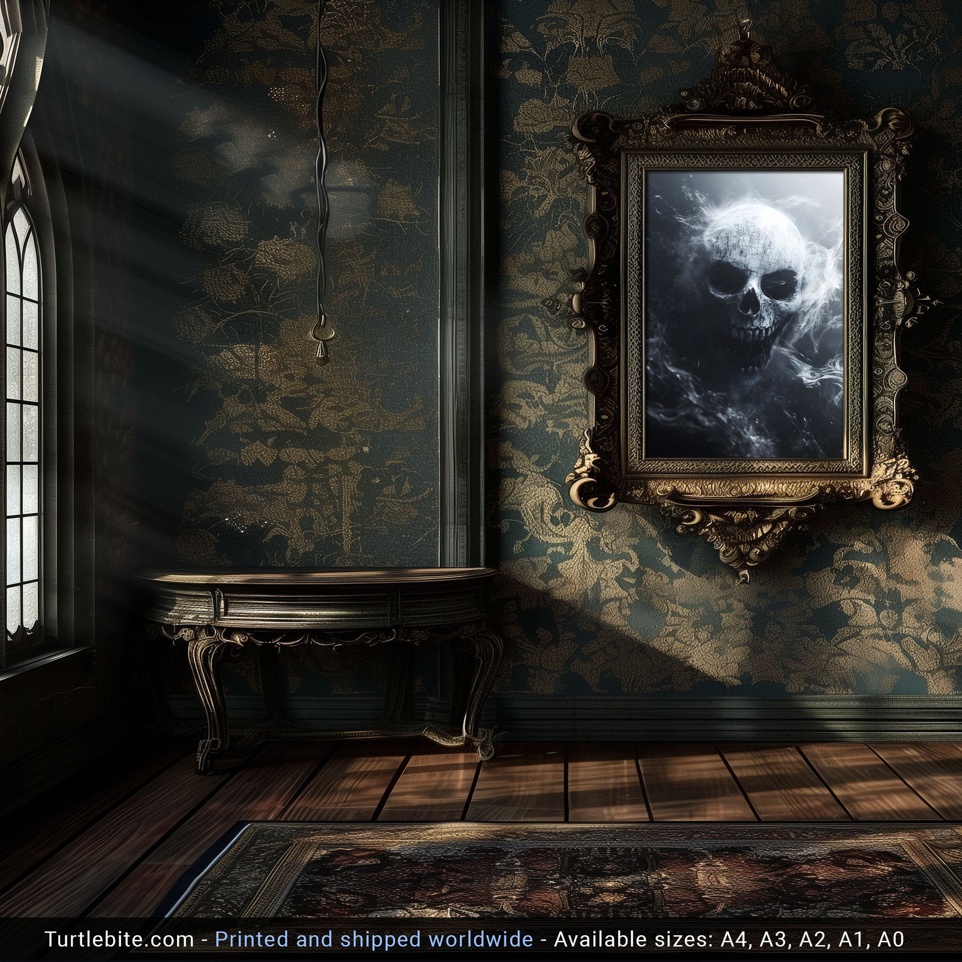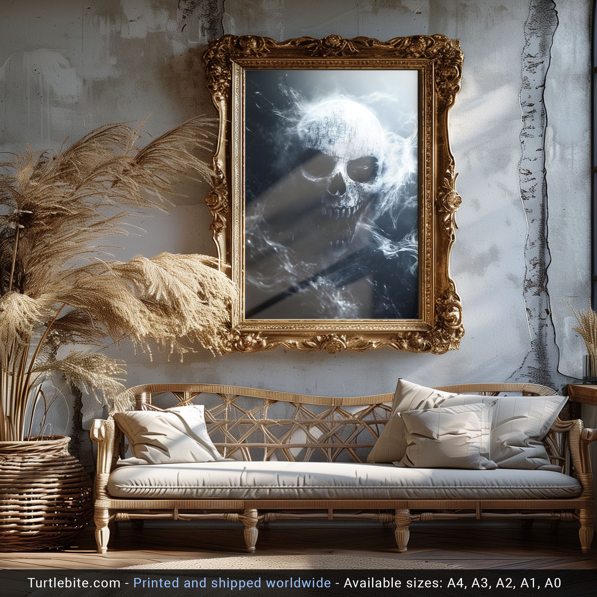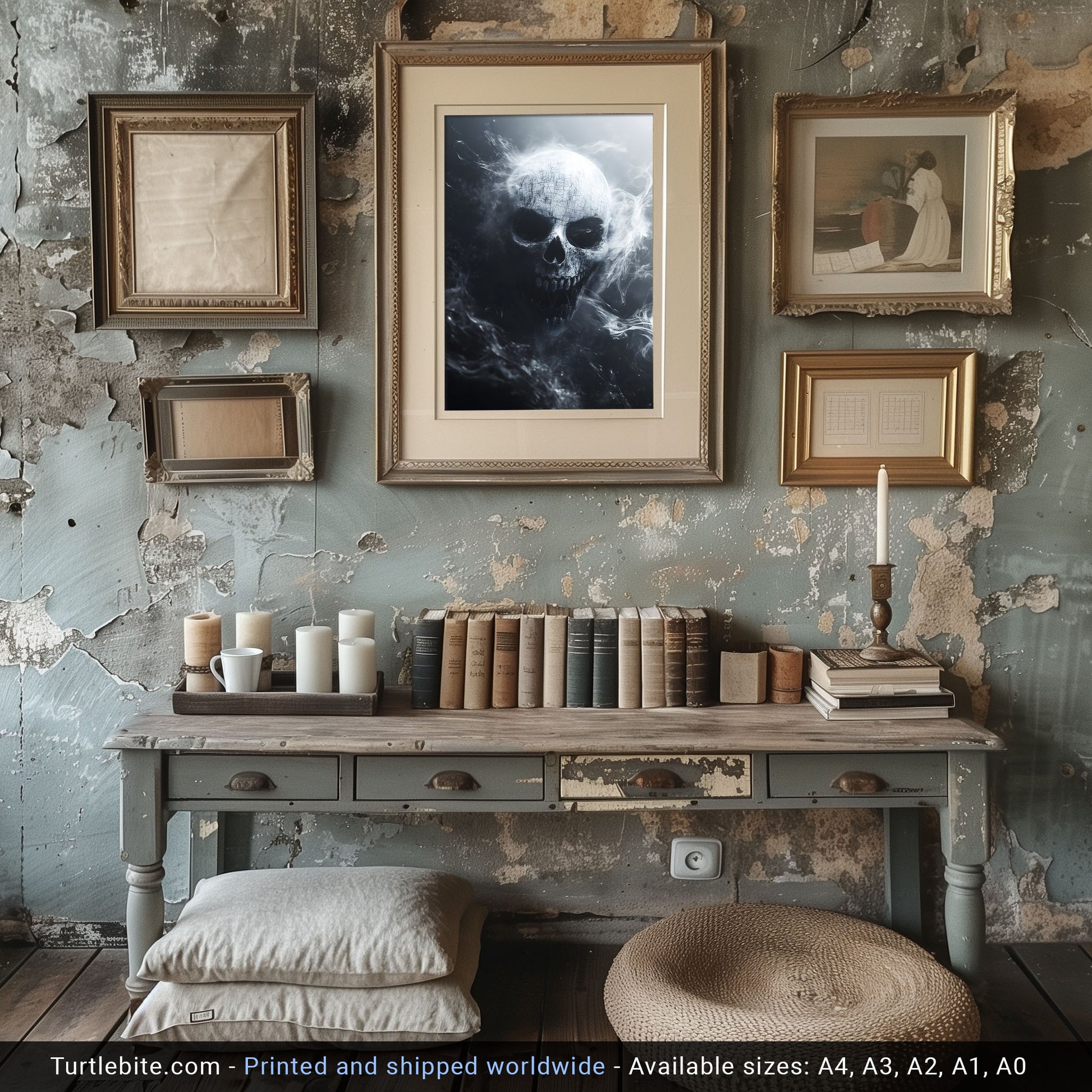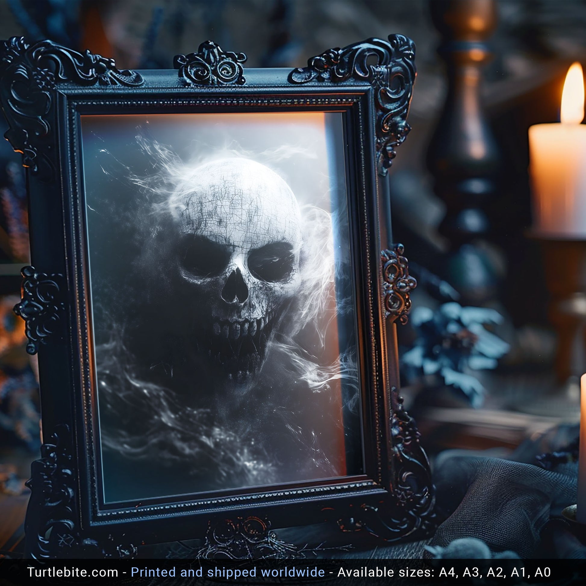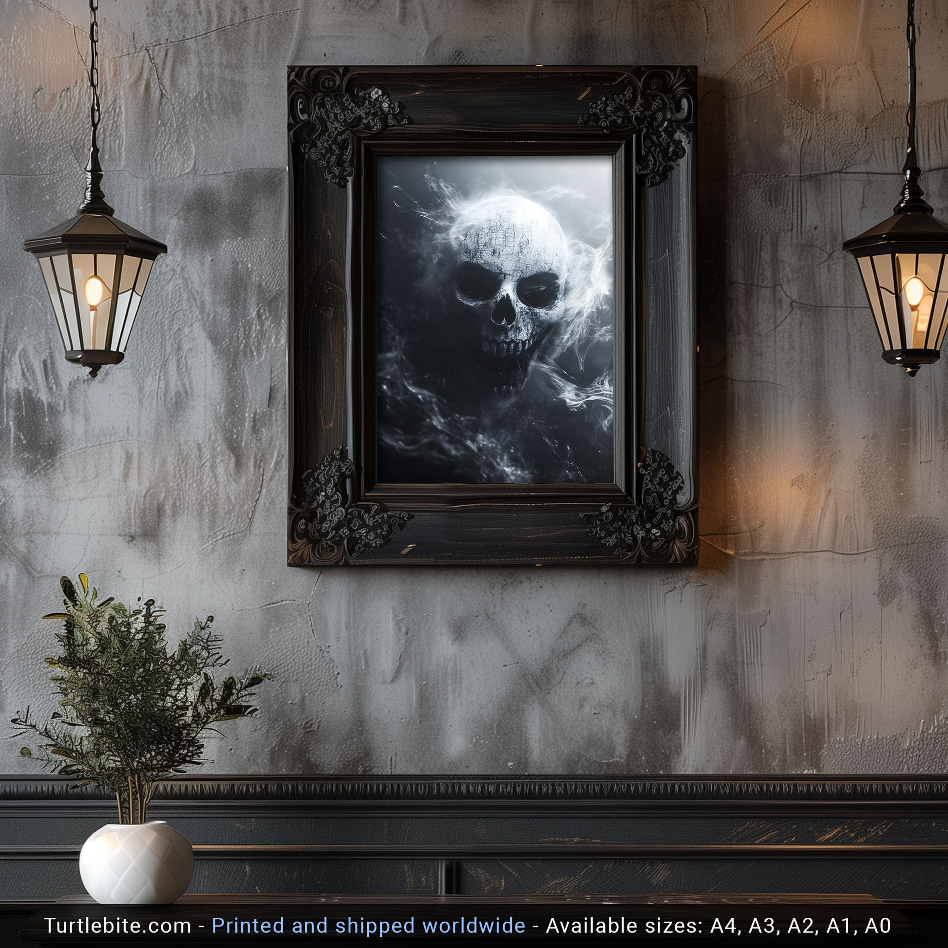 White Smoky Brittle Skull Poster | Dark Academia Horror Poster Print | Moody Wall Art