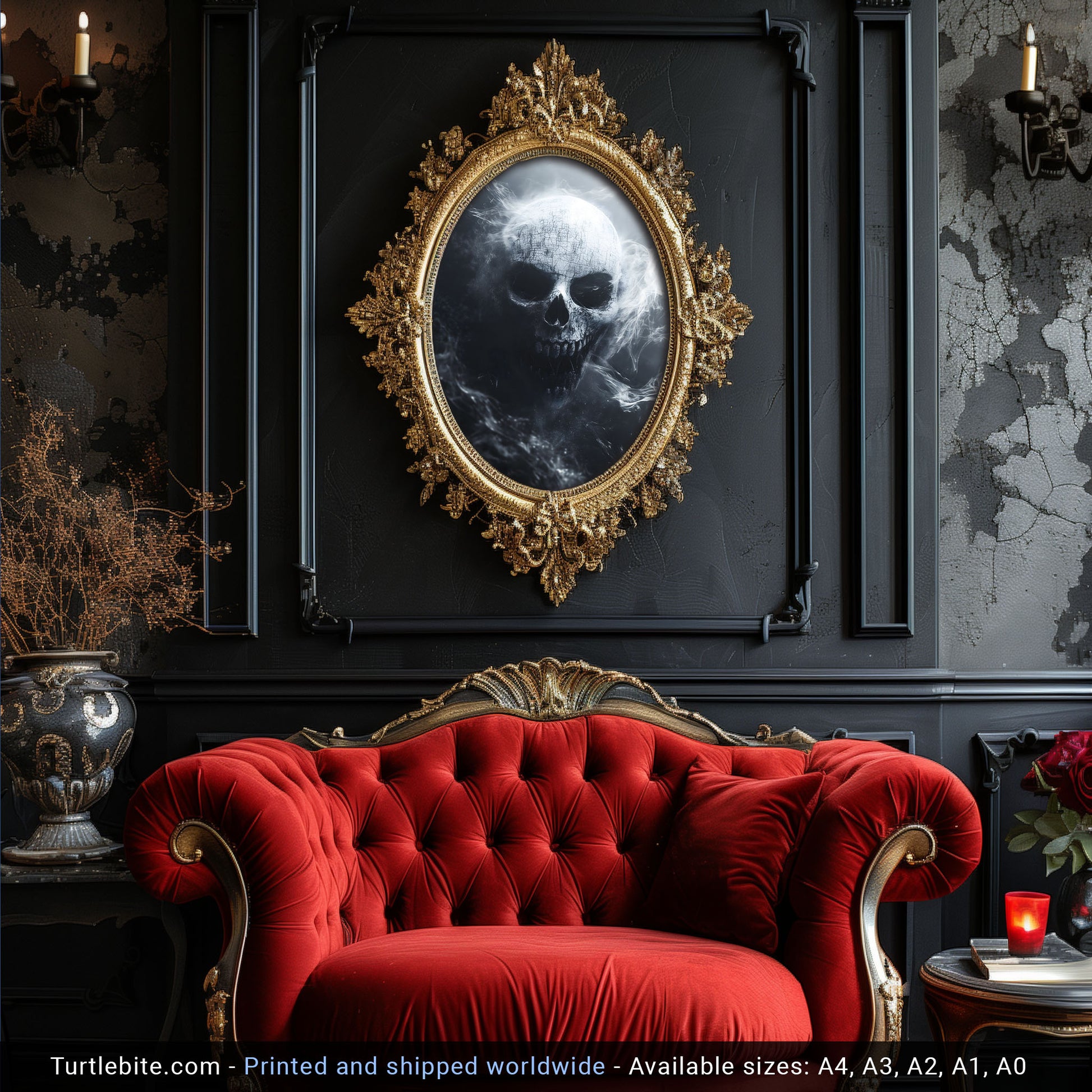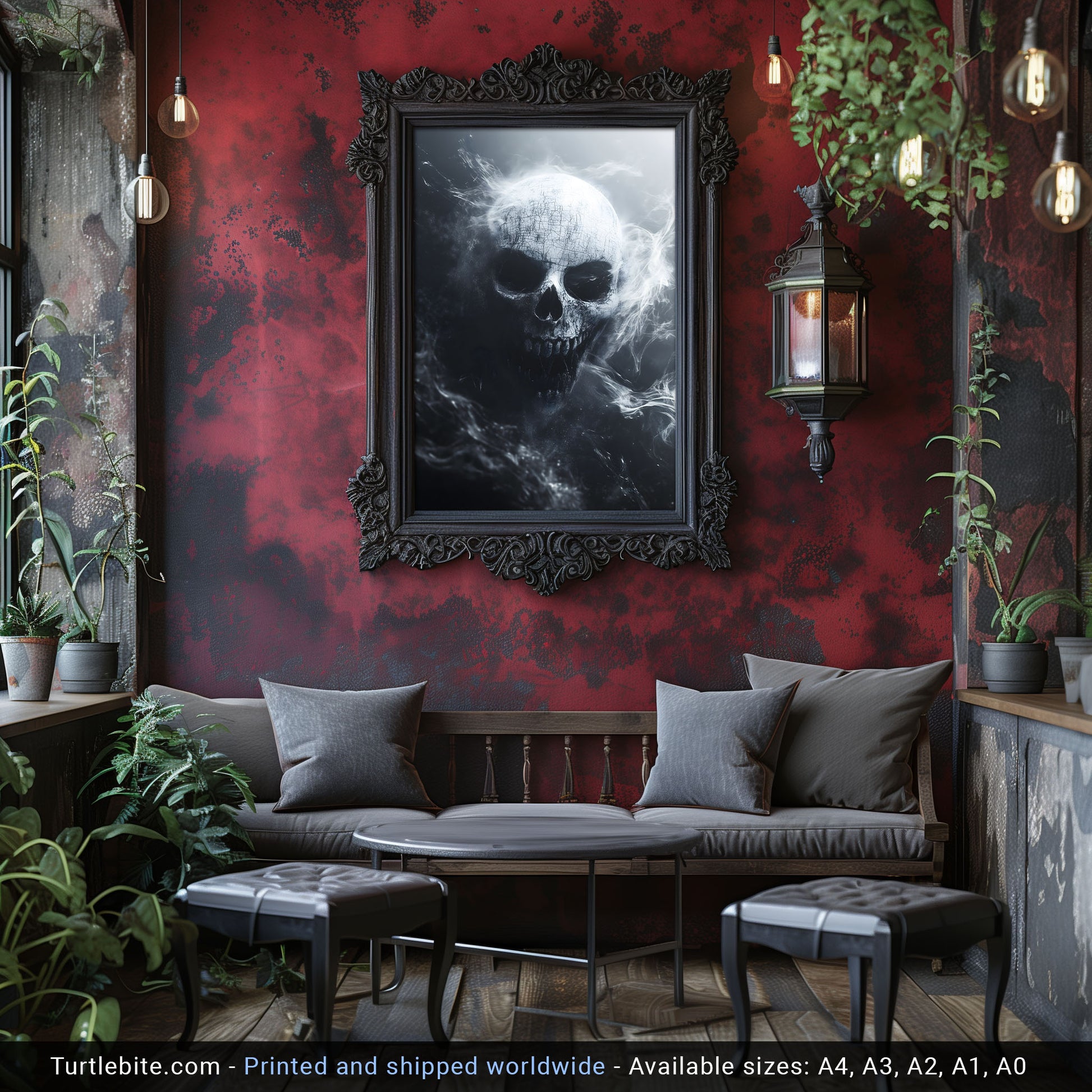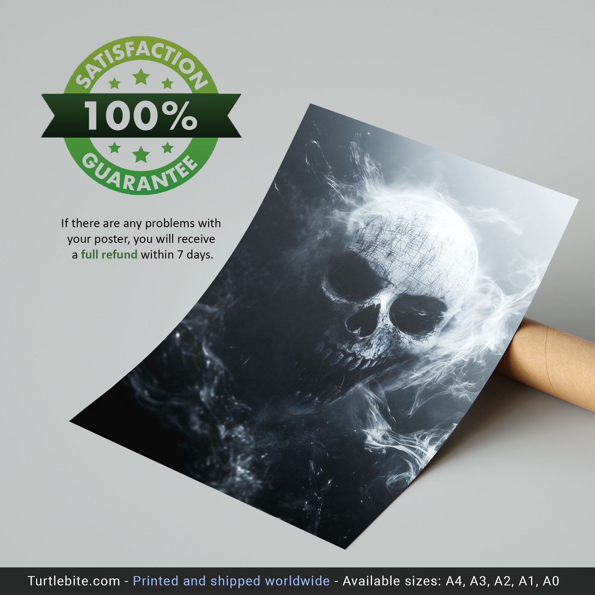 Add an edge to your dark academia aesthetic with the white smoky brittle skull poster. This oversized print is perfect for your whimsigoth wall art collection. Embrace your love for horror with this vertical poster that will make a statement in your room.