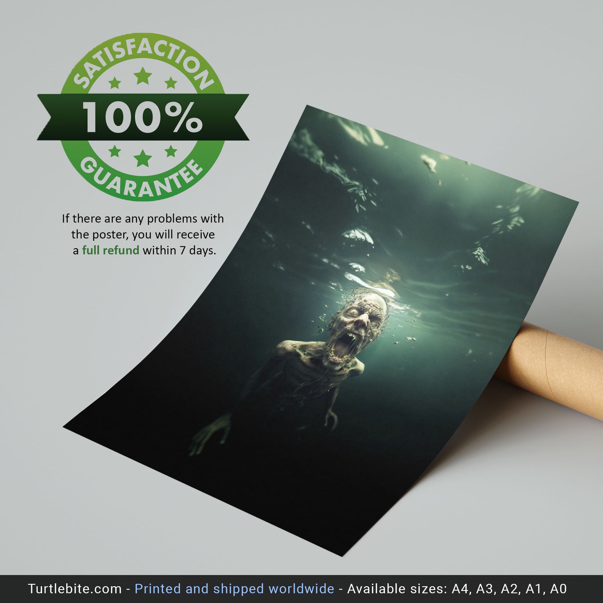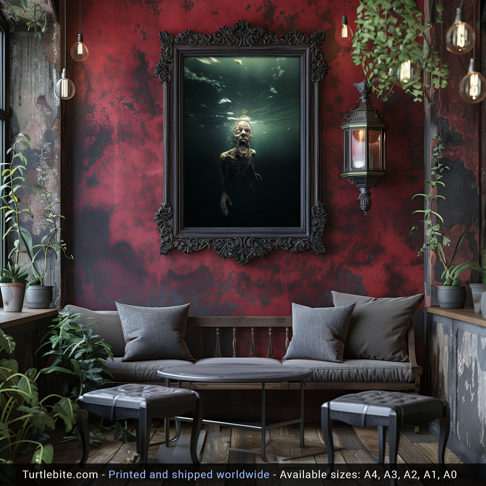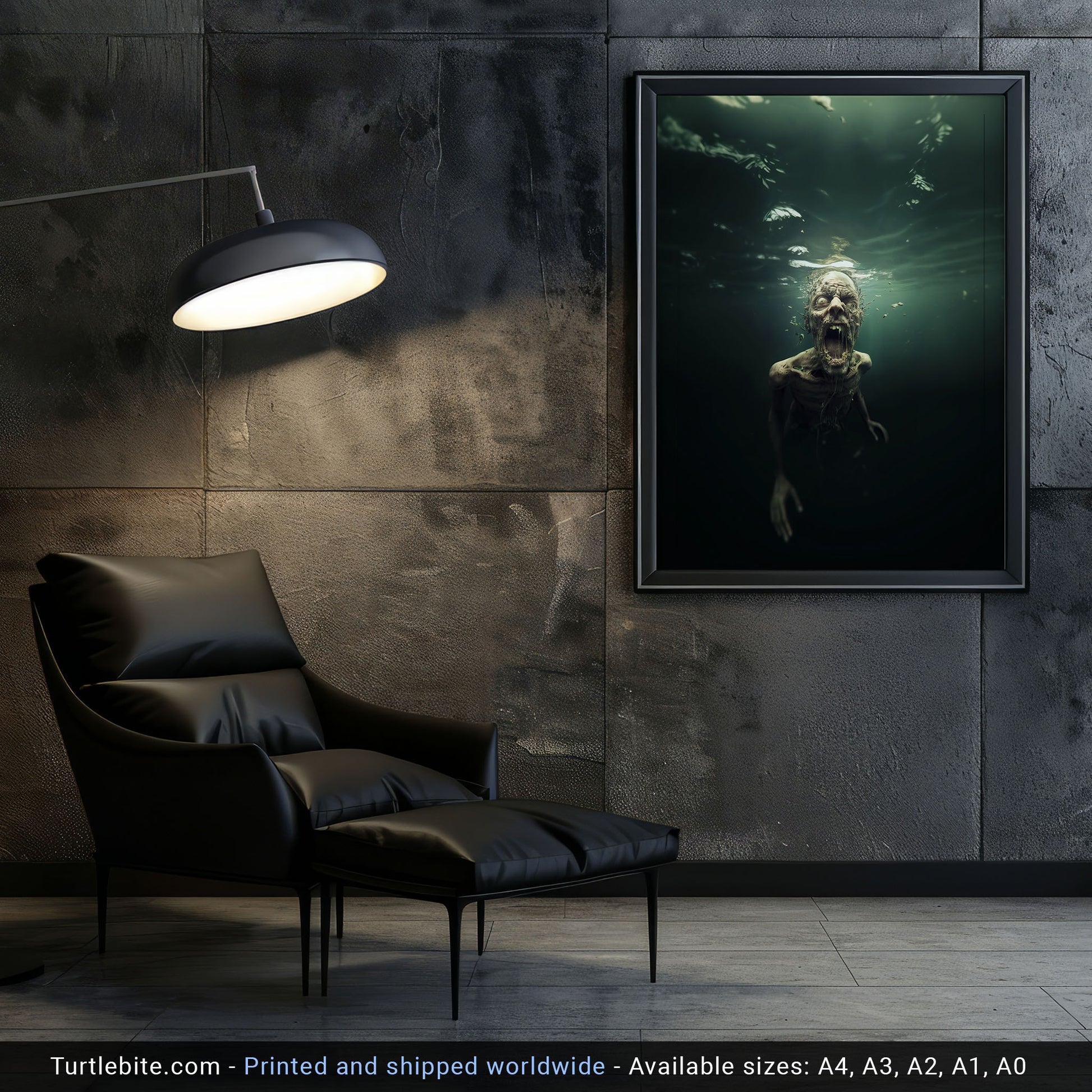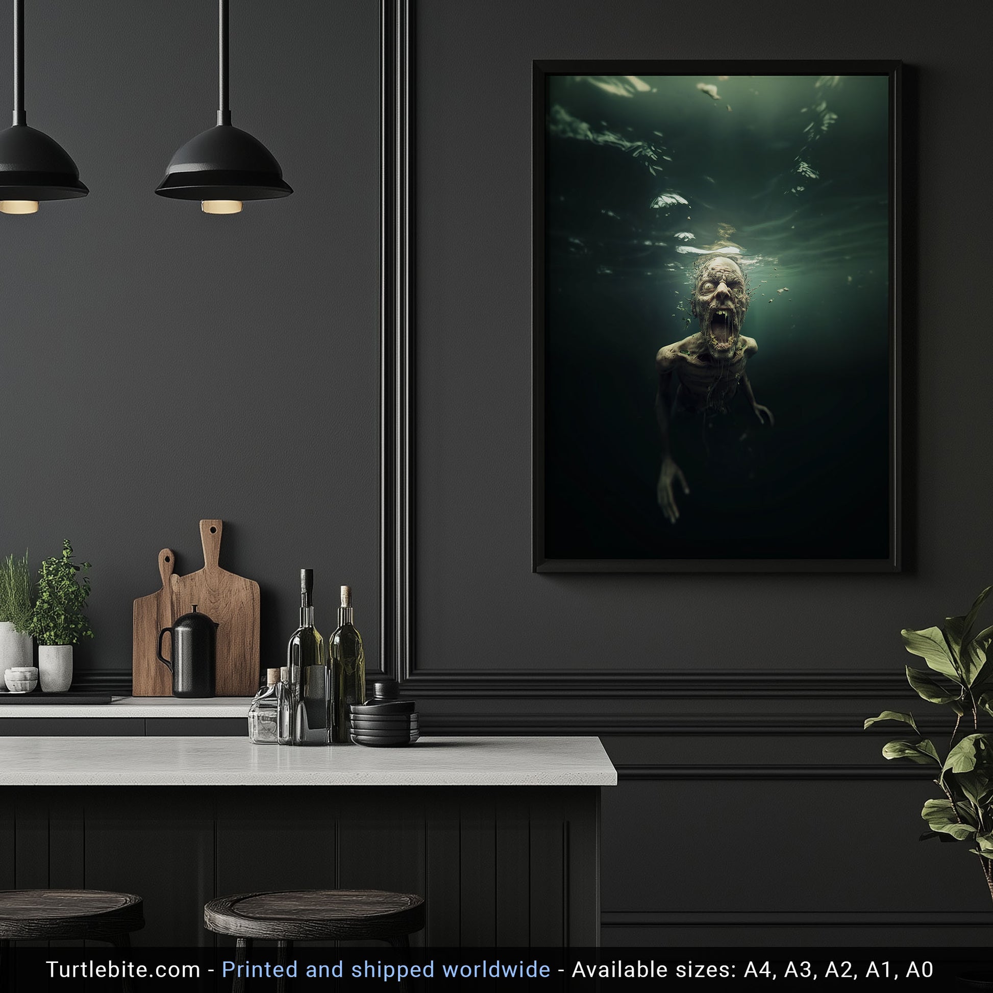 This isn't your typical wall art. It's a conversation starter, a mood setter, and honestly, probably the reason your friends will think twice before using your bathroom alone at night. The murky underwater setting adds layers of psychological horror – because what's scarier than zombies? Zombies that can apparently survive underwater.